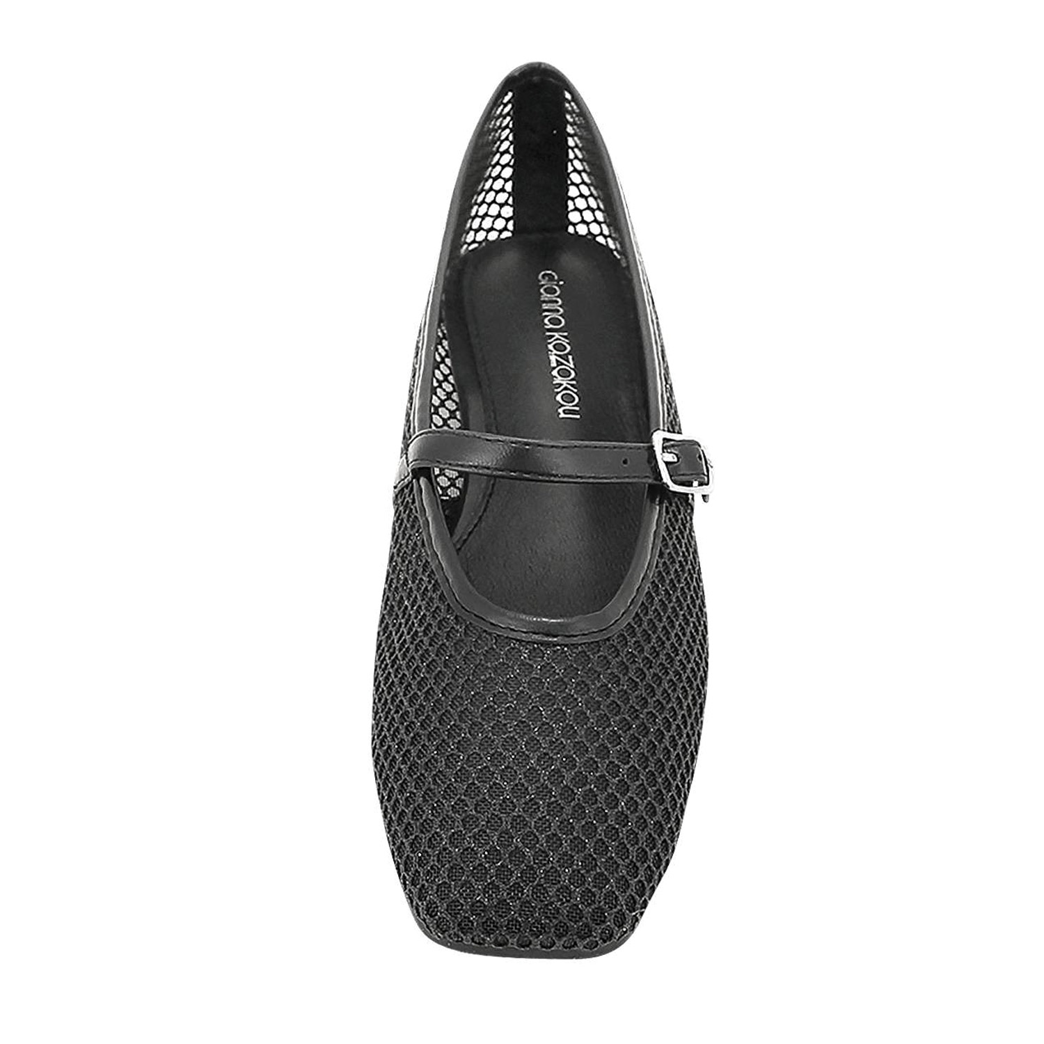 Gianna Kazakou γυναικεία μπαλαρίνα, σε μαύρο χρώμα, κατασκευασμένη από οικολογικό δέρμα.
