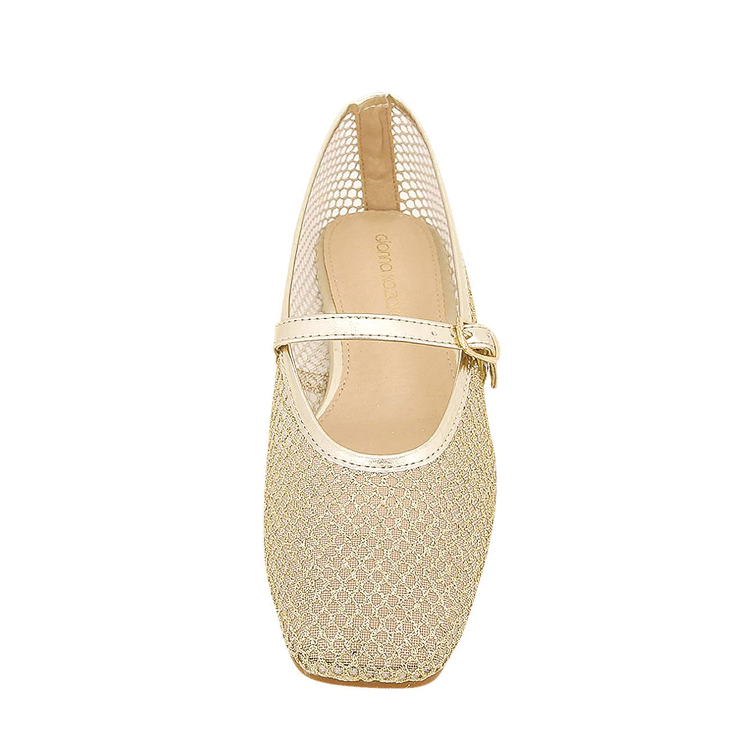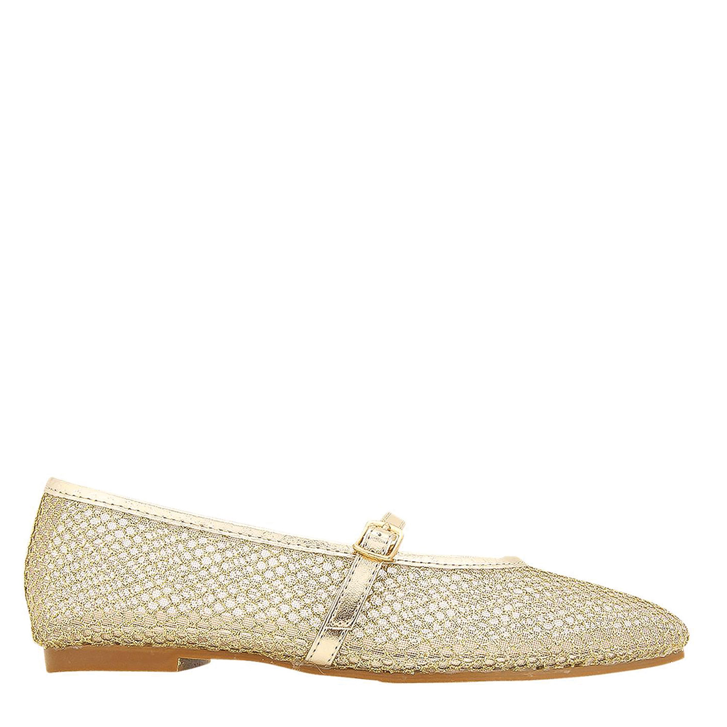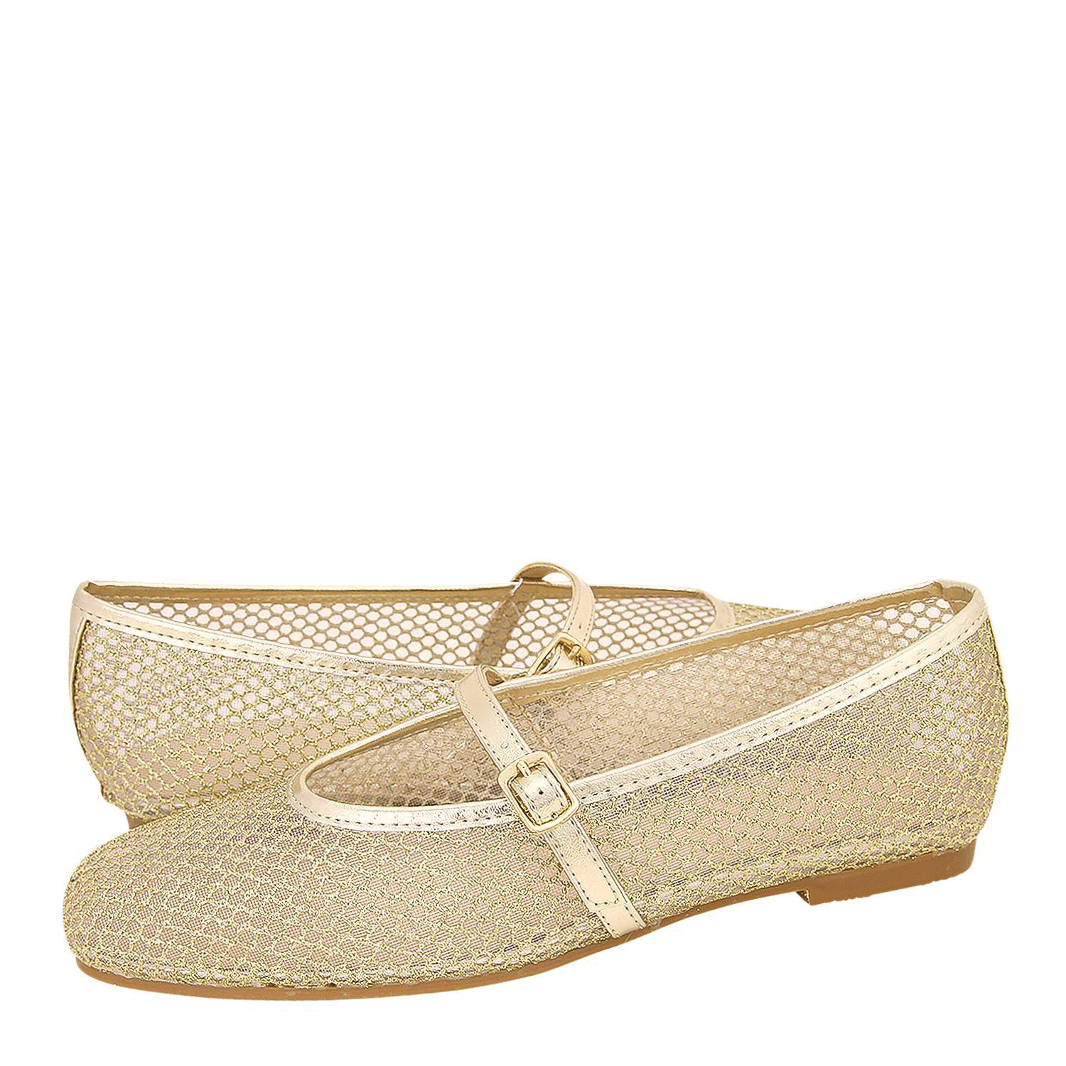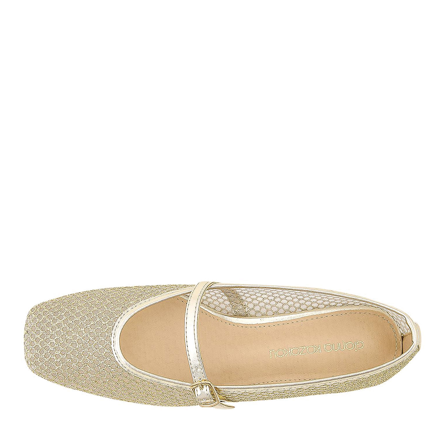 Gianna Kazakou γυναικεία μπαλαρίνα, σε χρυσό χρώμα, κατασκευασμένη από οικολογικό δέρμα.