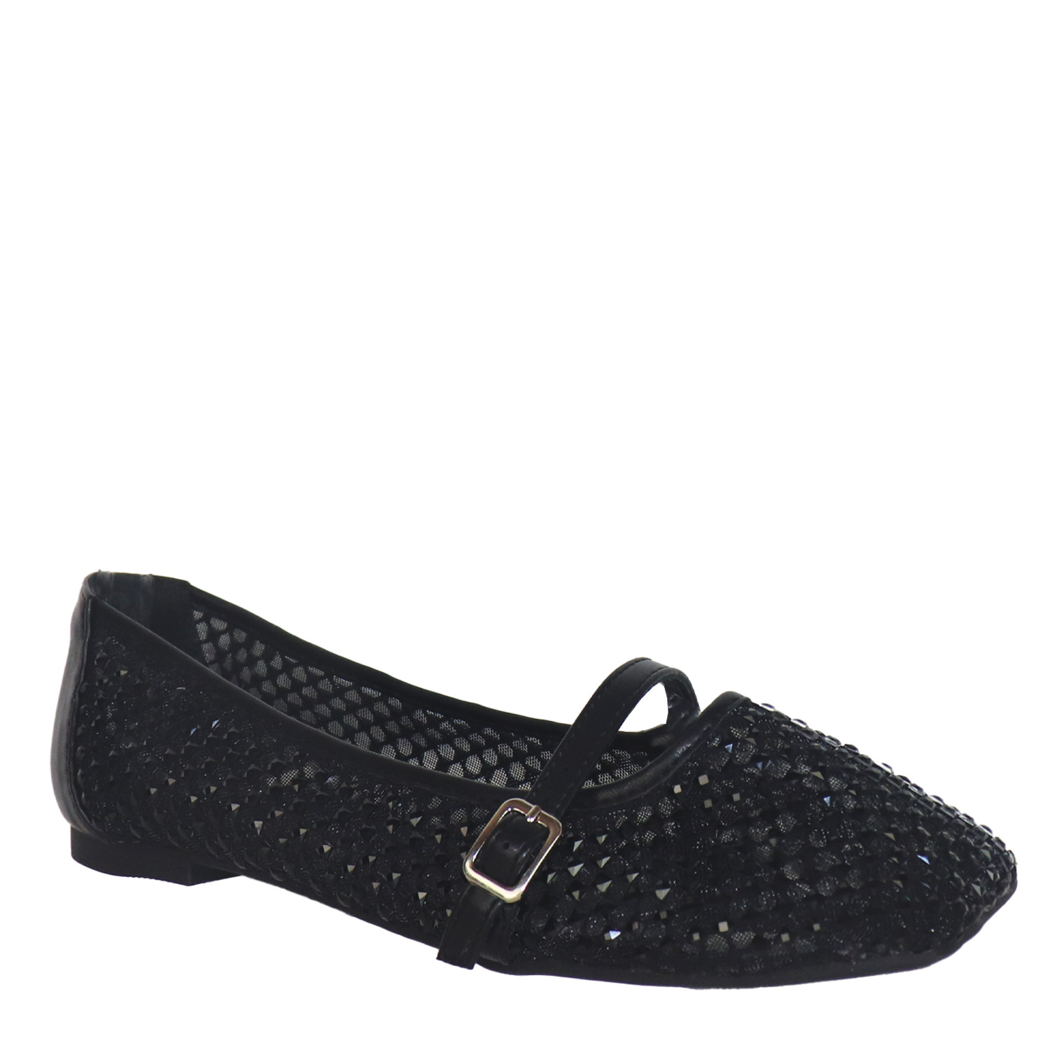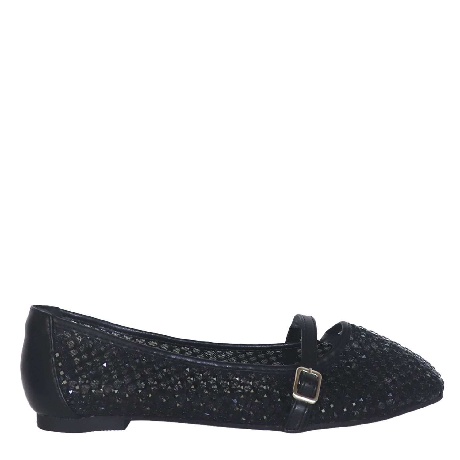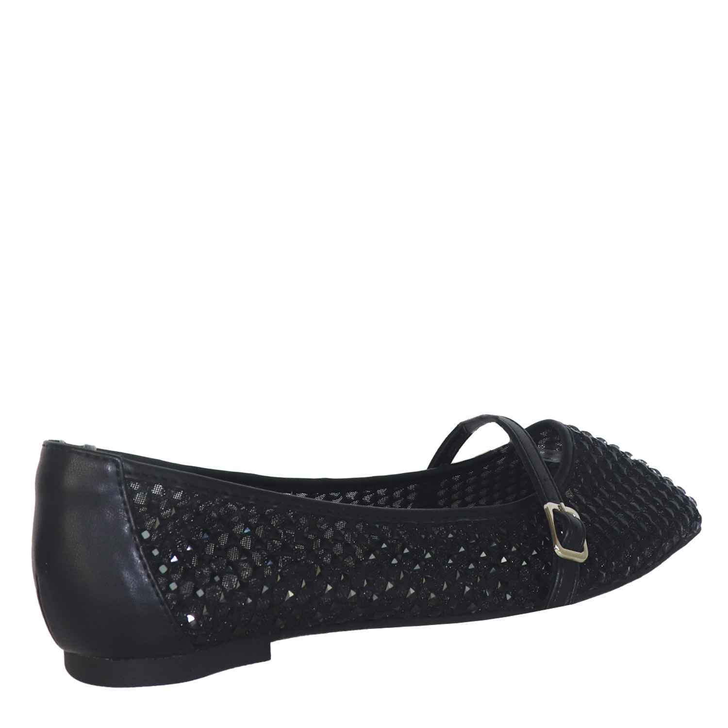 Migato γυναικεία μπαλαρίνα, σε μαύρο χρώμα, κατασκευασμένη από οικολογικό δέρμα και ύφασμα. Ύψος τακουνιού 1εκ.