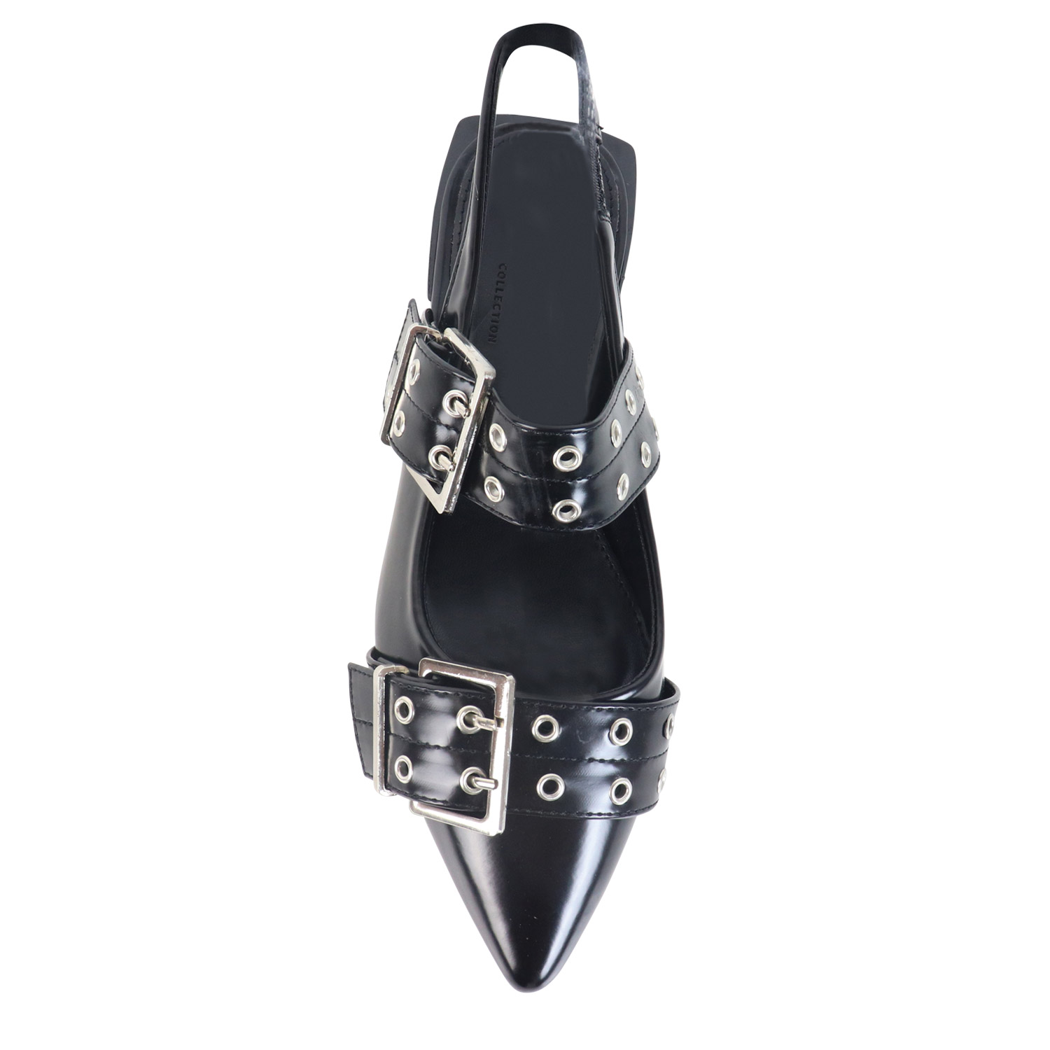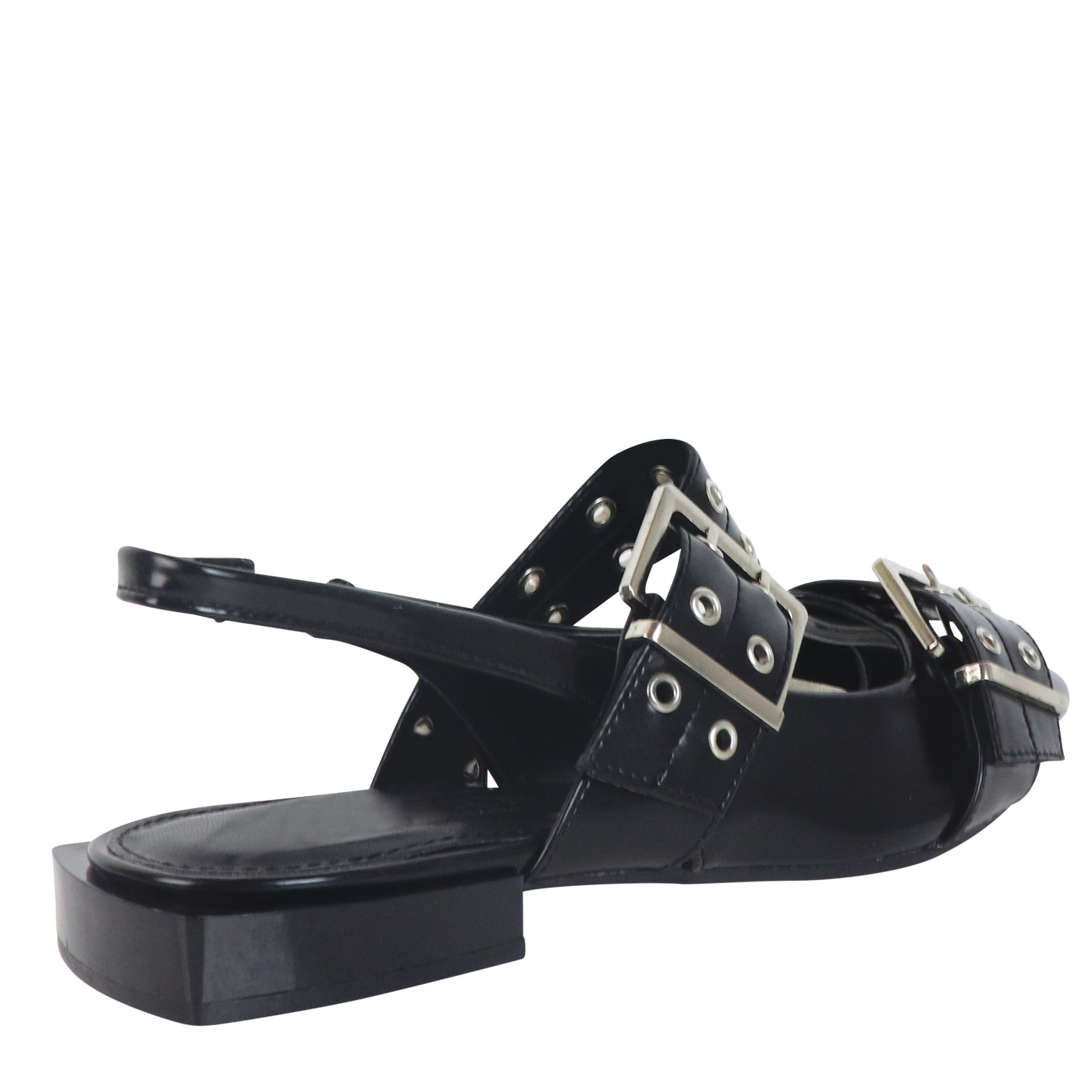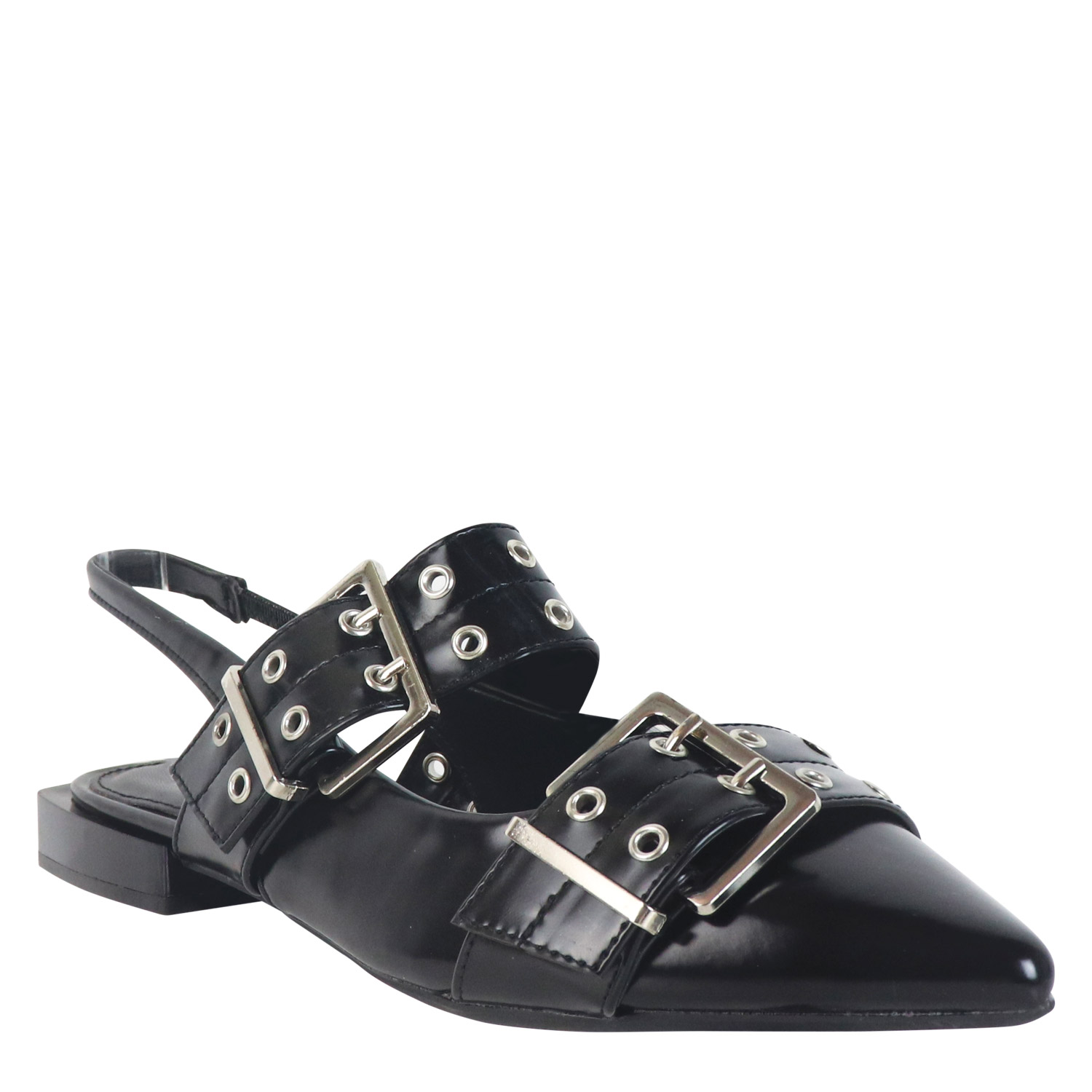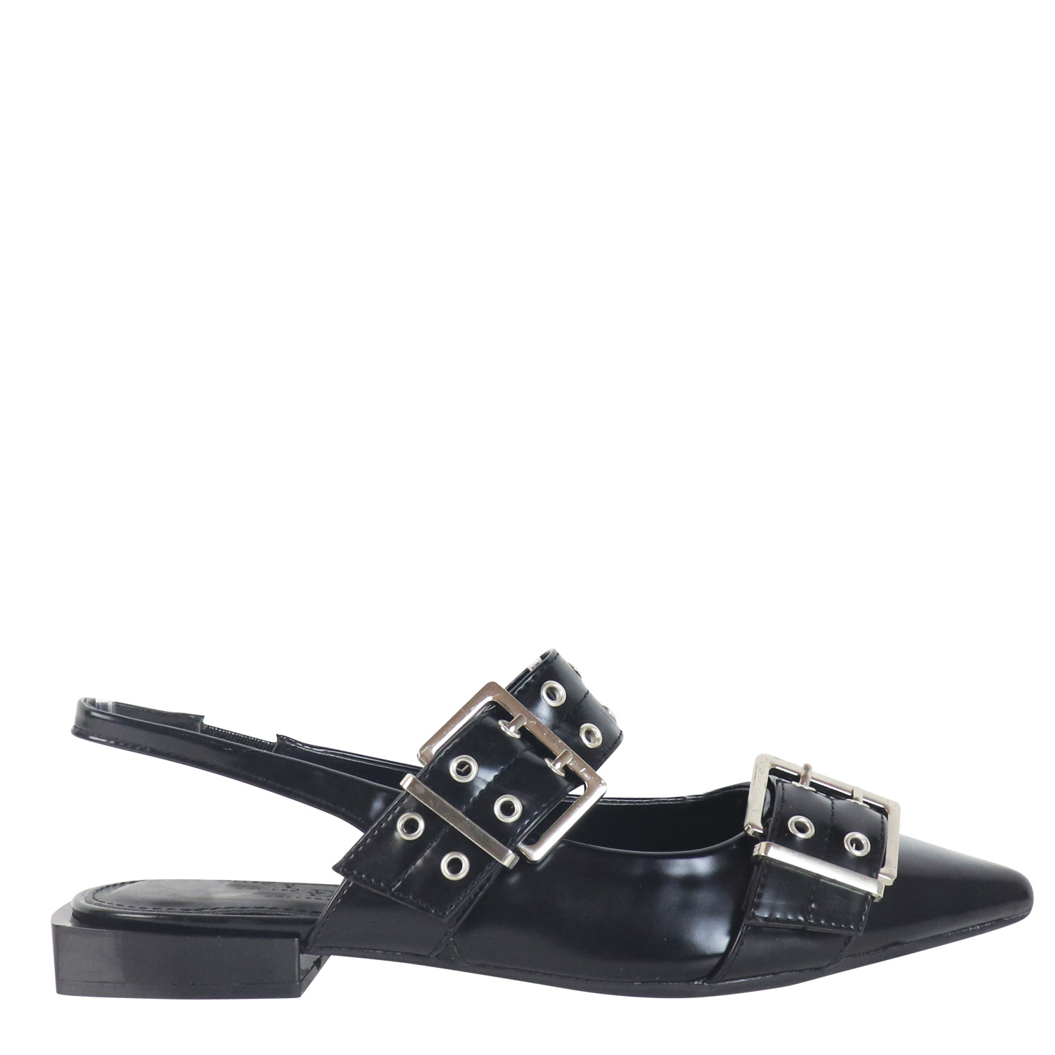 Primadonna γυναικεία μπαλαρίνα, σε μαύρο χρώμα, κατασκευασμένη από οικολογικό δέρμα.  Ύψος τακουνιού 1.5εκ.