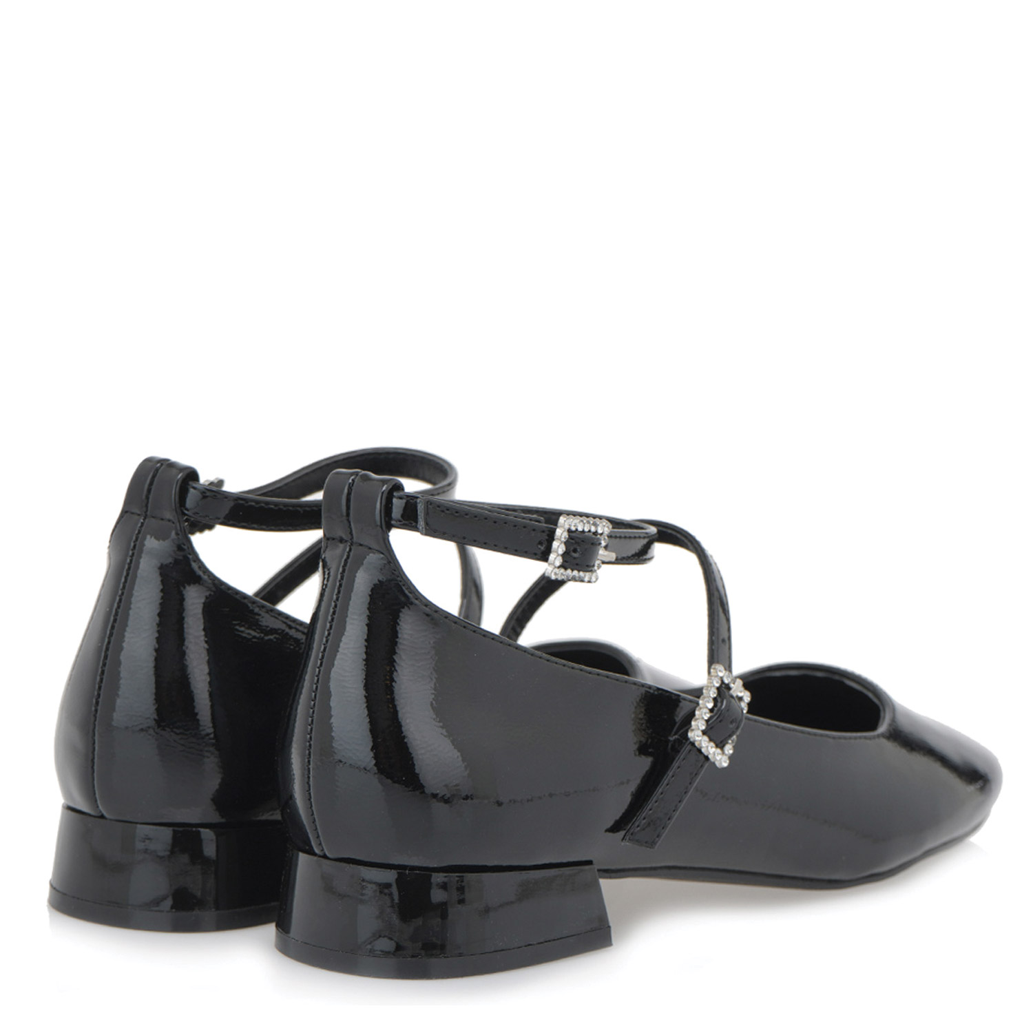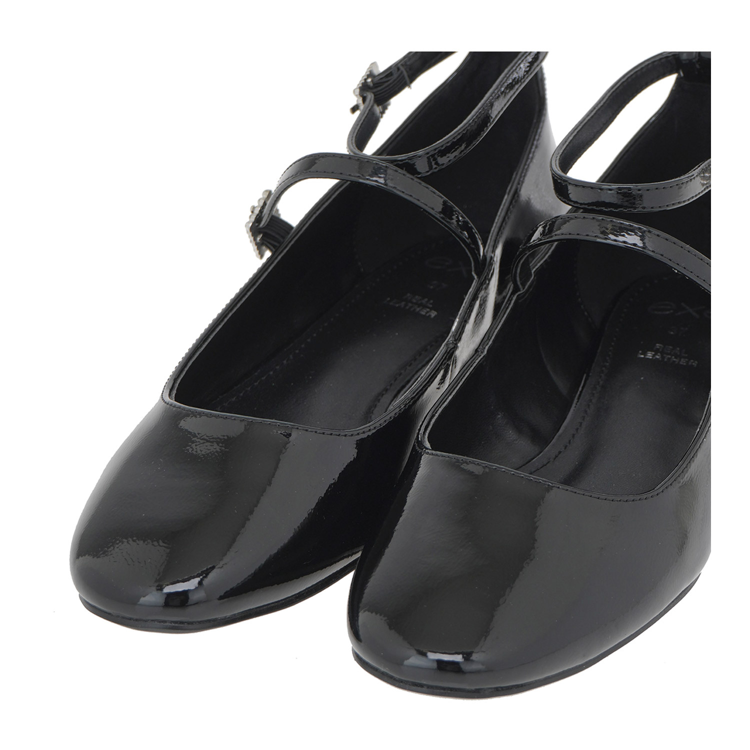 Exe γυναικεία μπαλαρίνα, σε μαύρο χρώμα, κατασκευασμένη από λουστρίνι. Ύψος τακουνιού 2,5εκ.