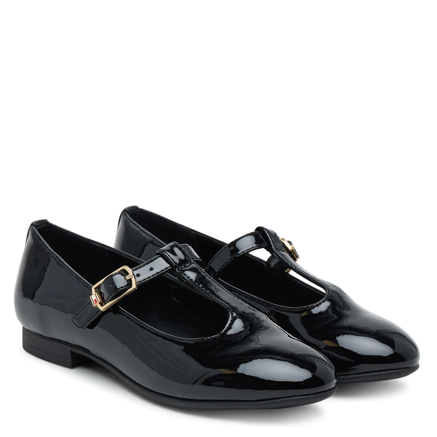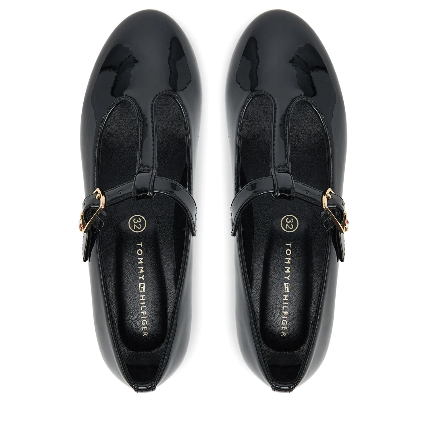 Tommy Hilfiger γυναικεία μπαλαρίνα, σε μαύρο χρώμα, κατασκευασμένη από λουστρίνι. Ύψος τακουνιού 1.5εκ.