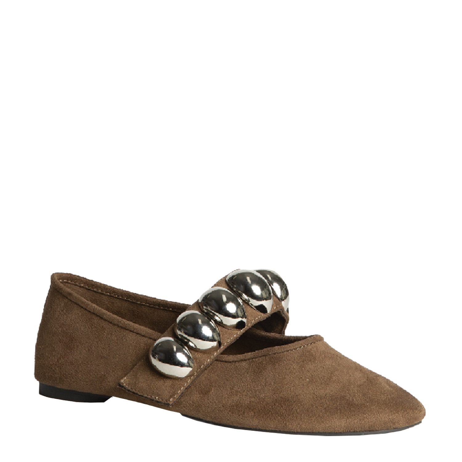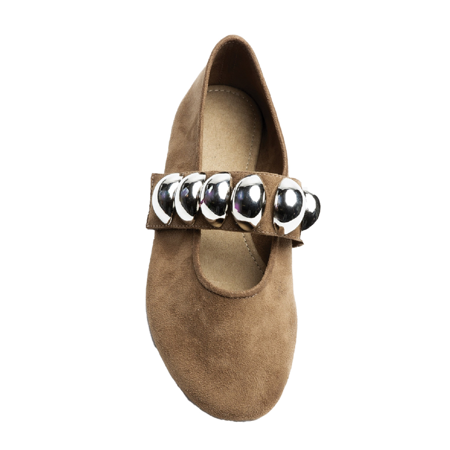 Koniarisshoes γυναικεία μπαλαρίνα, σε ταμπά χρώμα, κατασκευασμένη από οικολογικό καστόρι. Ύψος τακουνιού 1εκ.
