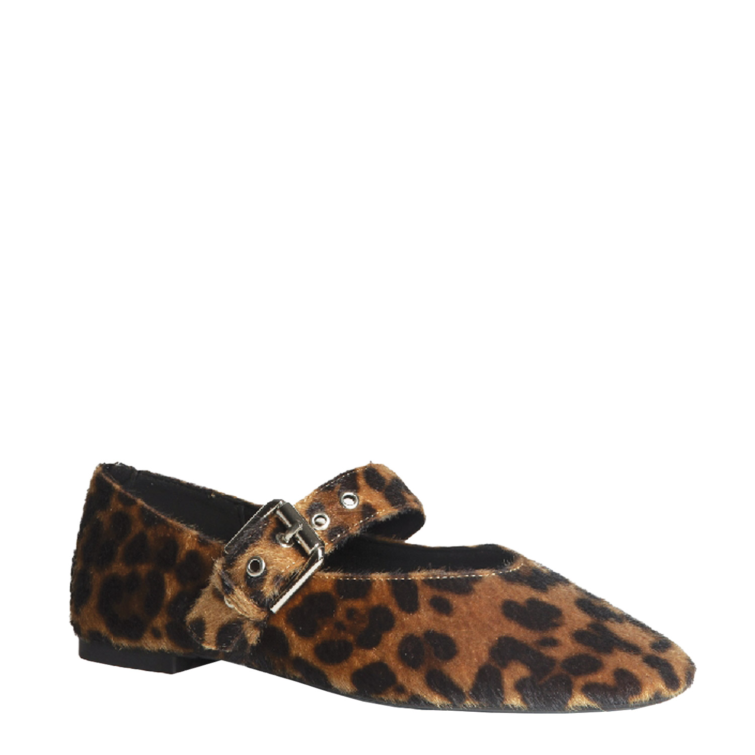 Koniarisshoes γυναικεία μπαλαρίνα, σε λεοπάρ χρώμα, κατασκευασμένη από ύφασμα. Ύψος τακουνιού 1εκ.