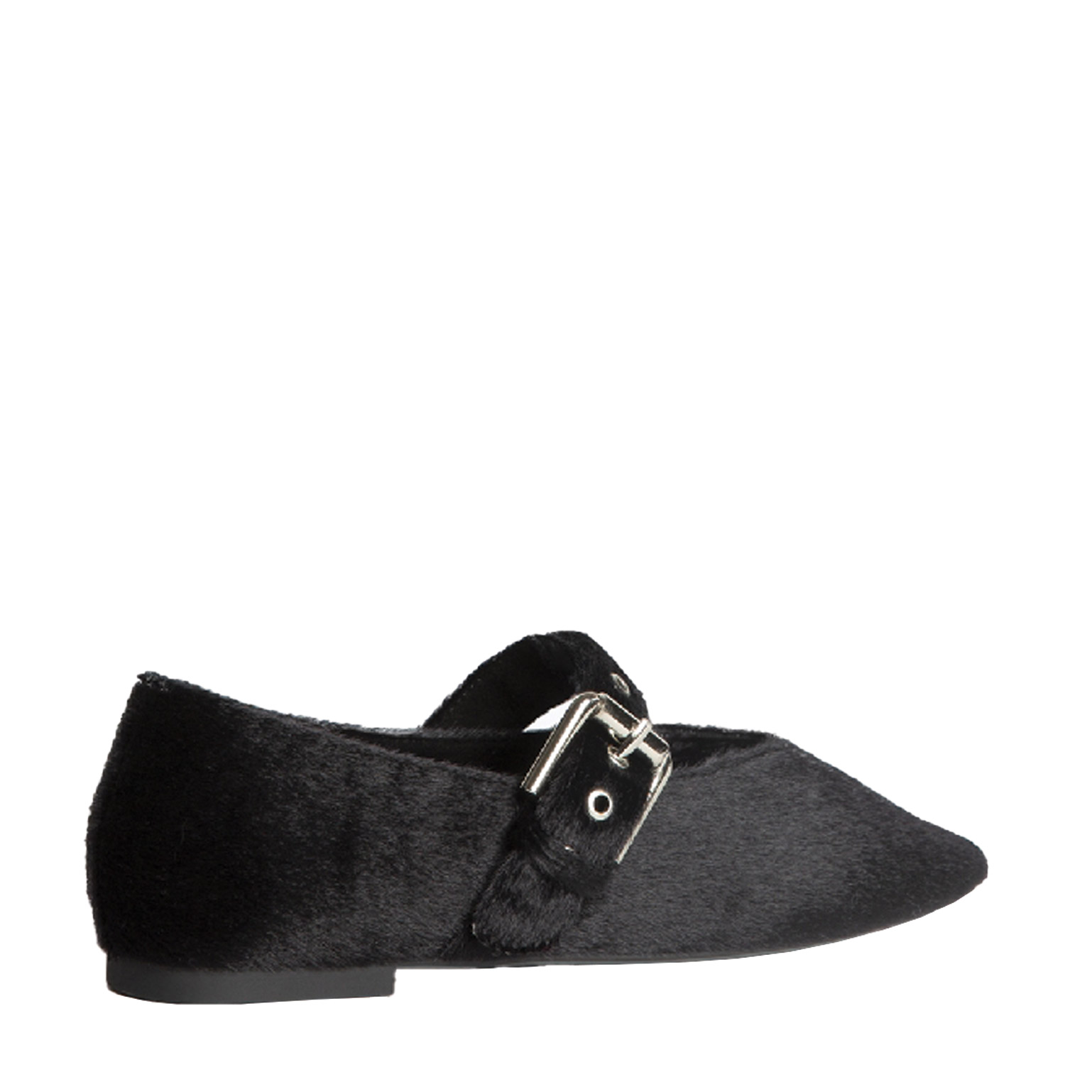 Koniarisshoes γυναικεία μπαλαρίνα, σε μαύρο χρώμα, κατασκευασμένη από ύφασμα. Ύψος τακουνιού 1εκ.