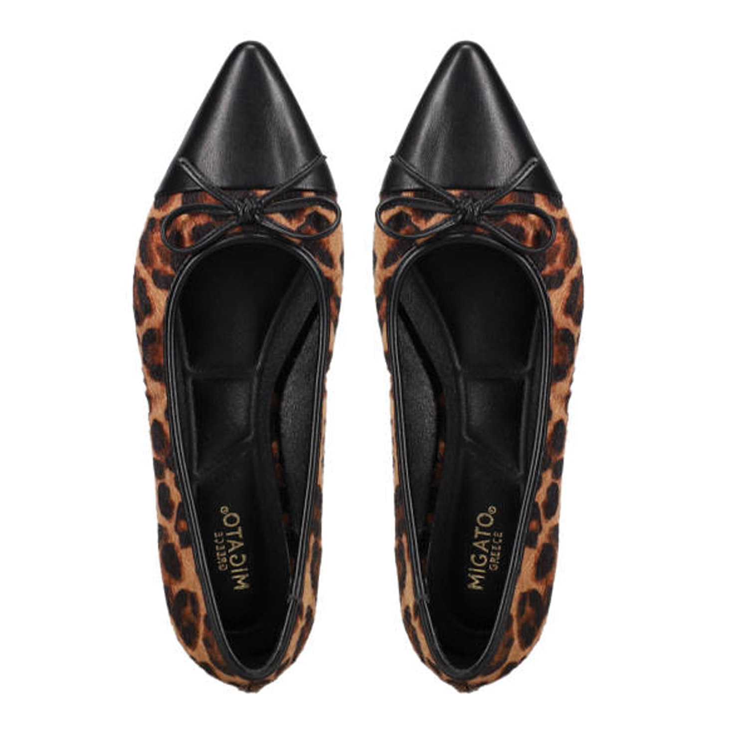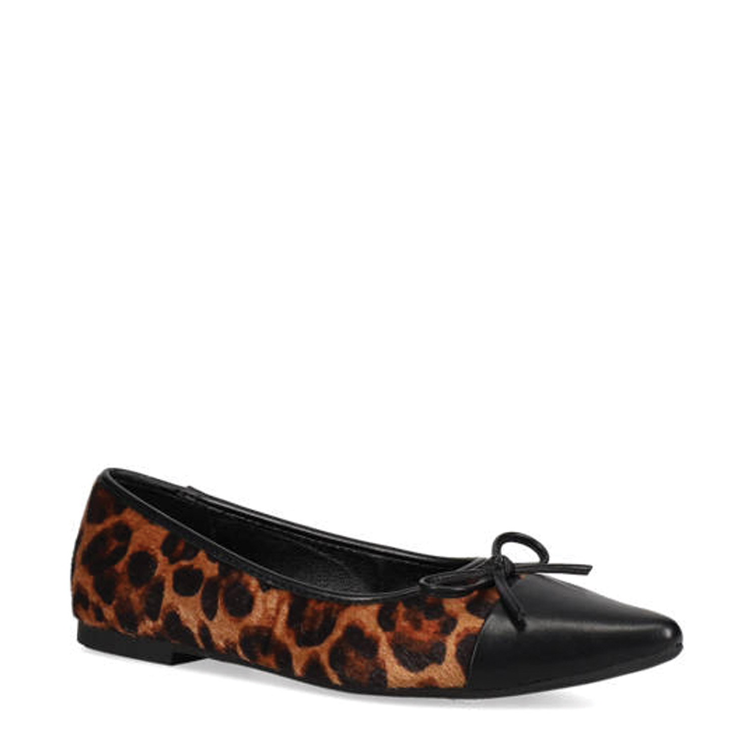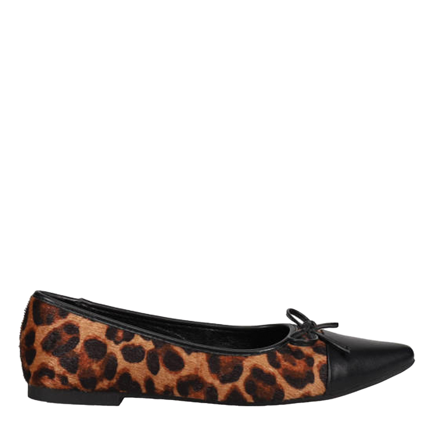 Μαύρη μπαλαρίνα με animal print λεπτομέρειες. Διαθέτει διακοσμητικό φιογκάκι.