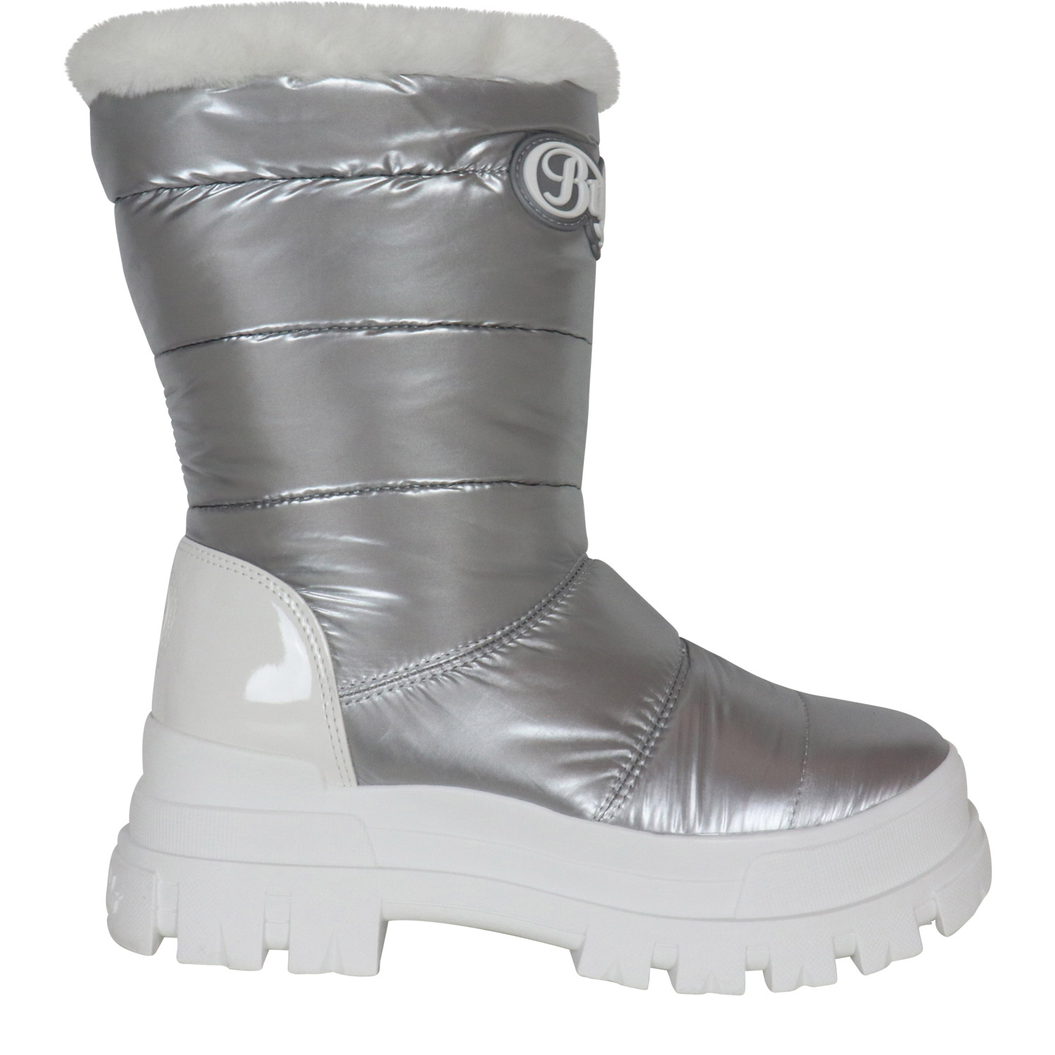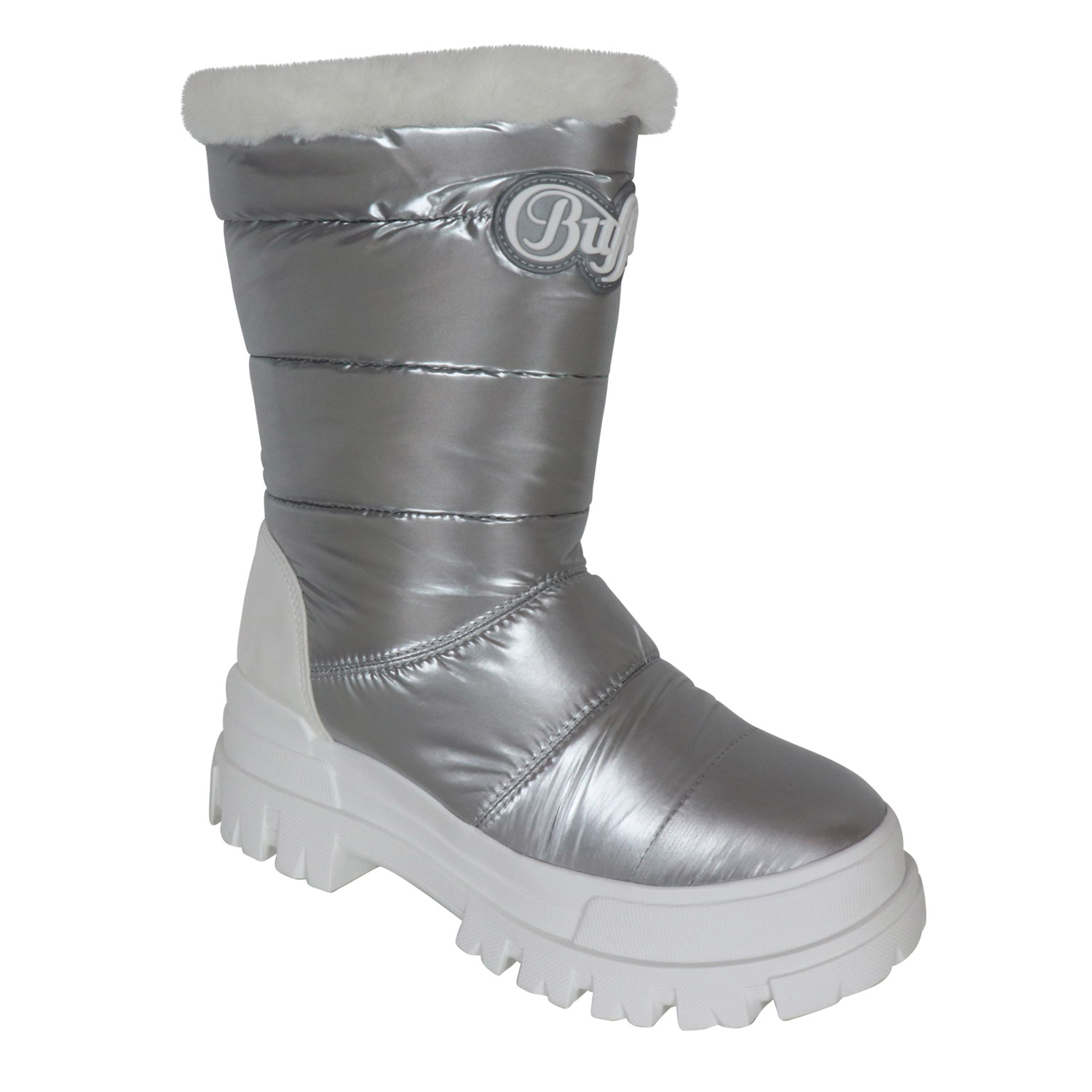 Buffalo γυναικείο μποτάκι σε ασημι χρώμα κατασκευασμένο απο υφασμα και με ύψος σόλας 6εκ
