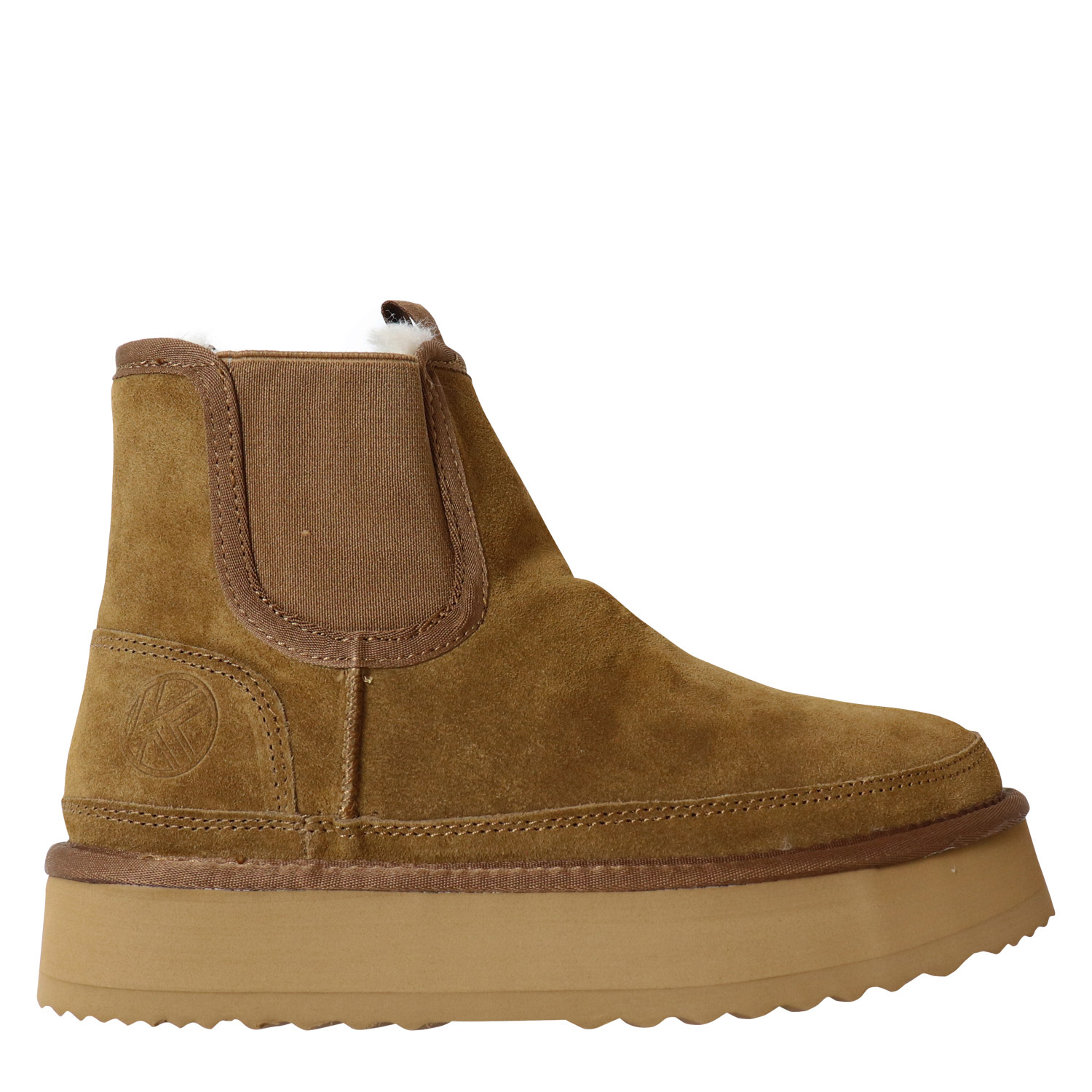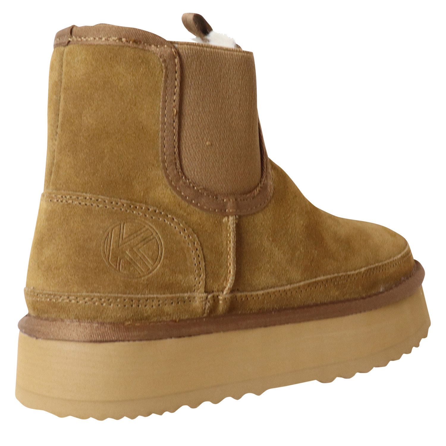 Kelara γυναικείο μποτάκι σε ταμπά χρώμα, κατασκευασμένο από δέρμα καστόρι. Ύψος σόλας 3.8εκ.