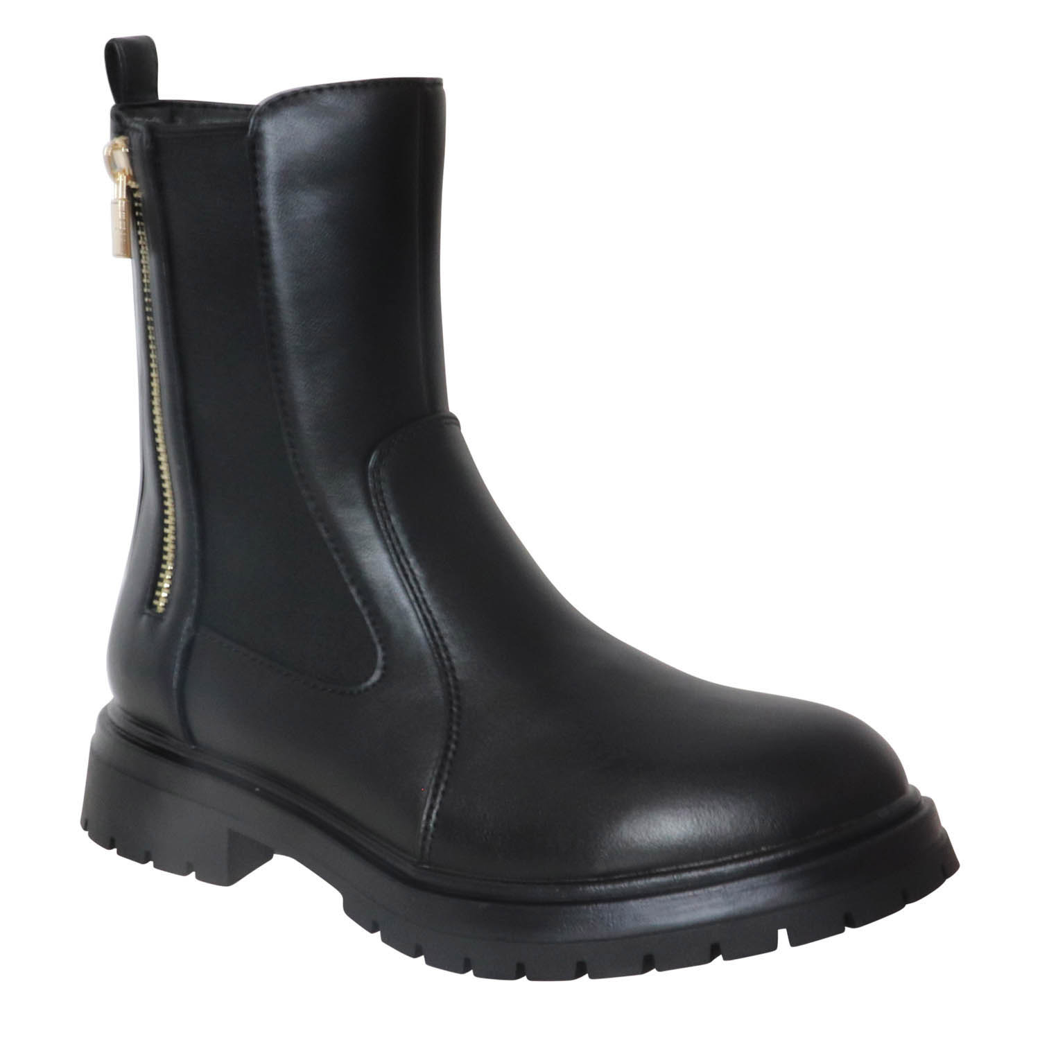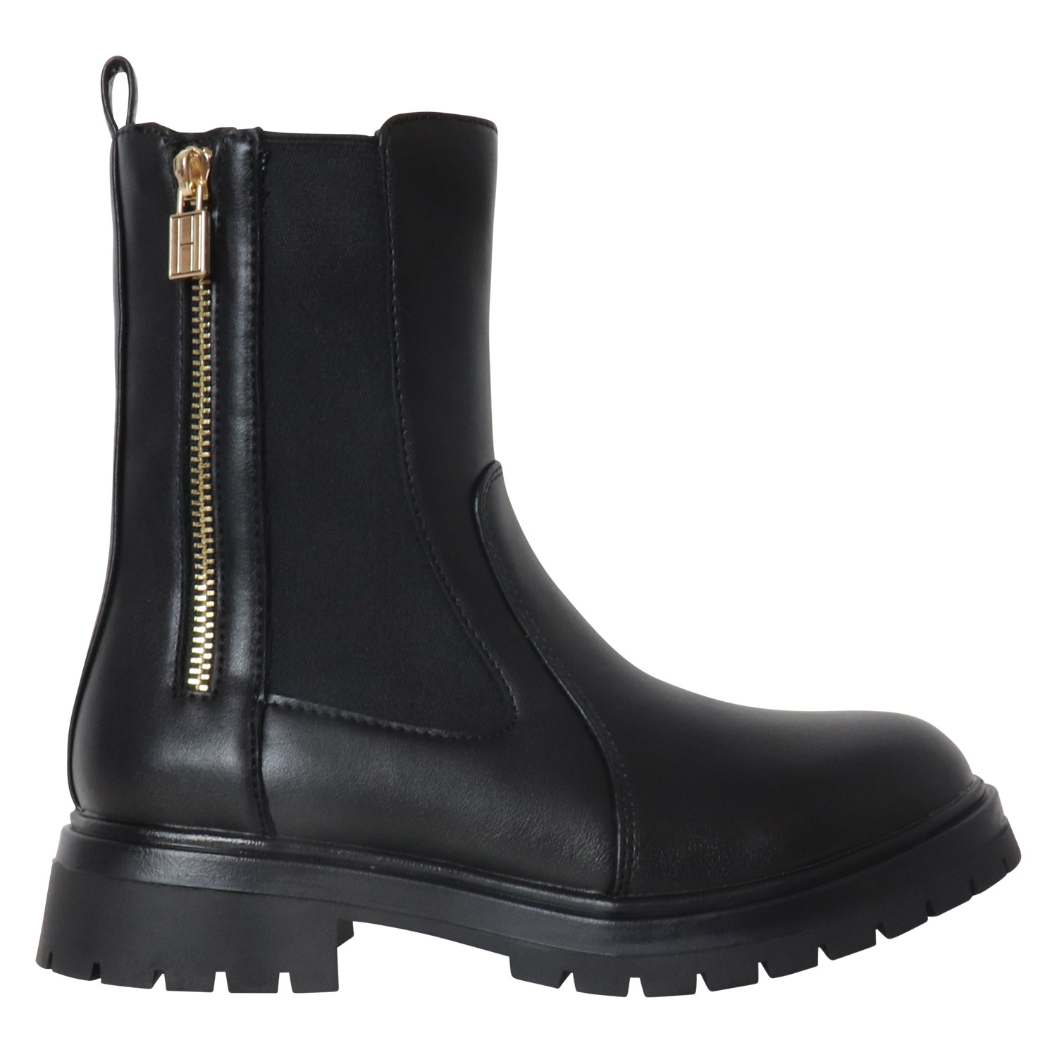Tommy Hilfiger γυναικείο μποτάκι, σε μαύρο χρώμα, κατασκευασμένο από οικολογικό δέρμα. Ύψος τακουνιού 4εκ.
