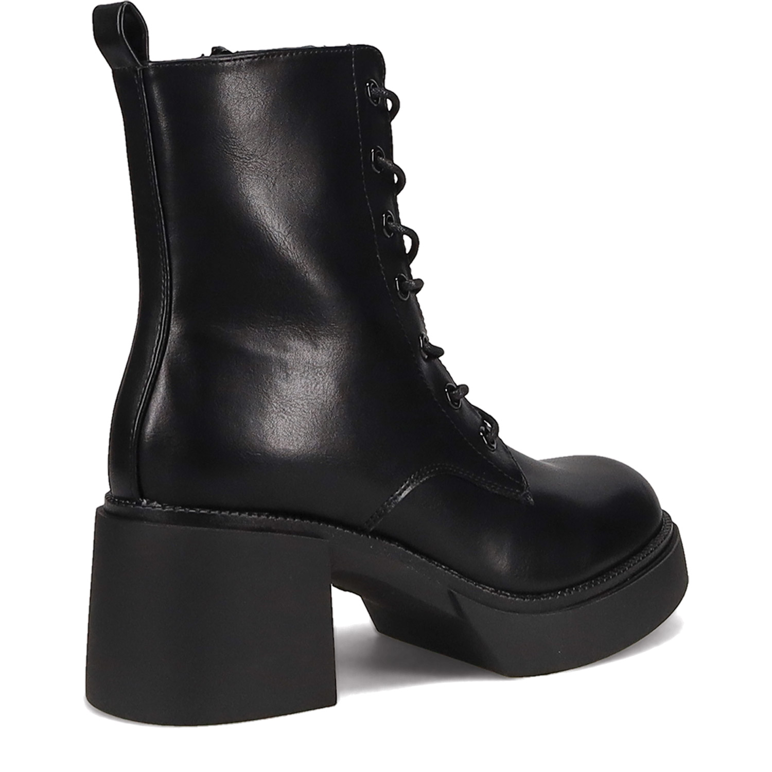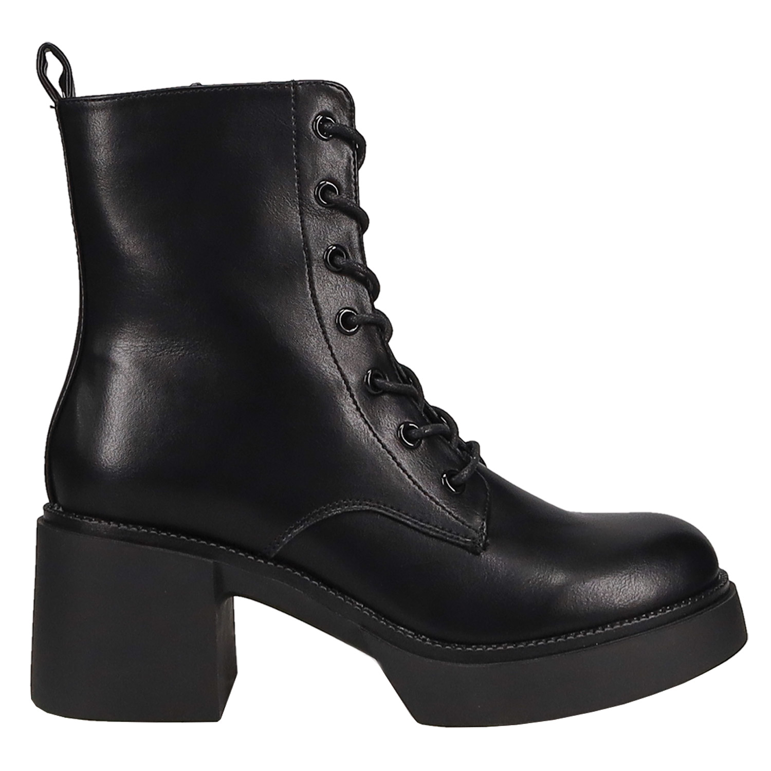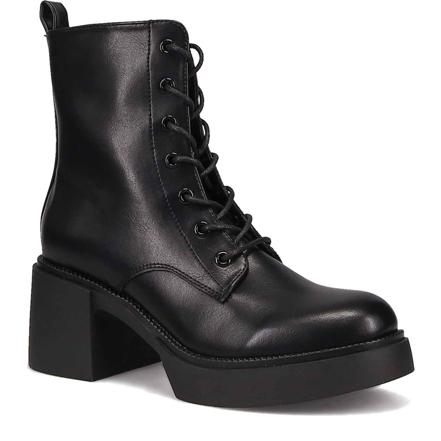 Migato γυναικείο μποτάκι, σε μαύρο χρώμα, κατασκευασμένο από οικολογικό δέρμα. Ύψος τακουνιού 6.5εκ.