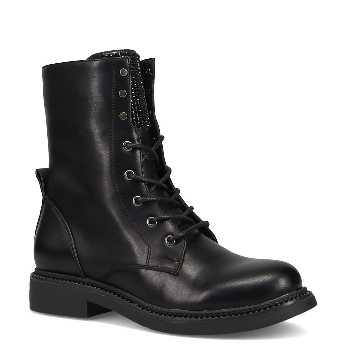 Camille γυναικείο μποτάκι, σε μαύρο χρώμα, κατασκευασμένο από οικολογικό δέρμα. Ύψος σόλας 3εκ.