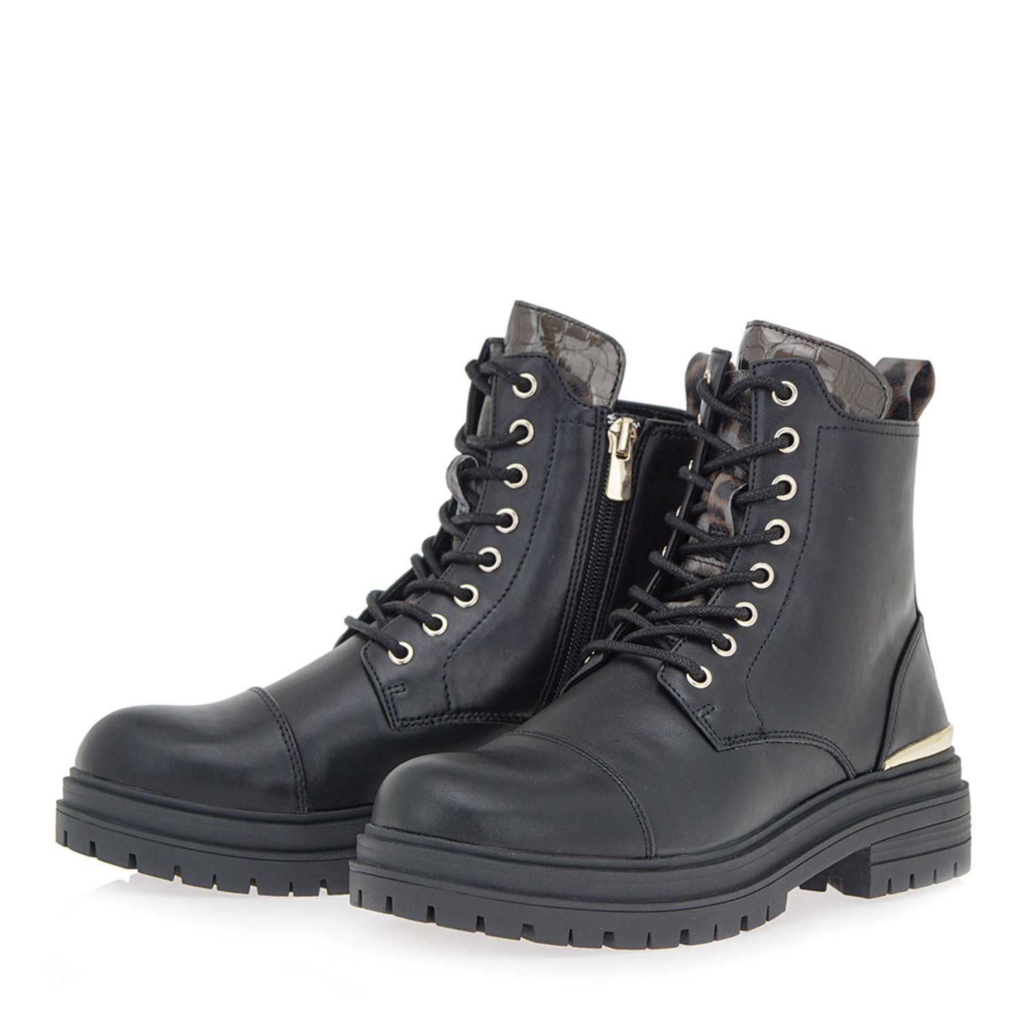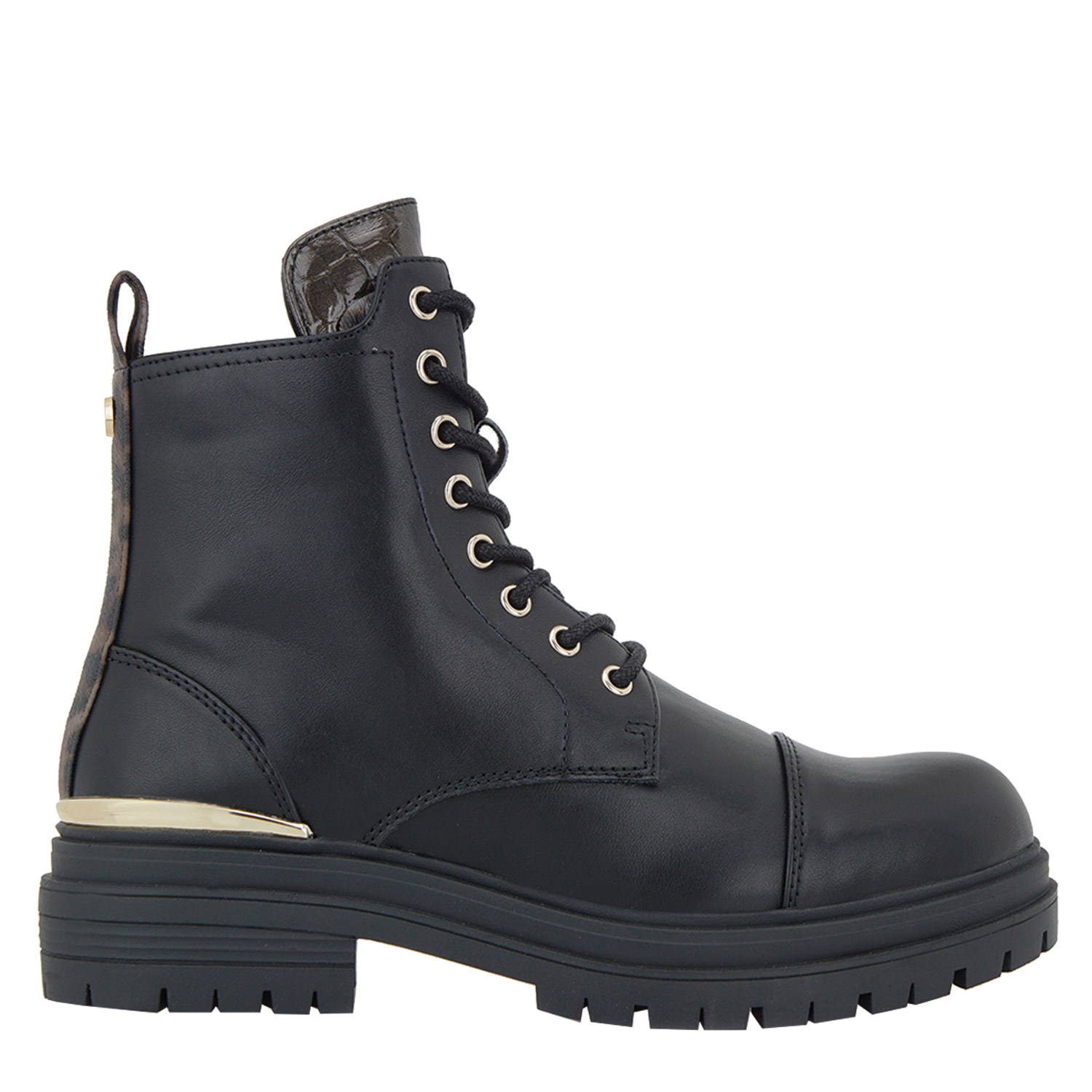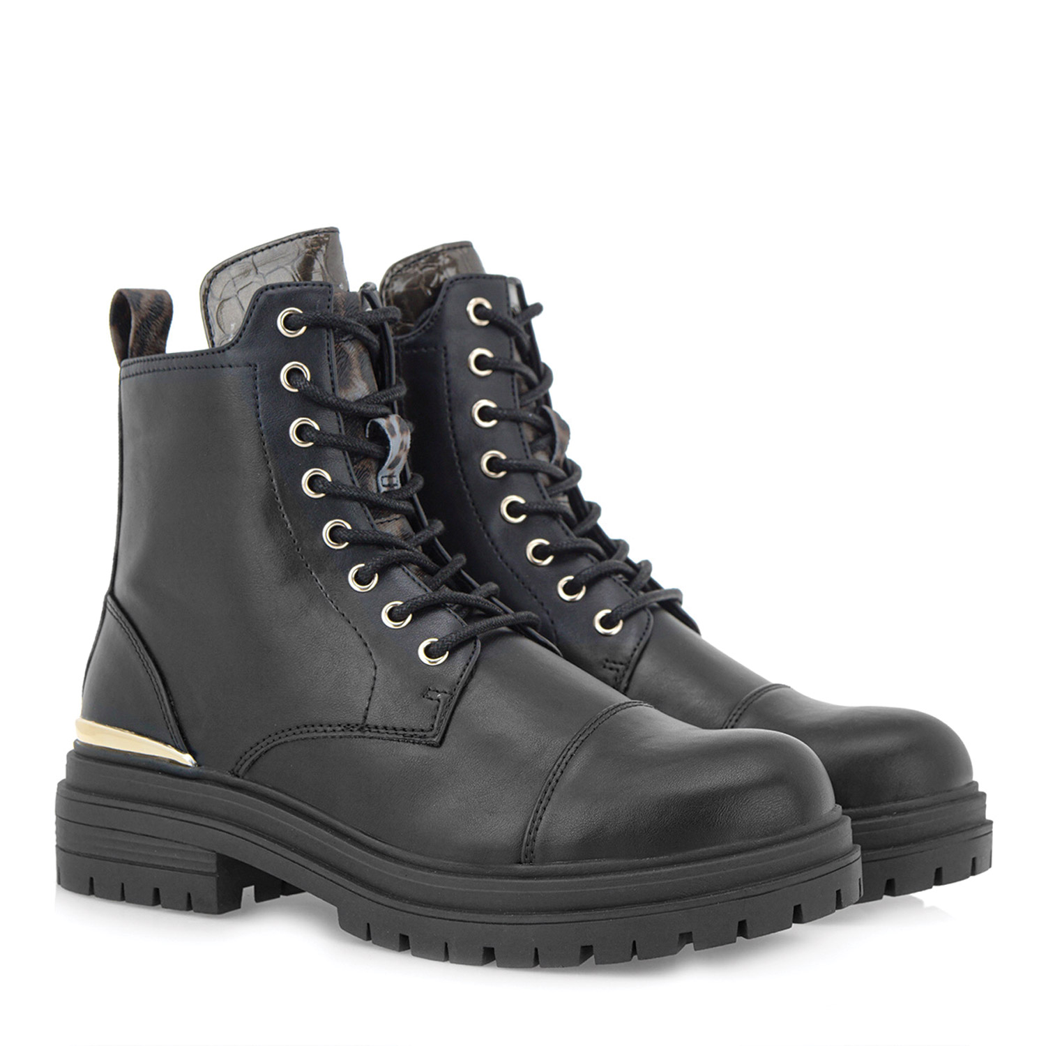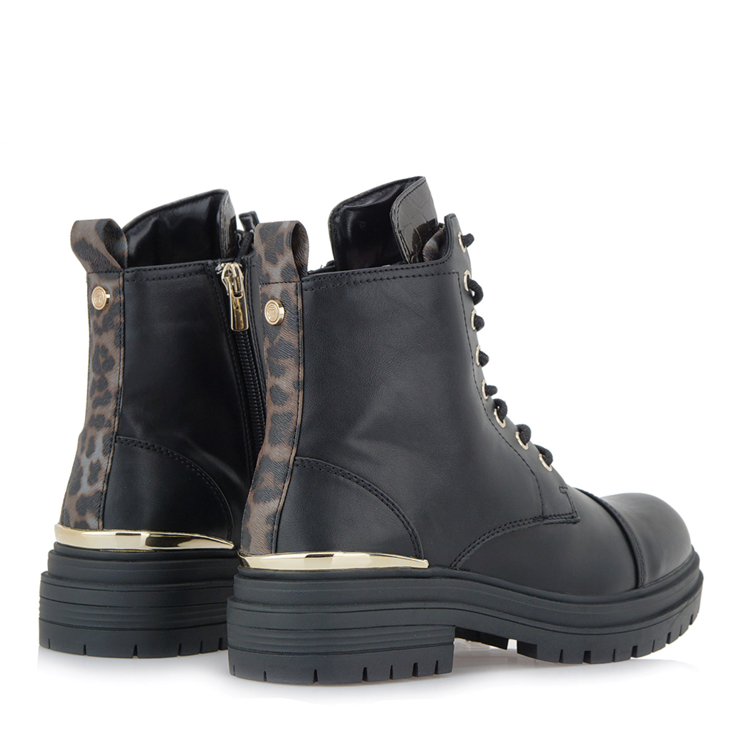 Seven γυναικείο μποτάκι, σε μαύρο χρώμα, κατασκευασμένο από οικολογικό δέρμα. Ύψος σόλας 4εκ.