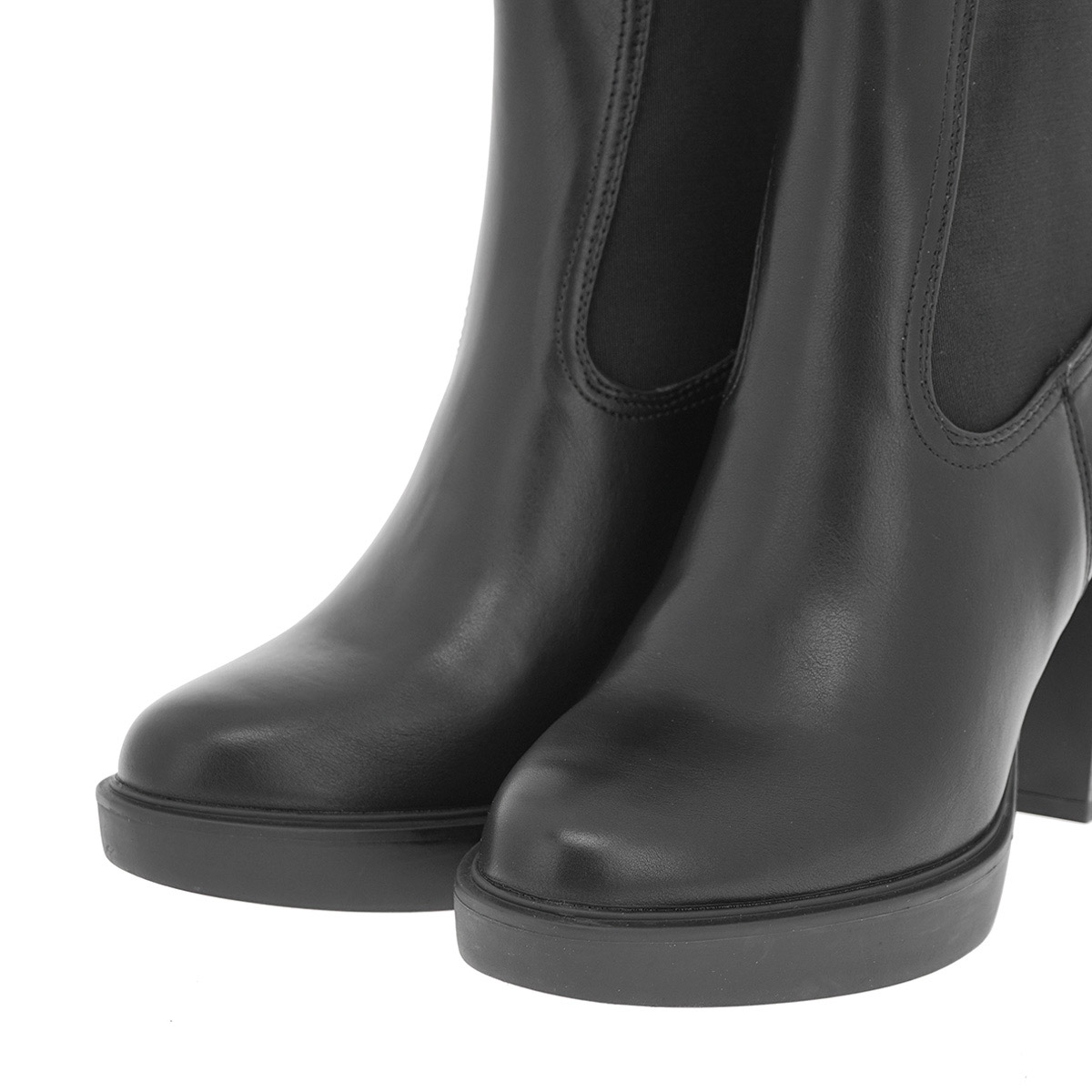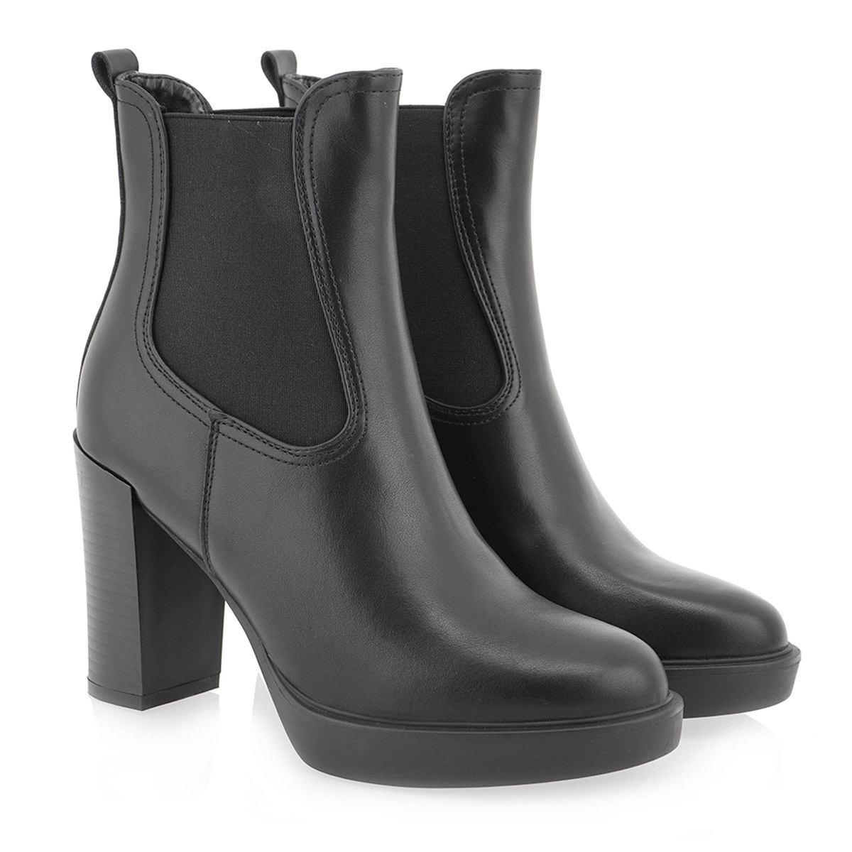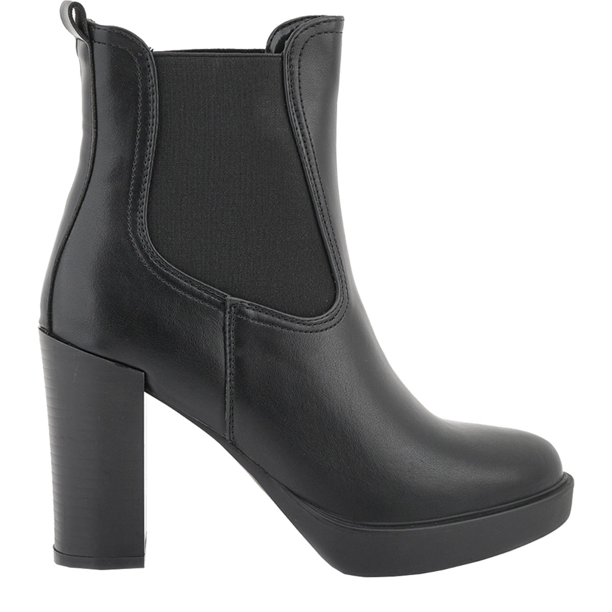 Seven γυναικείο μποτάκι σε μαύρο χρώμα κατασκευασμένο από οικολογικό δέρμα. Ύψος τακουνιού 10εκ.