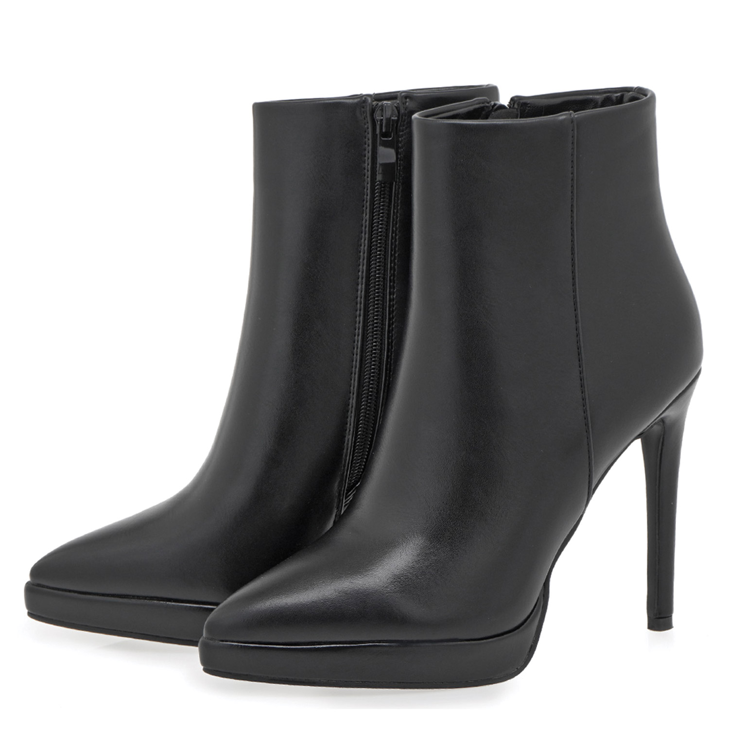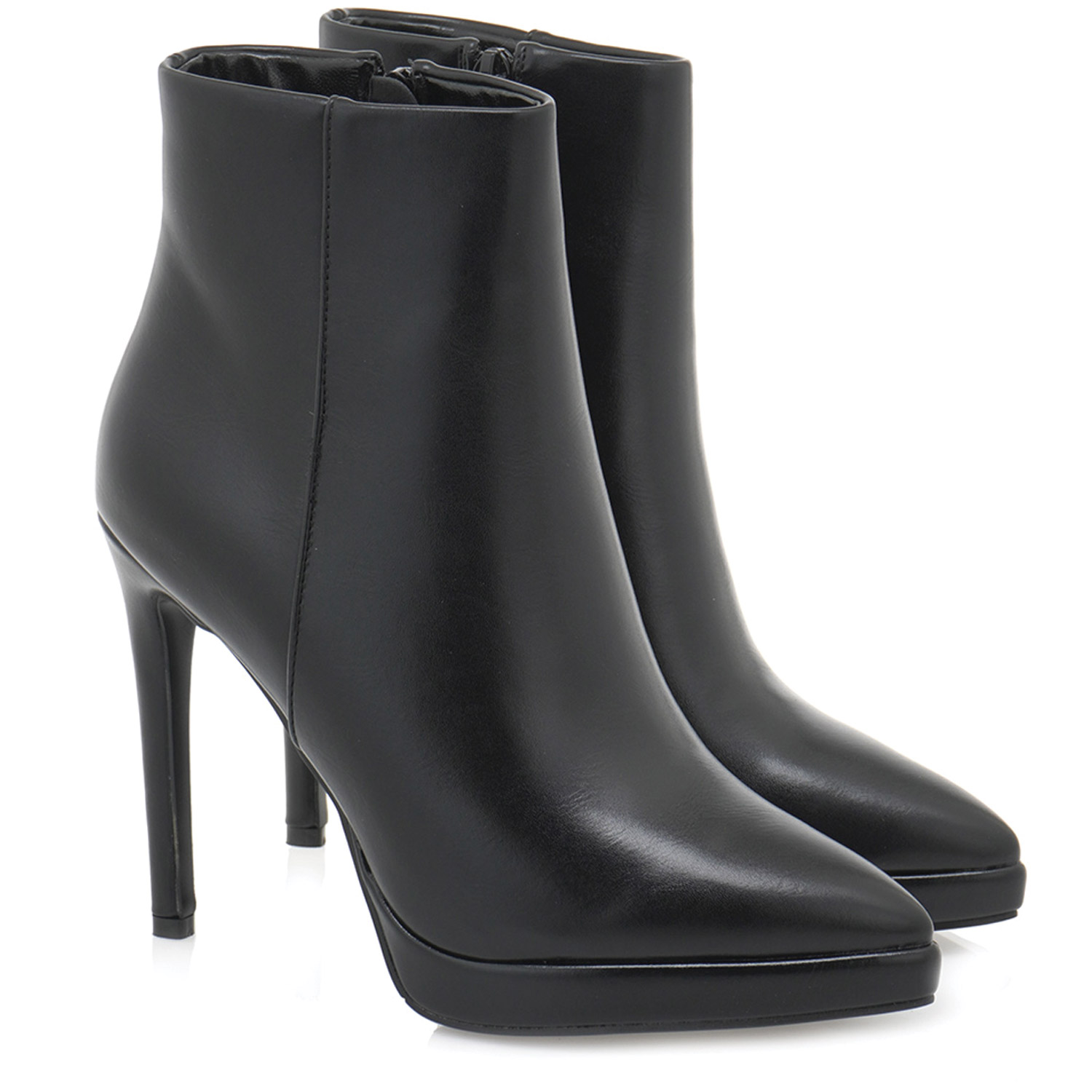 Exe γυναικείο μποτάκι, σε μαύρο χρώμα, κατασκευασμένο από οικολογικό δέρμα. Ύψος τακουνιού 12εκ.