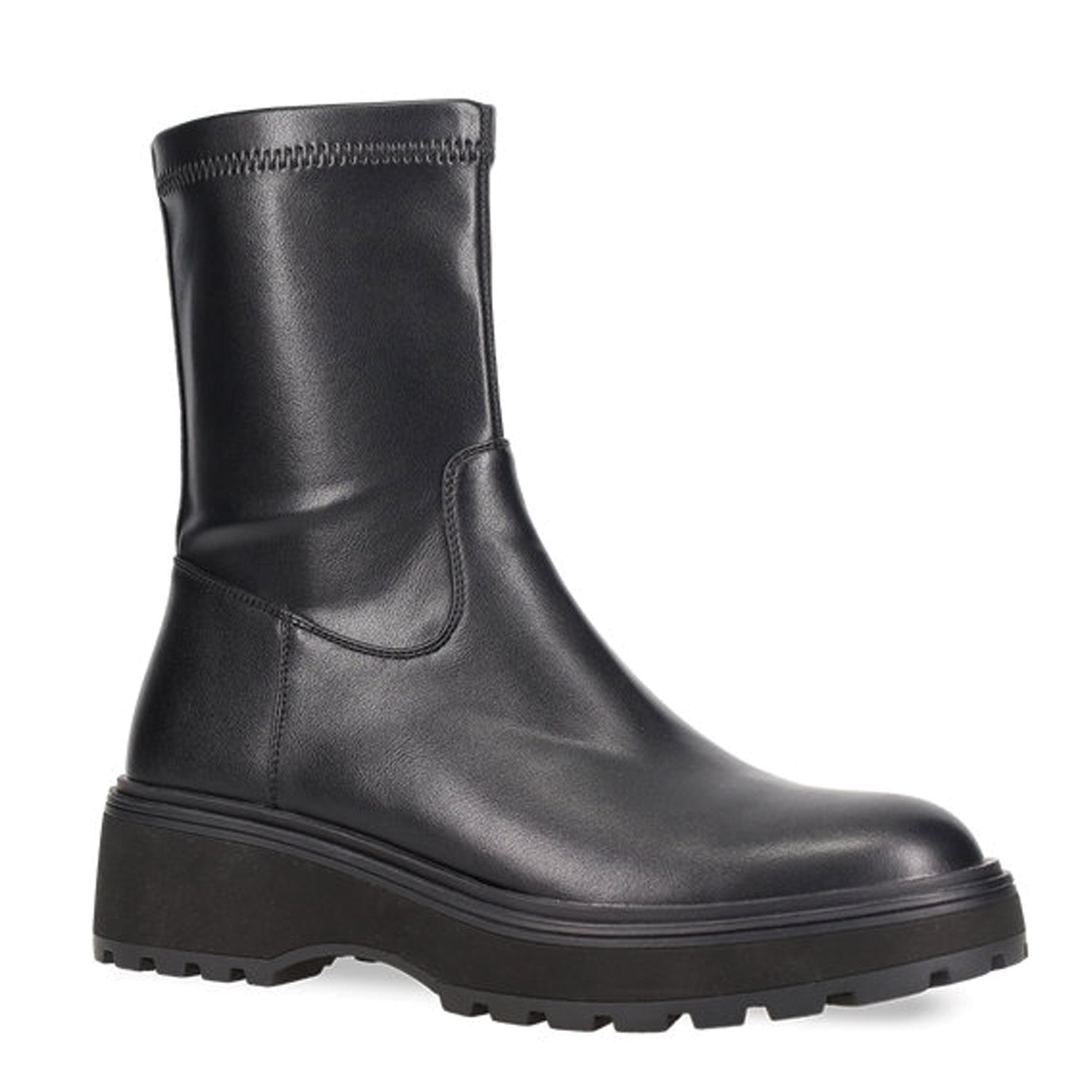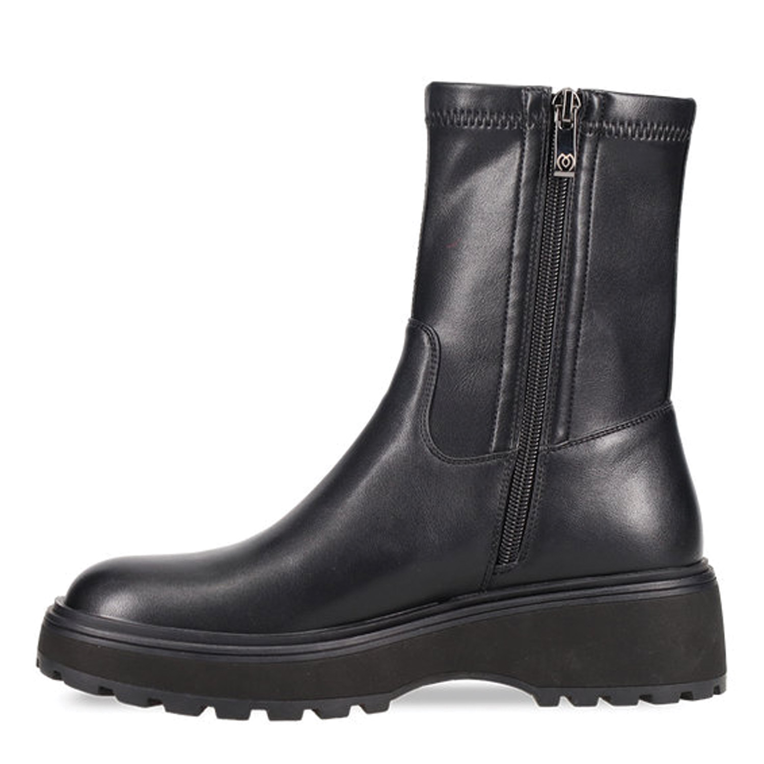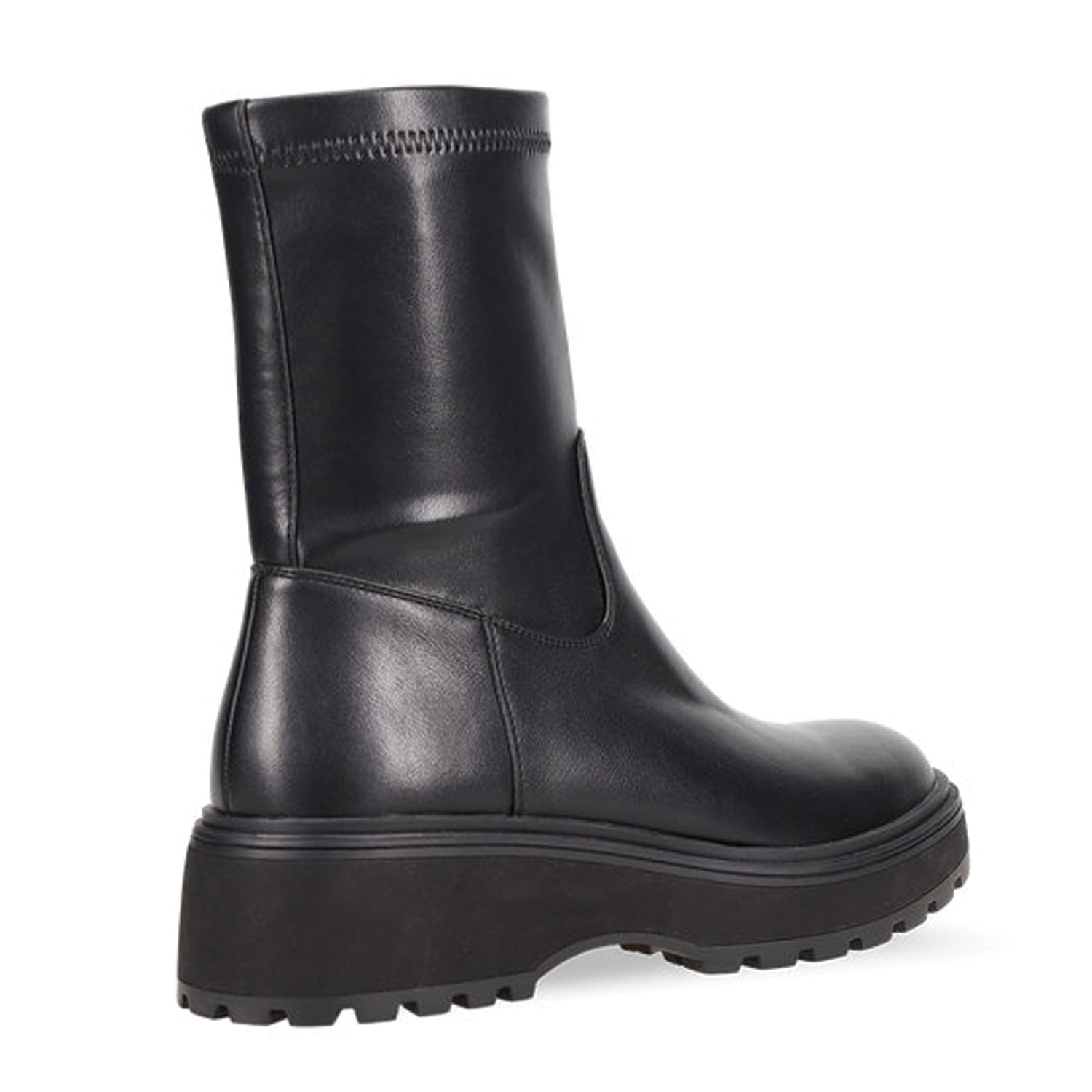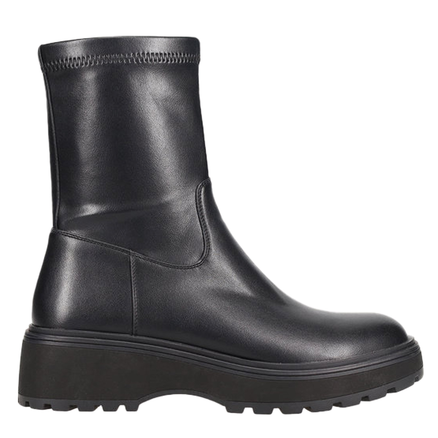 Μαύρο ελαστικό μποτάκι με χοντρή σόλα. Κλείνει με φερμουάρ στο πλάι.