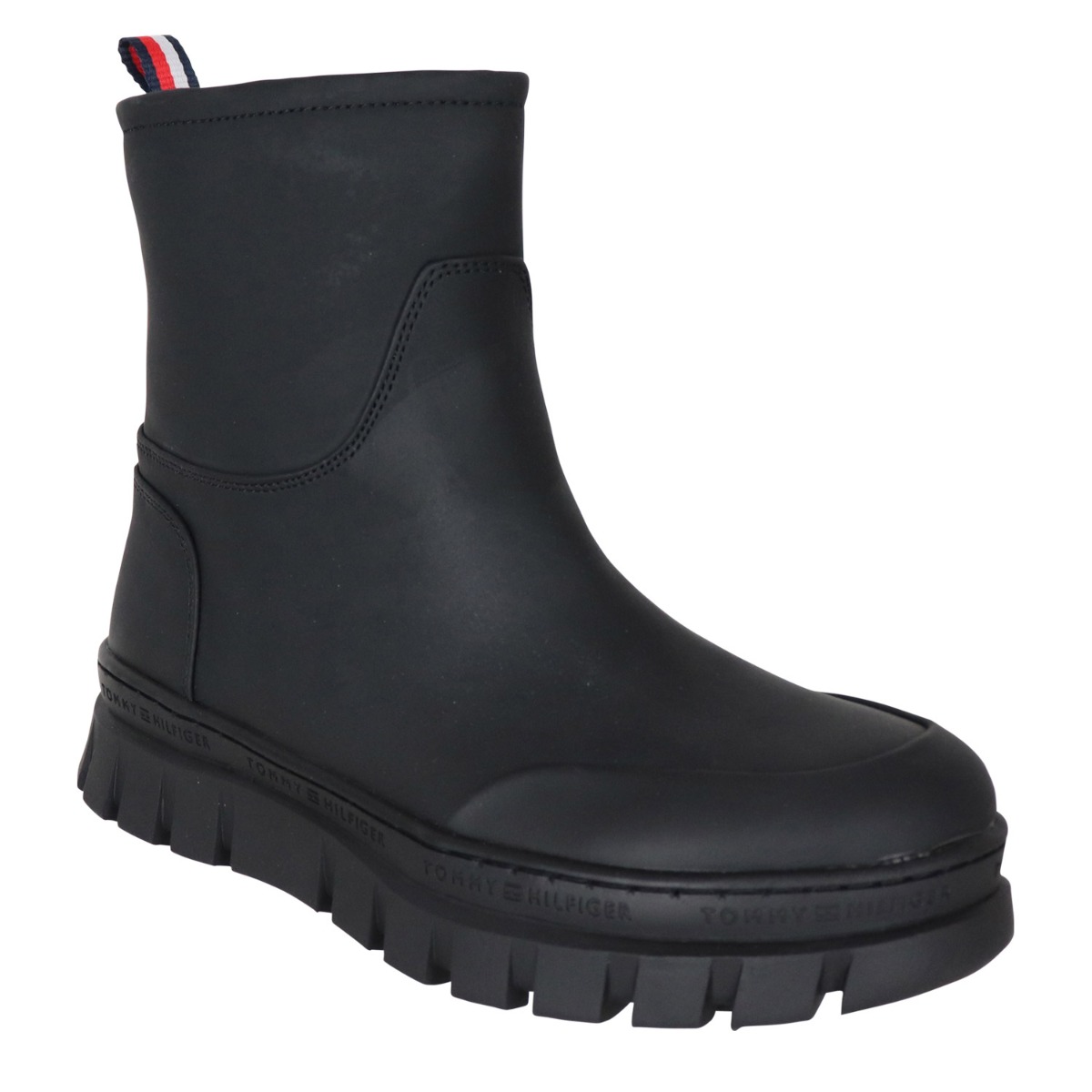 Tommy Hilfiger γυναικείο μποτάκι σε μαύρο χρώμα κατασκευασμένο από οικολογικό δέρμα. Ύψος σόλας 3,5εκ.