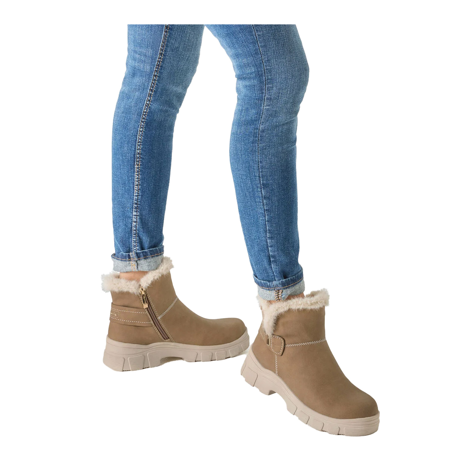 Τους χειμωνιάτικους περιπάτους και τις καθημερινές στιγμές μπορείς να απολαύσεις με τις urban chic μπότες της Tamaris Essentials. Η υδροαπωθητική μεμβράνη Duotex κρατά τα πόδια σου στεγνά και ζεστά, ενώ το αποσπώμενο, μαλακό πάτημα Touchit προσαρμόζεται τέλεια σε εσένα. Αντιολισθητική σόλα για σιγουριά σε κάθε δρόμο, πρακτικό φερμουάρ και διακριτική αγκράφα που αναδεικνύει το στιλ σου—ό,τι χρειάζεσαι για χαλαρές μέρες με αυτοπεποίθηση.