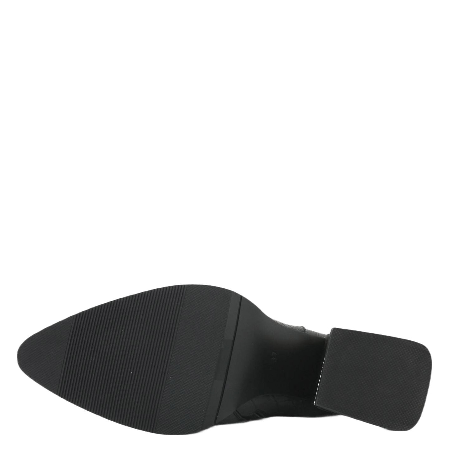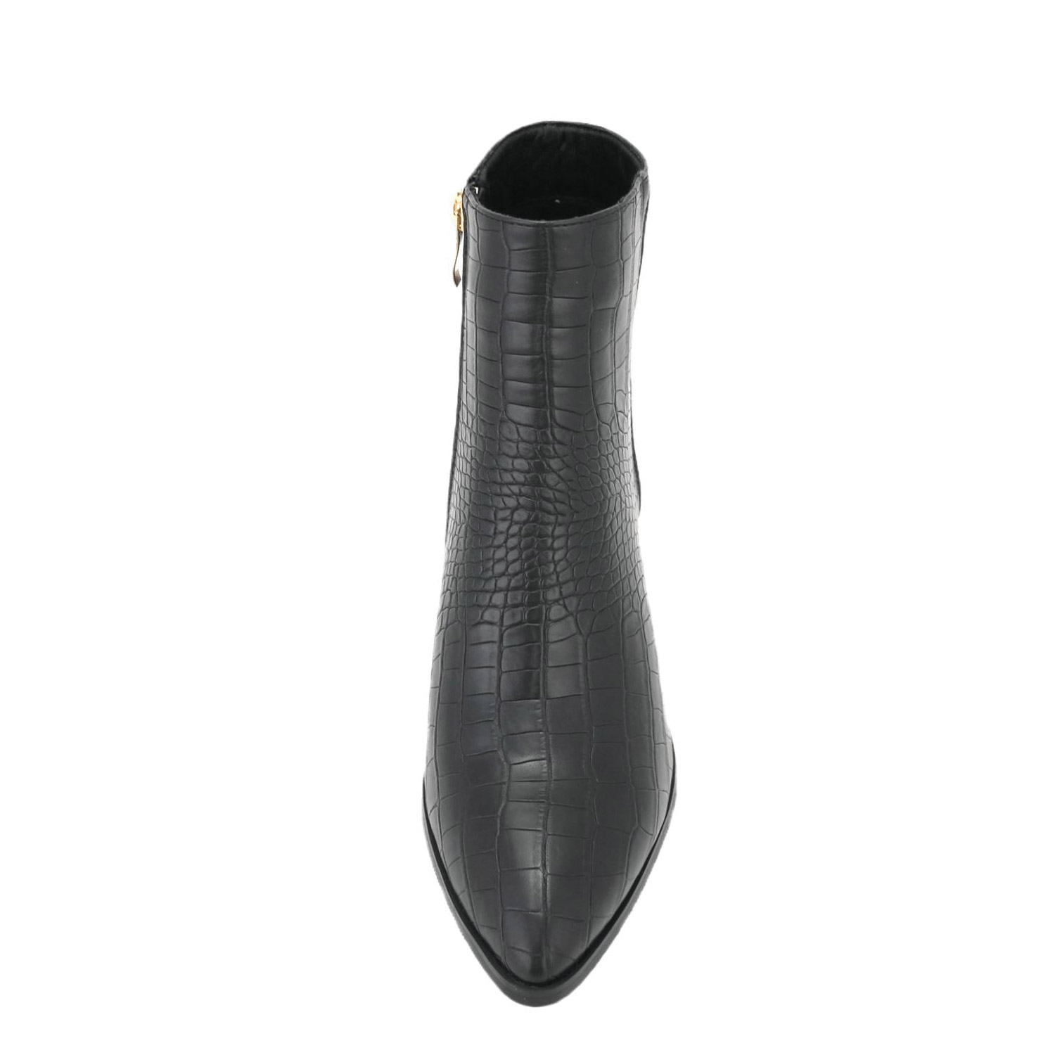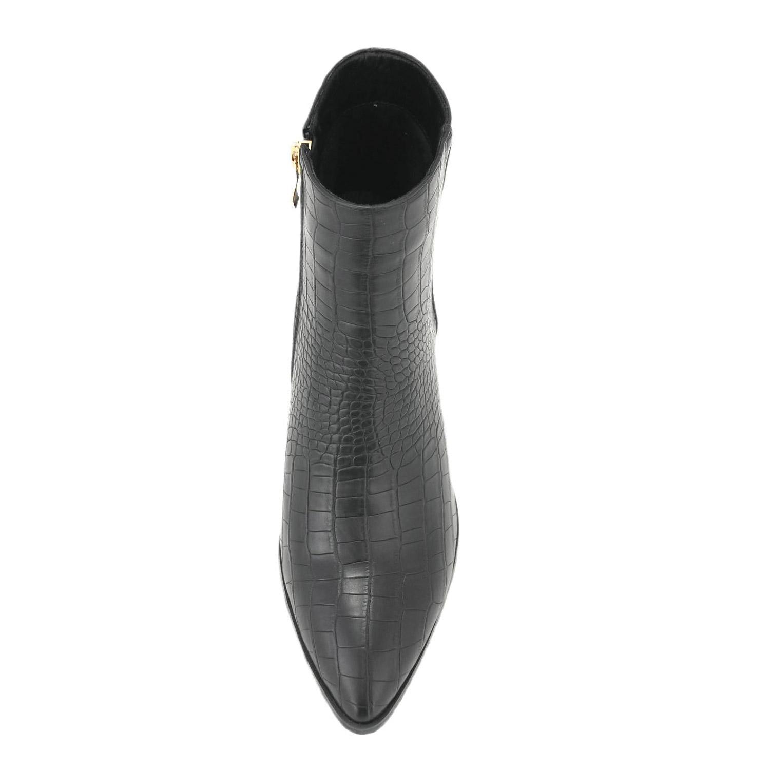 Gianna Kazakou γυναικείο μποτάκι, σε μαύρο χρώμα, κατασκευασμένο από οικολογικό δέρμα, με υφασμάτινη φόδρα. Ύψος τακουνιού 7.5εκ.