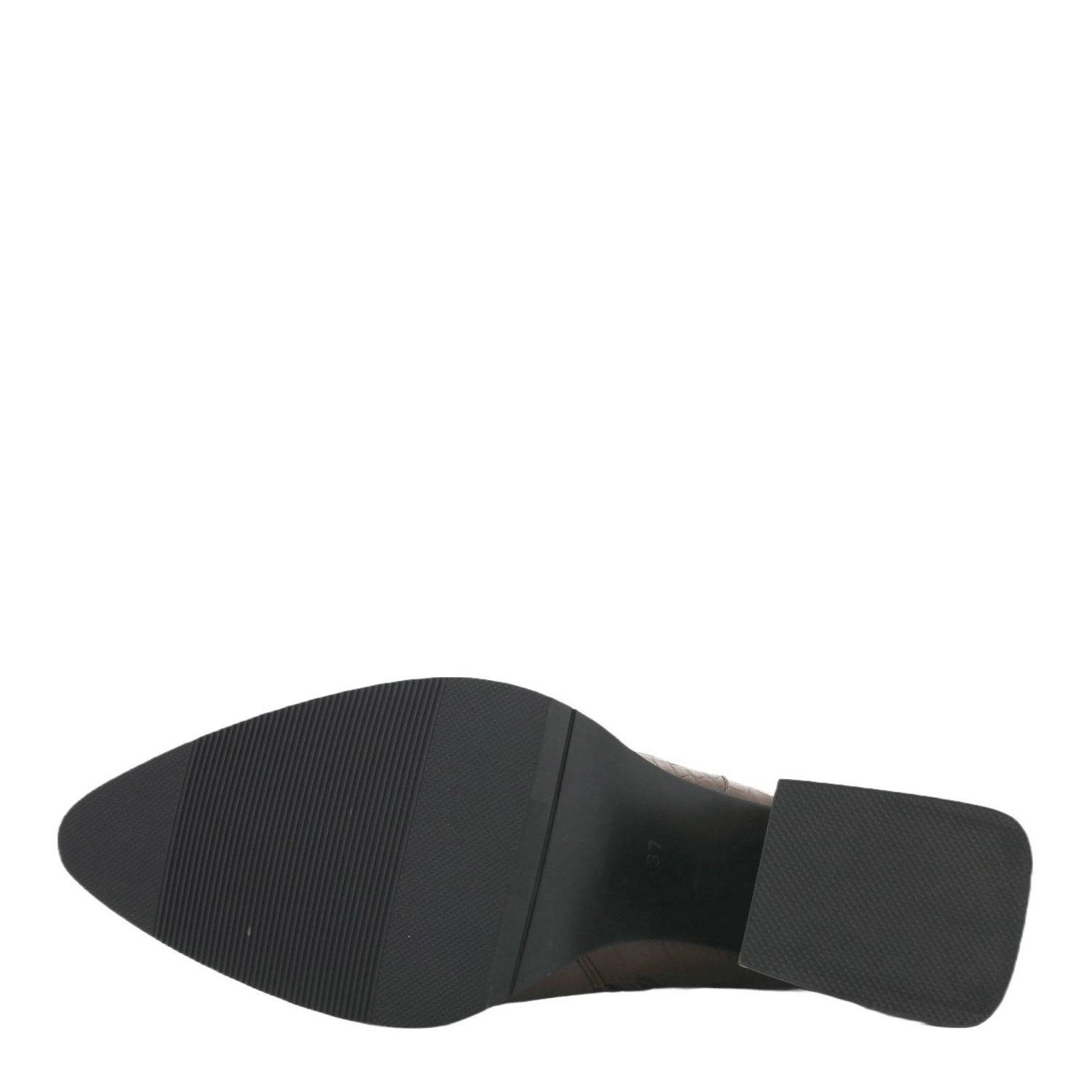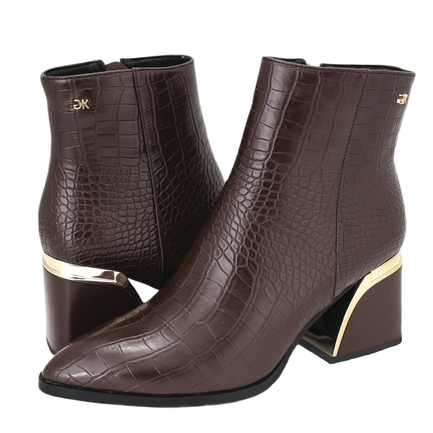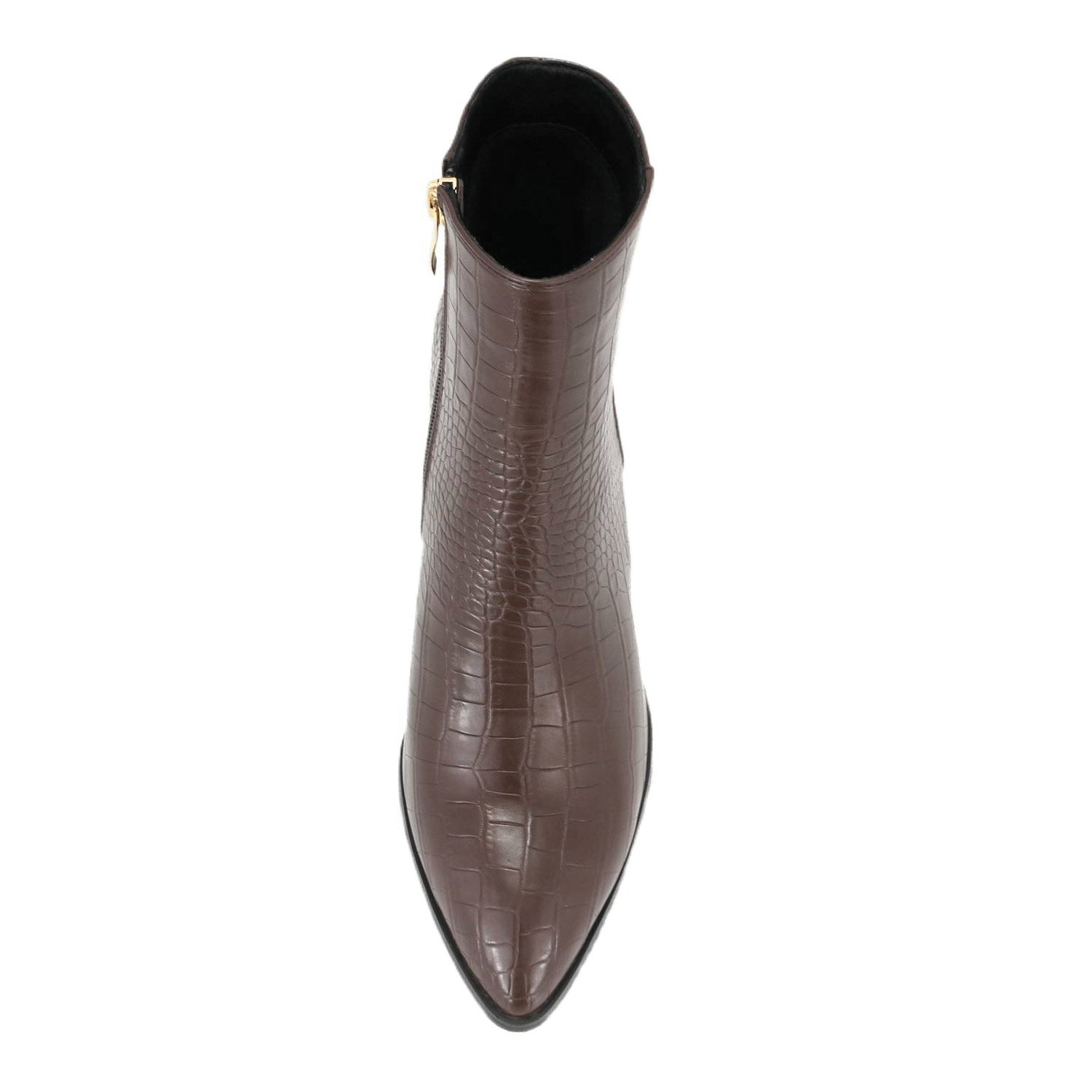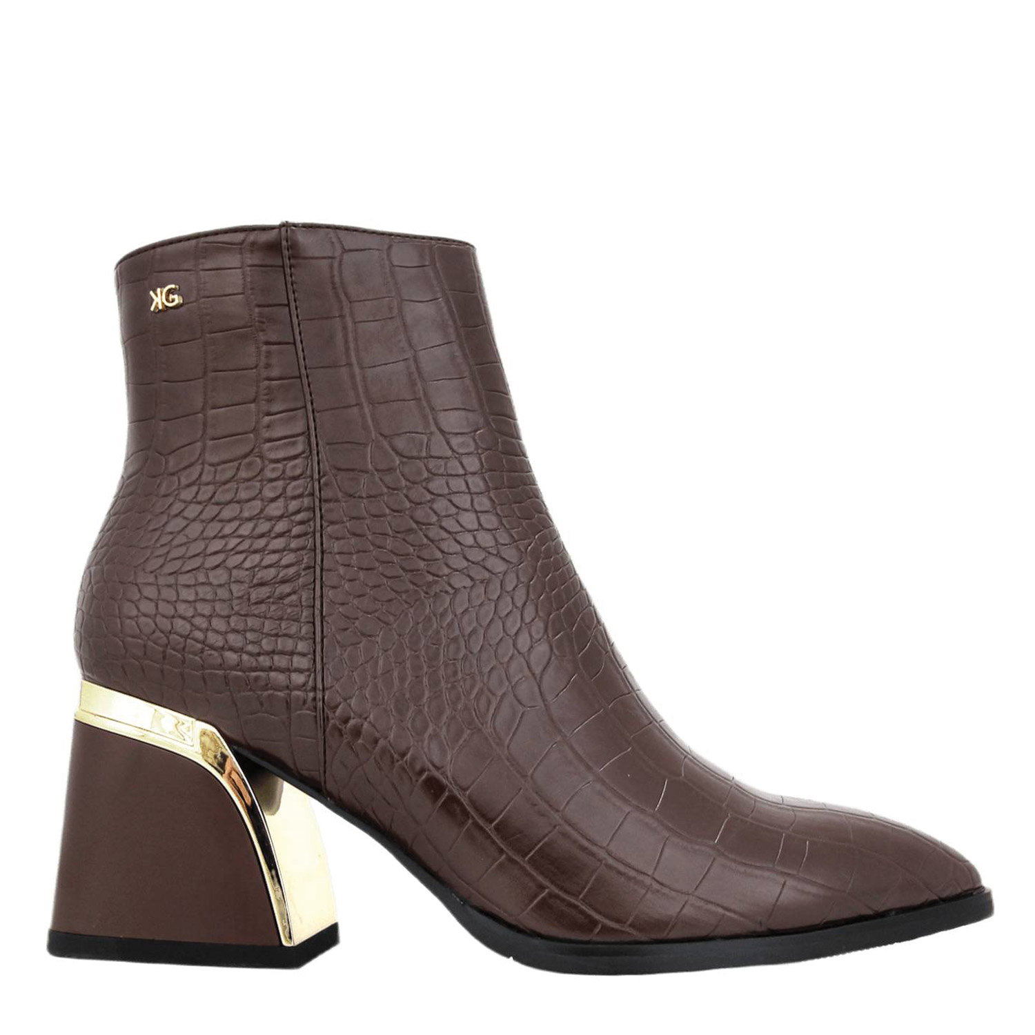 Gianna Kazakou γυναικείο μποτάκι, σε καφέ χρώμα, κατασκευασμένο από οικολογικό δέρμα, με υφασμάτινη φόδρα. Ύψος τακουνιού 7.5εκ.