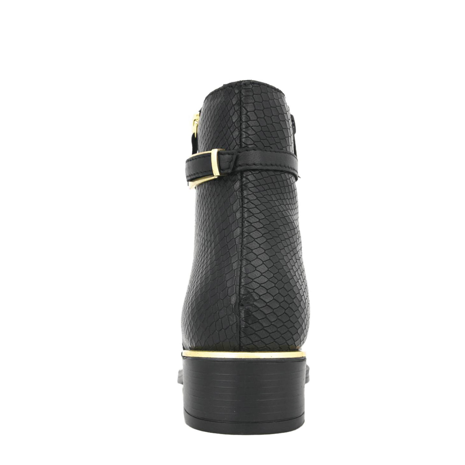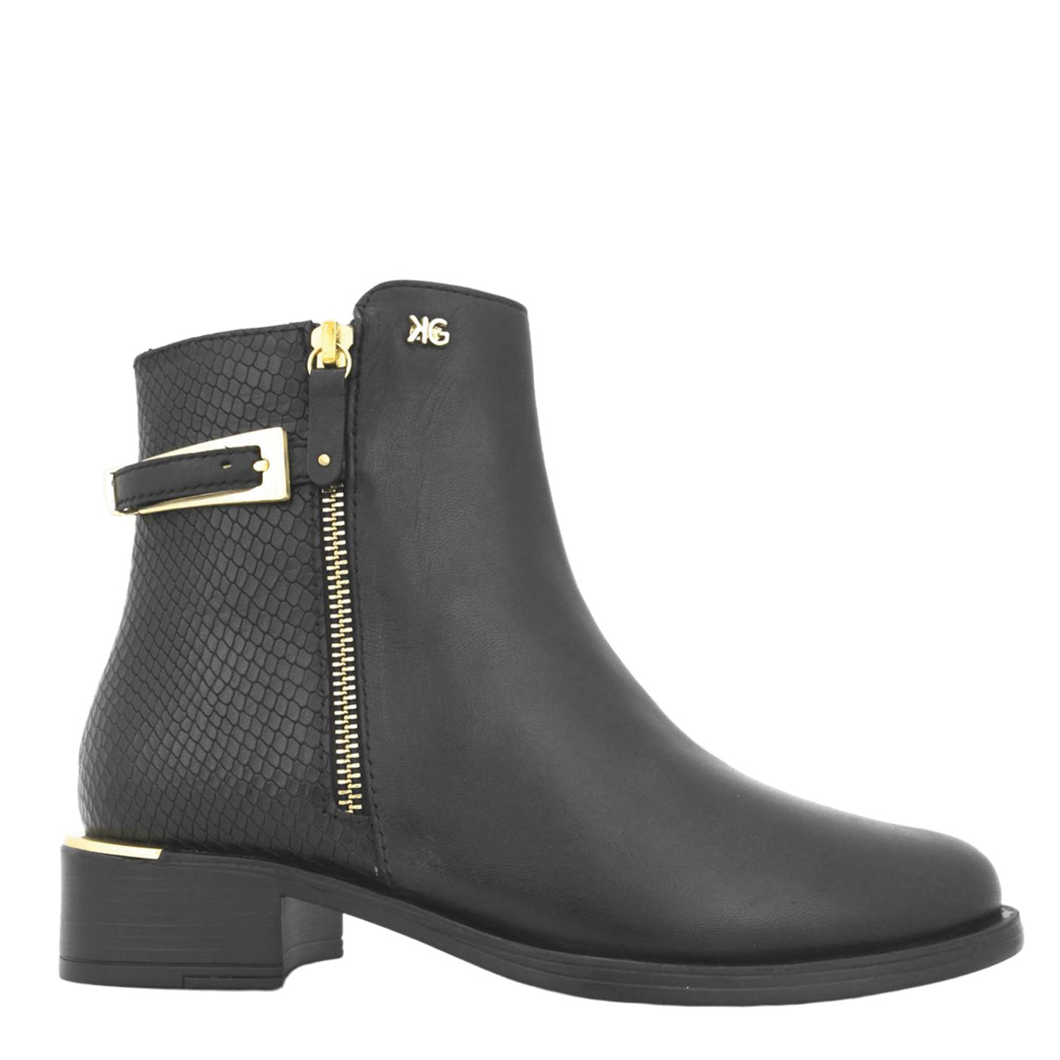 Gianna Kazakou γυναικείο μποτάκι, σε μαύρο χρώμα, κατασκευασμένο από δέρμα, με υφασμάτινη φόδρα. Ύψος τακουνιού 4εκ.