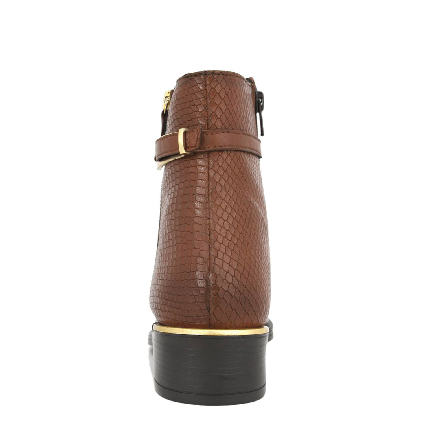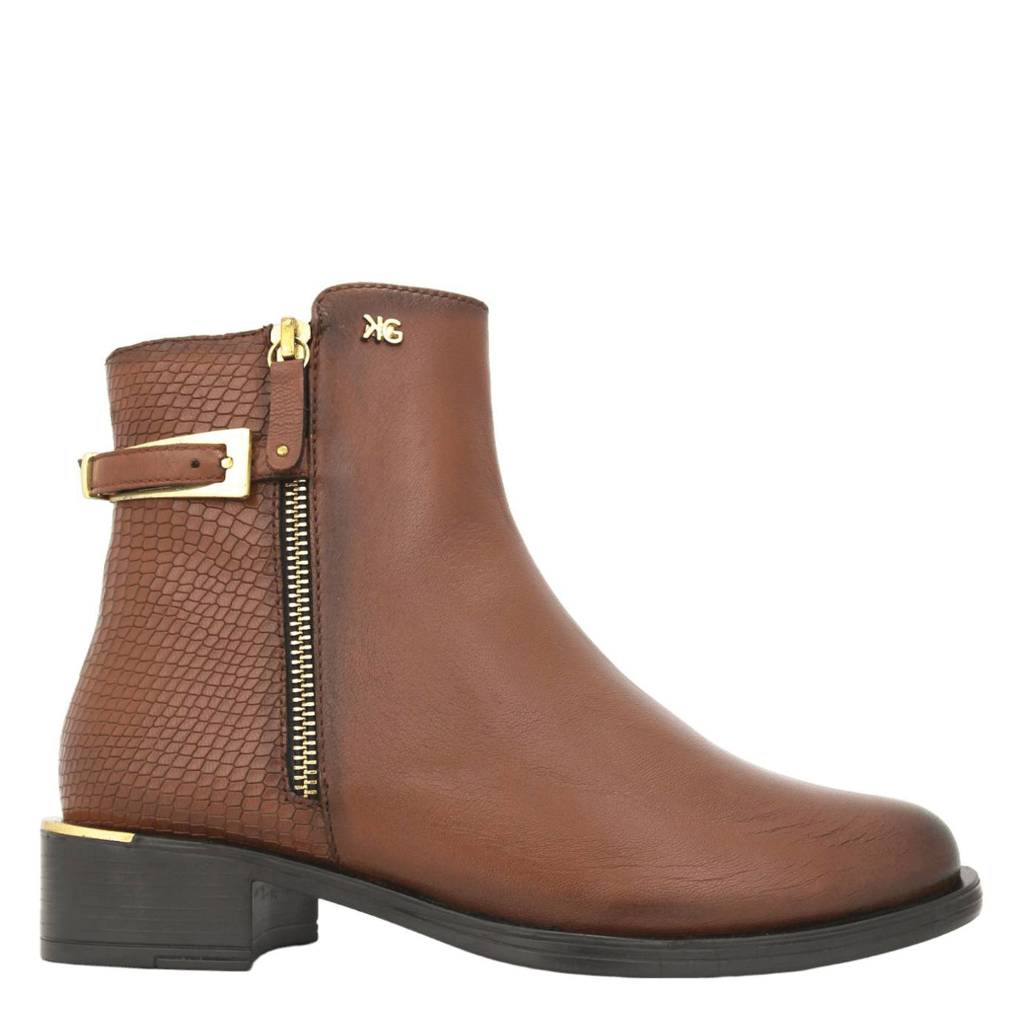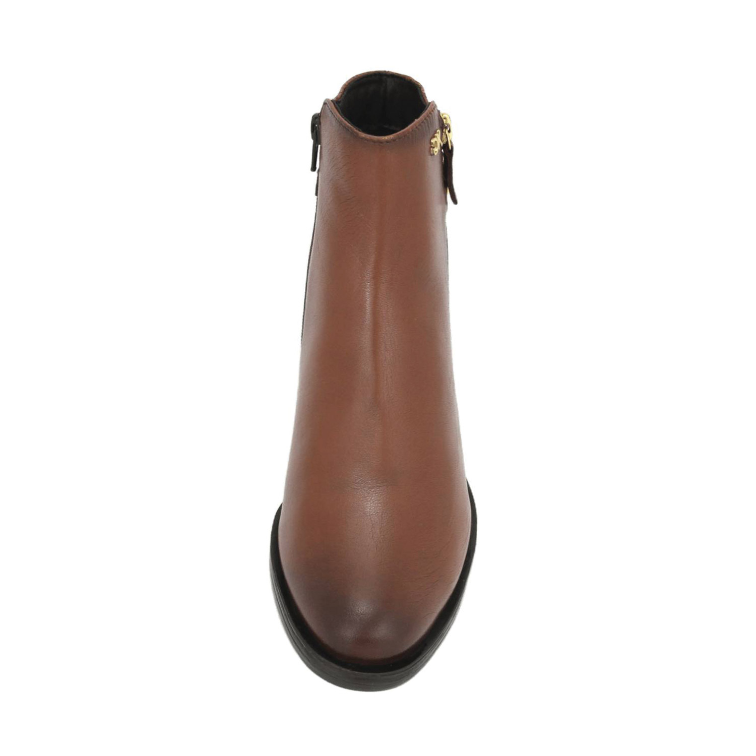 Gianna Kazakou γυναικείο μποτάκι, σε ταμπά χρώμα, κατασκευασμένο από δέρμα, με υφασμάτινη φόδρα. Ύψος τακουνιού 4εκ.