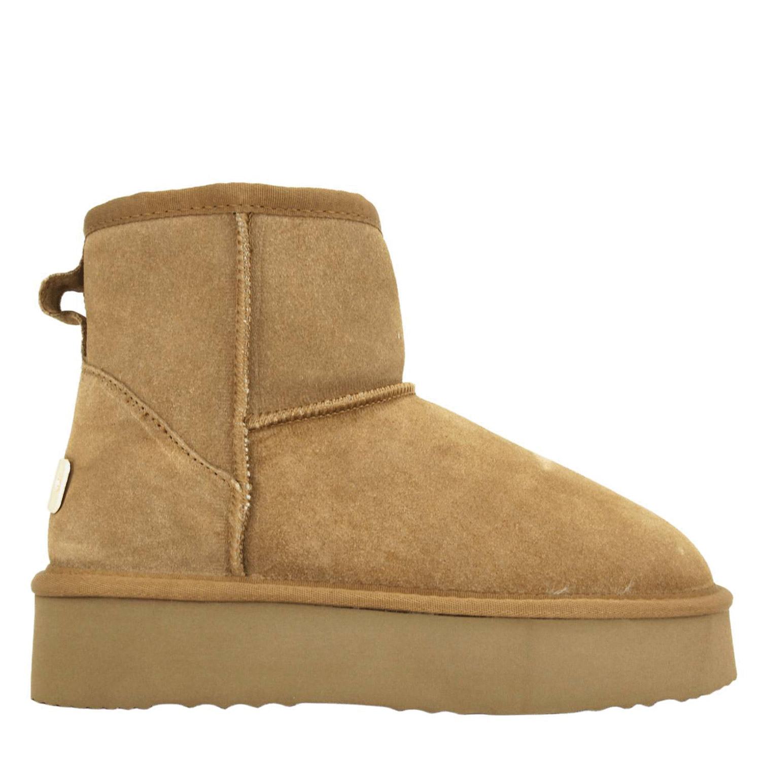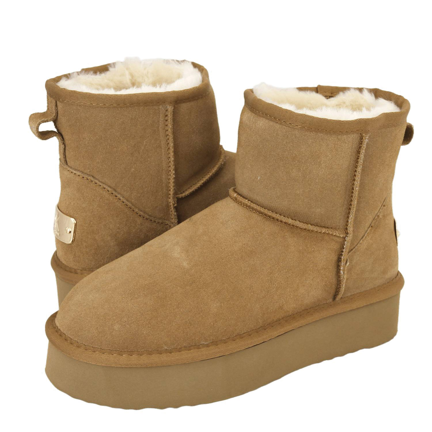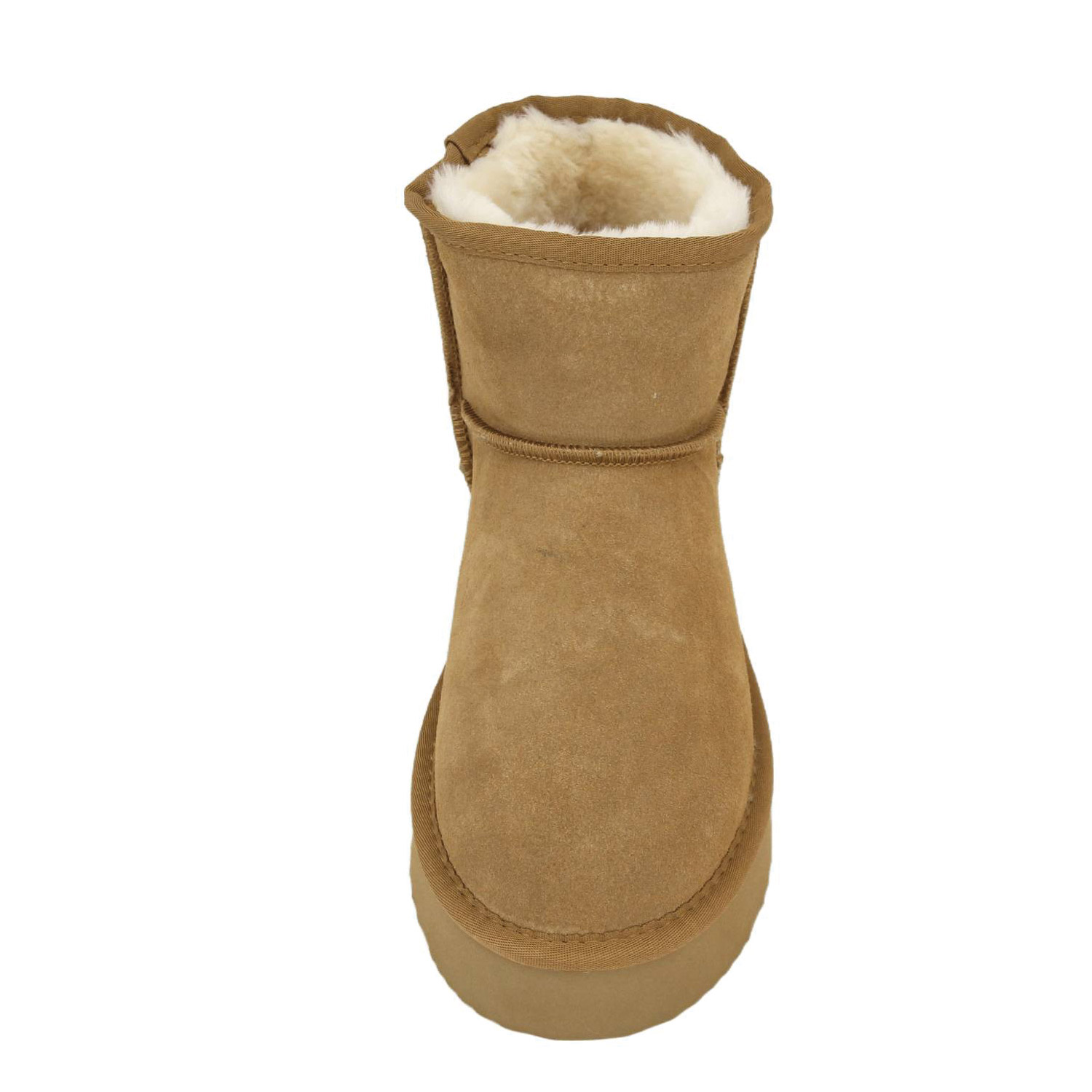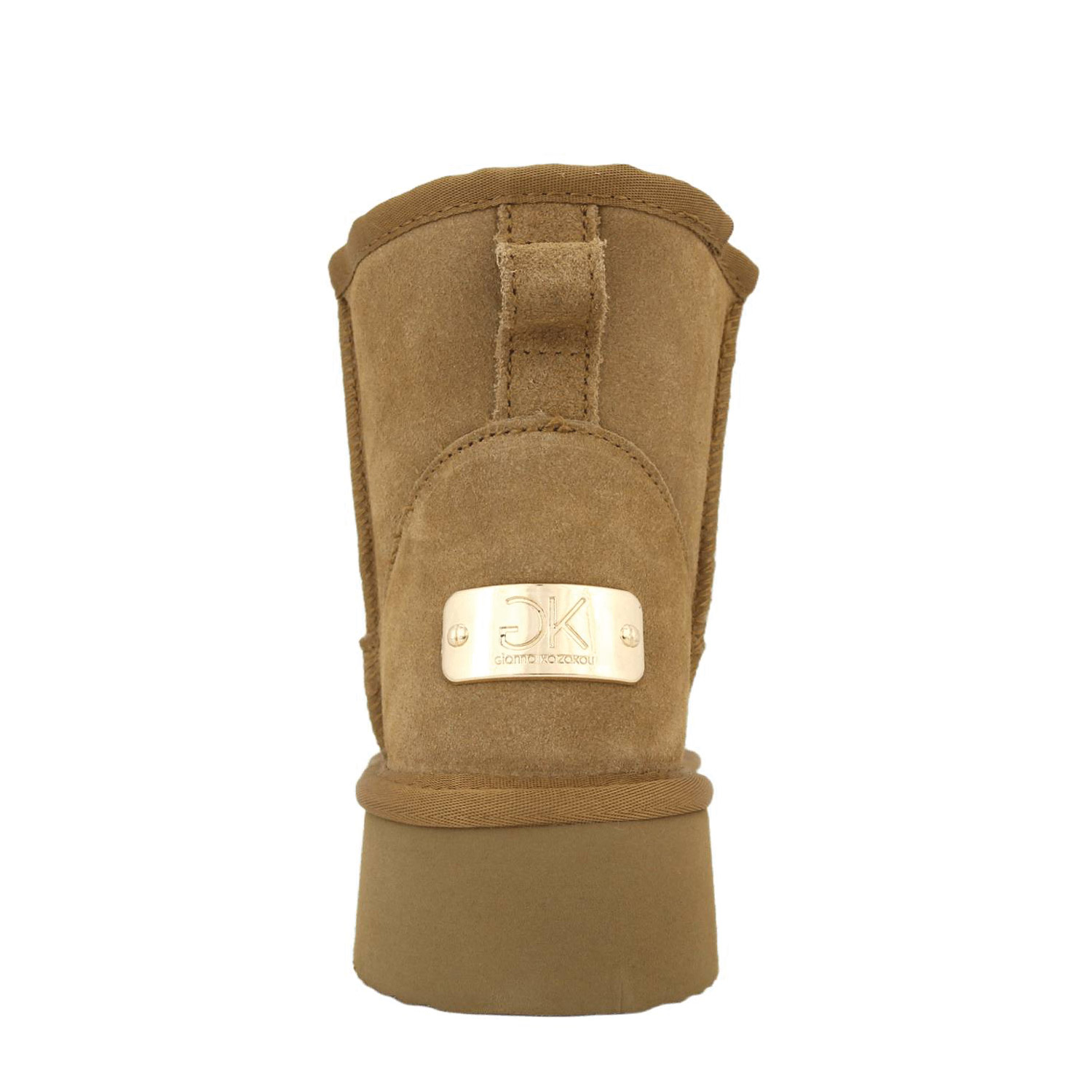 Gianna Kazakou γυναικείο μποτάκι, σε ταμπά χρώμα, κατασκευασμένο από δέρμα καστορι με γούνινη φόδρα. Ύψος τακουνιού 4εκ.