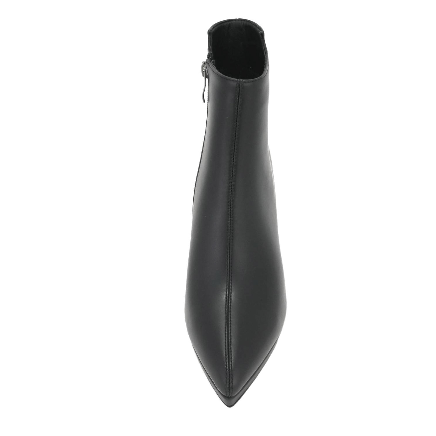 Gianna Kazakou γυναικείο μποτάκι, σε μαύρο χρώμα, κατασκευασμένο από οικολογικό δέρμα, με υφασμάτινη φόδρα. Ύψος τακουνιού 8.5εκ.