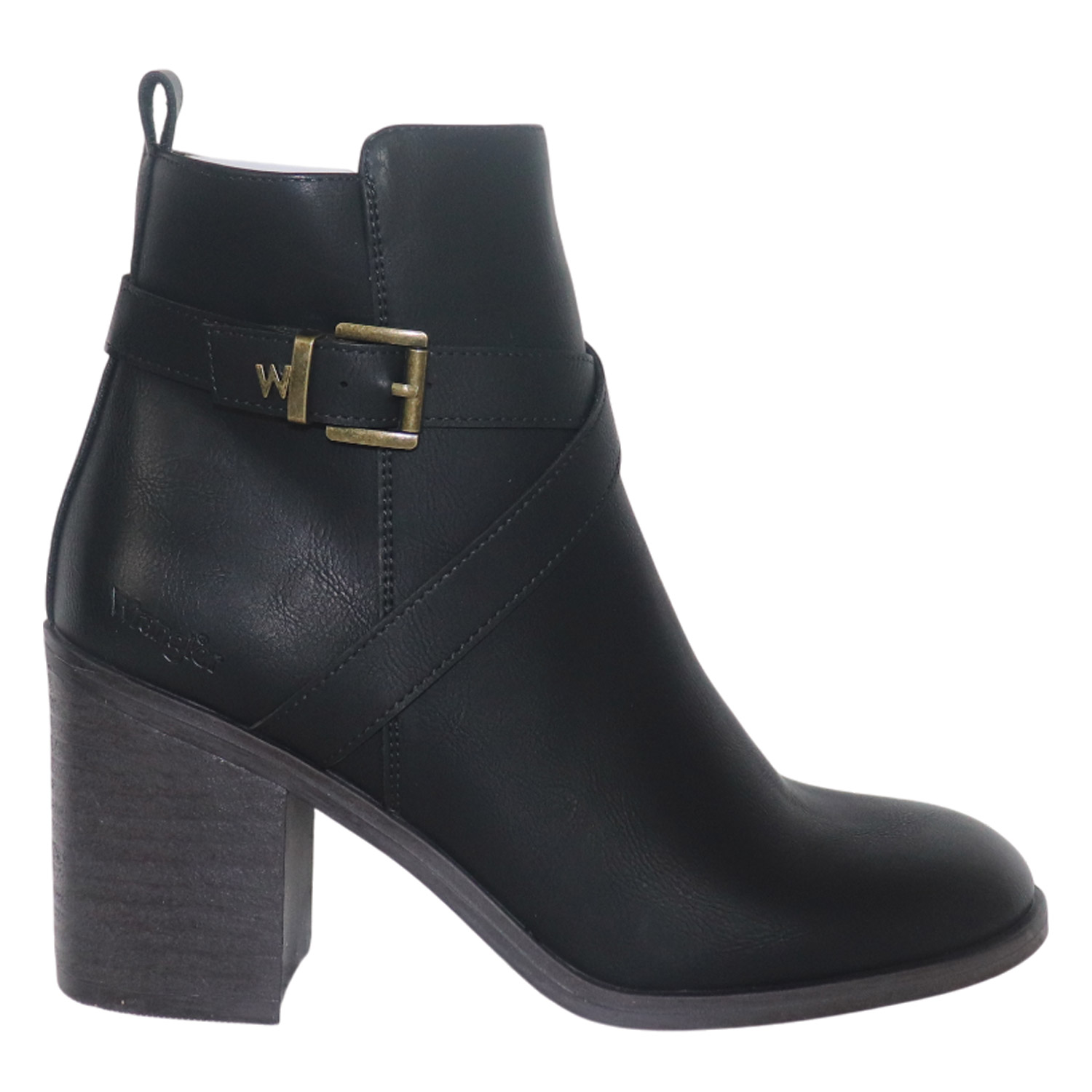 Wrangler γυναικείο μποτάκι, σε μαύρο χρώμα, κατασκευασμένο από οικολογικό δέρμα, με ανατομικό πάτο. Ύψος τακουνιού 8εκ.