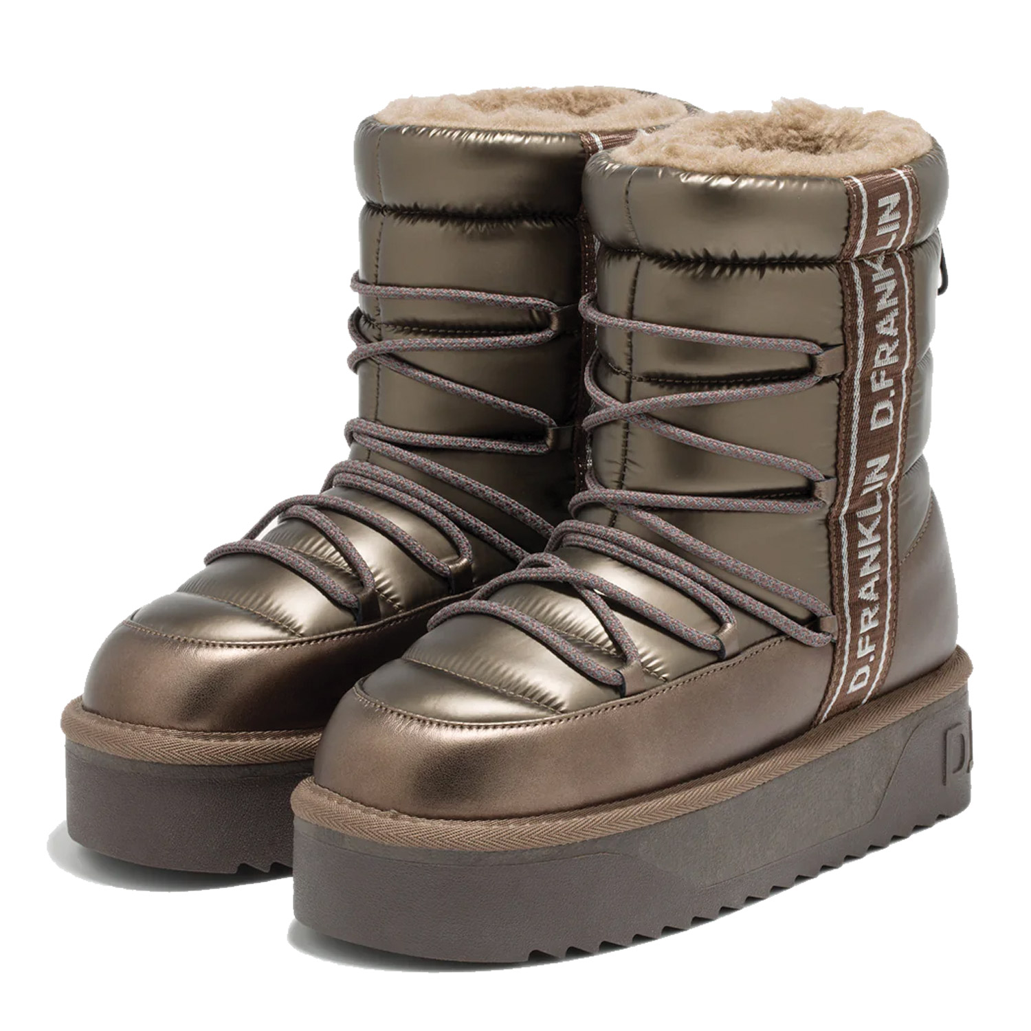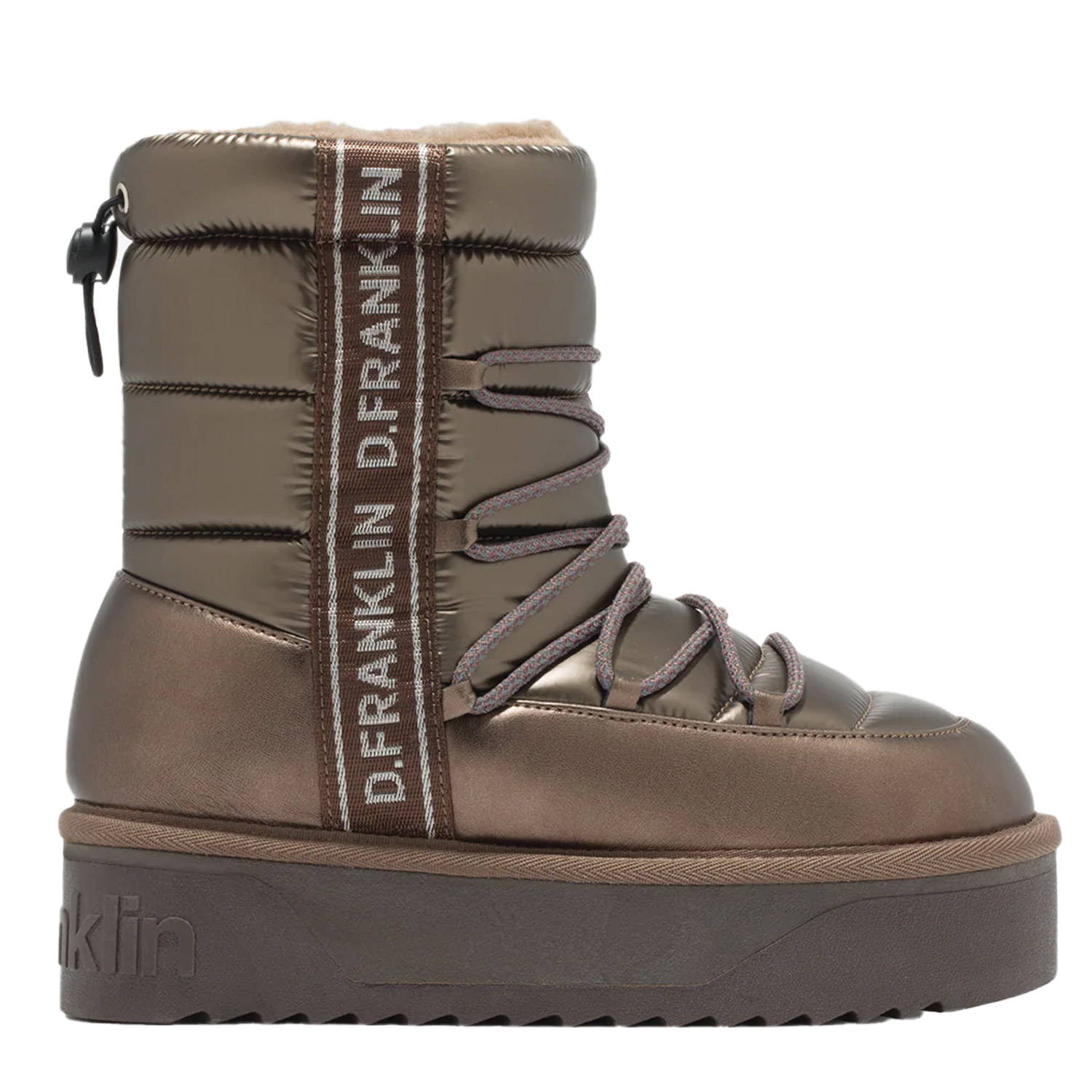 D.Franklin γυναικείο μποτάκι, σε μπρονζέ χρώμα, κατασκευασμένο από ύφασμα υψηλής ποιότητας. Ύψος σόλας 5εκ.