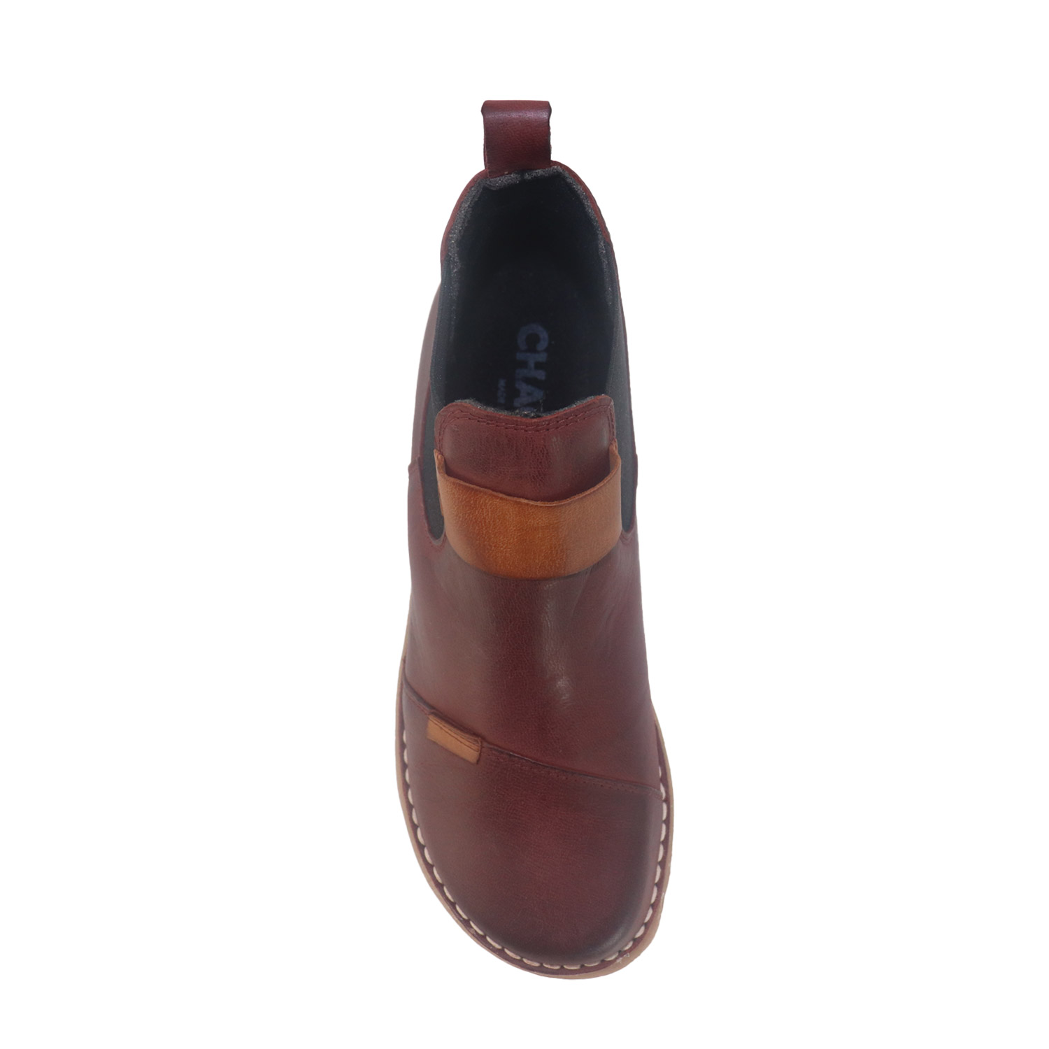 Chacal γυναικείο μποτάκι, σε μπορντώ χρώμα, κατασκευασμένο από φυσικό δέρμα.