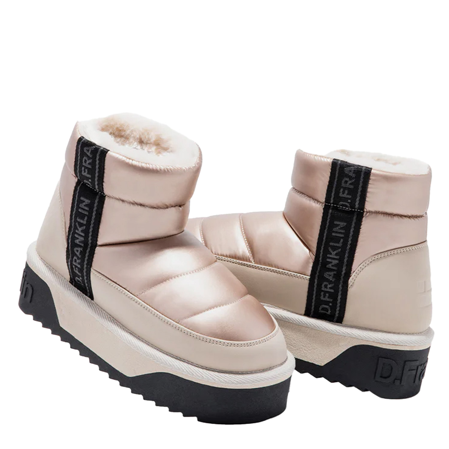 D.Franklin γυναικείο μποτάκι χιονιού, σε μπεζ χρώμα, κατασκευασμένο από ύφασμα.