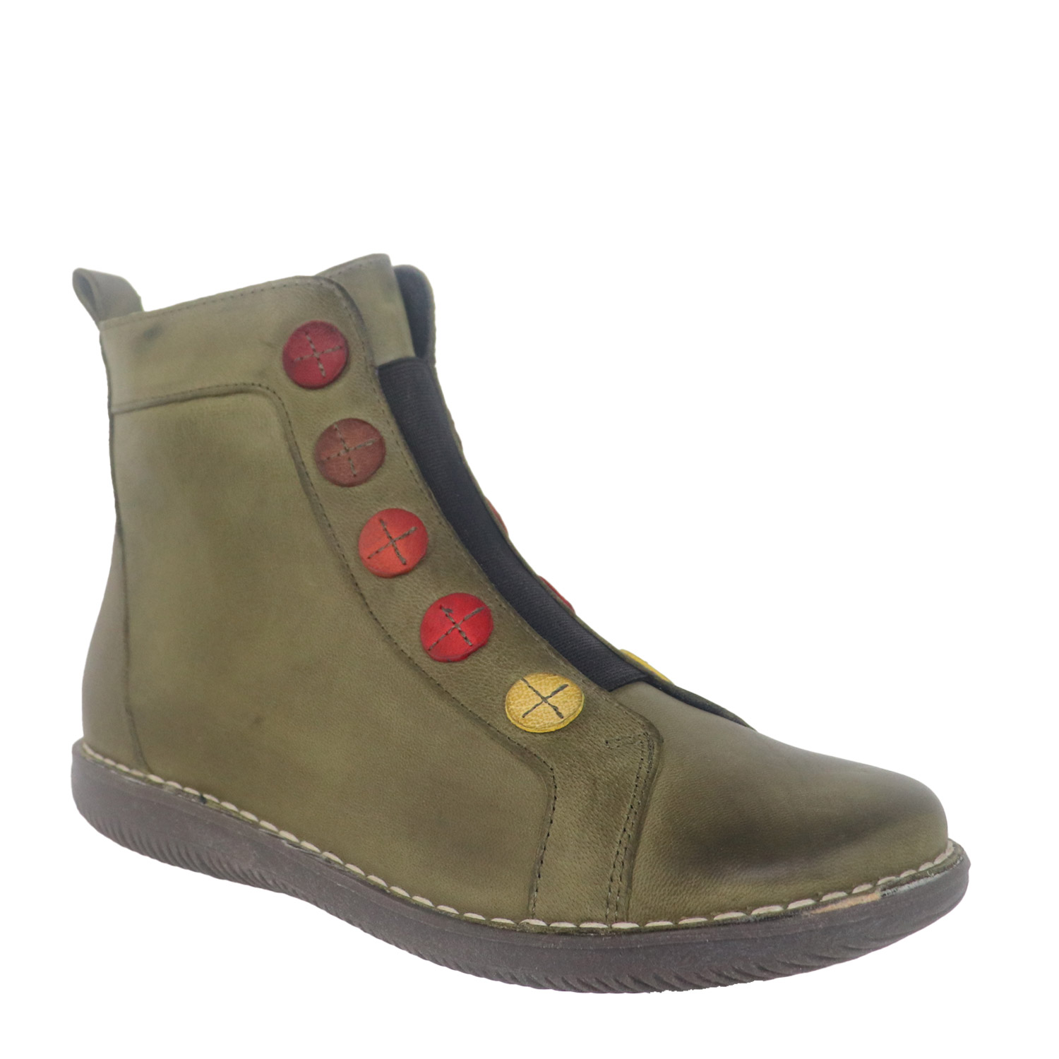 Chacal γυναικείο μποτάκι, σε λαδί χρώμα, κατασκευασμένο από φυσικό δέρμα.
