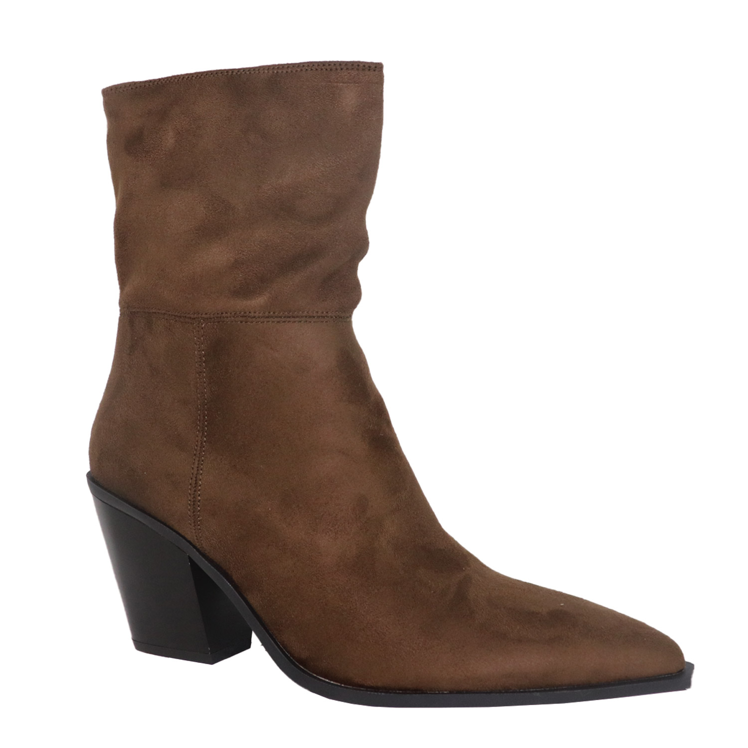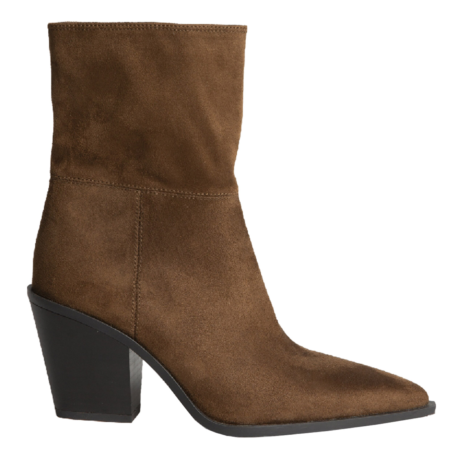 Koniarisshoes γυναικείο μποτάκι, σε καφέ χρώμα, κατασκευασμένο από οικολογικό δέρμα. Ύψος τακουνιού 8.5εκ.