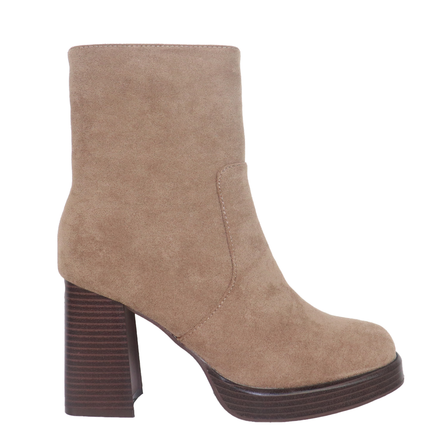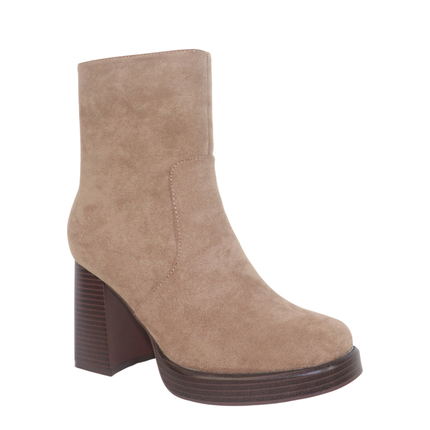 Migato γυναικείο μποτάκι, σε μπεζ χρώμα, κατασκευασμένο από ύφασμα. ύψος τακουνιού 9εκ.