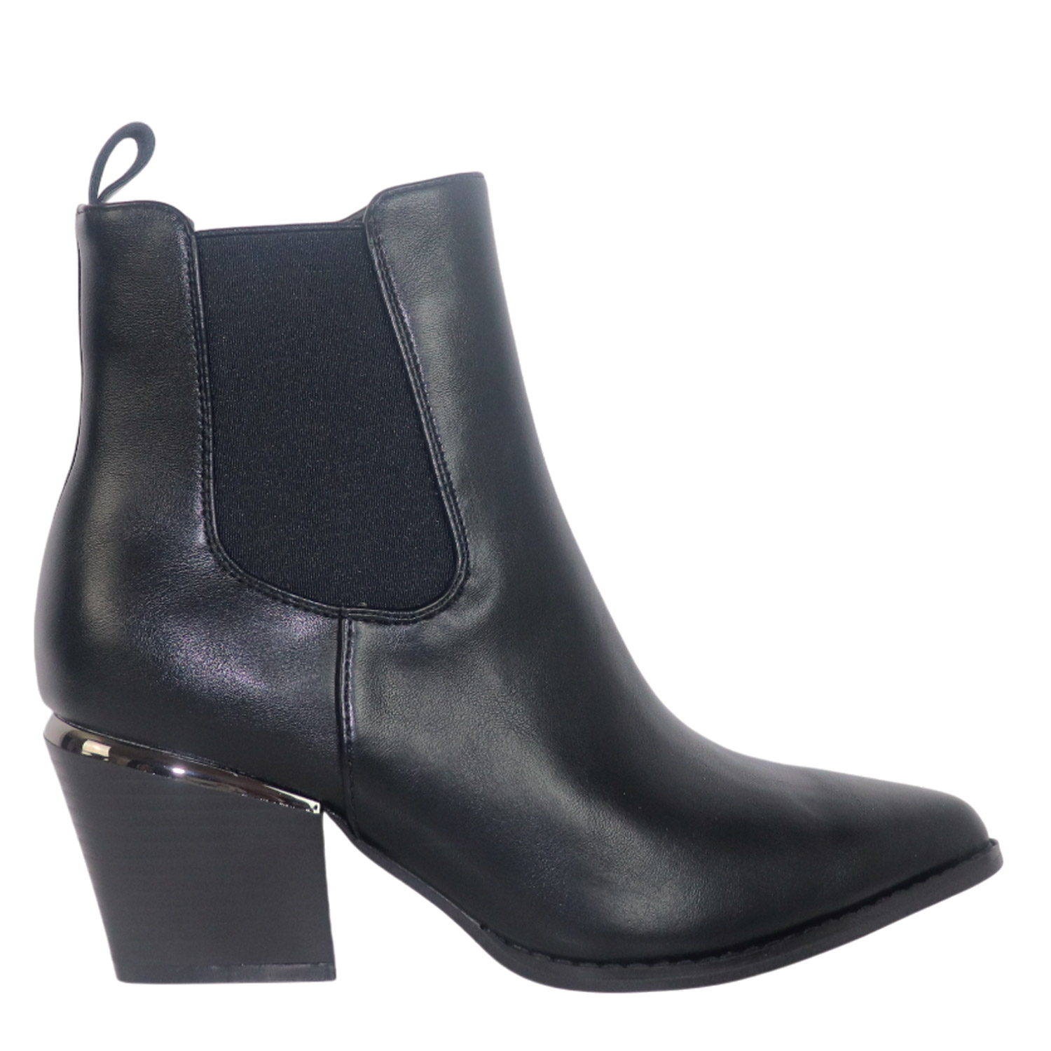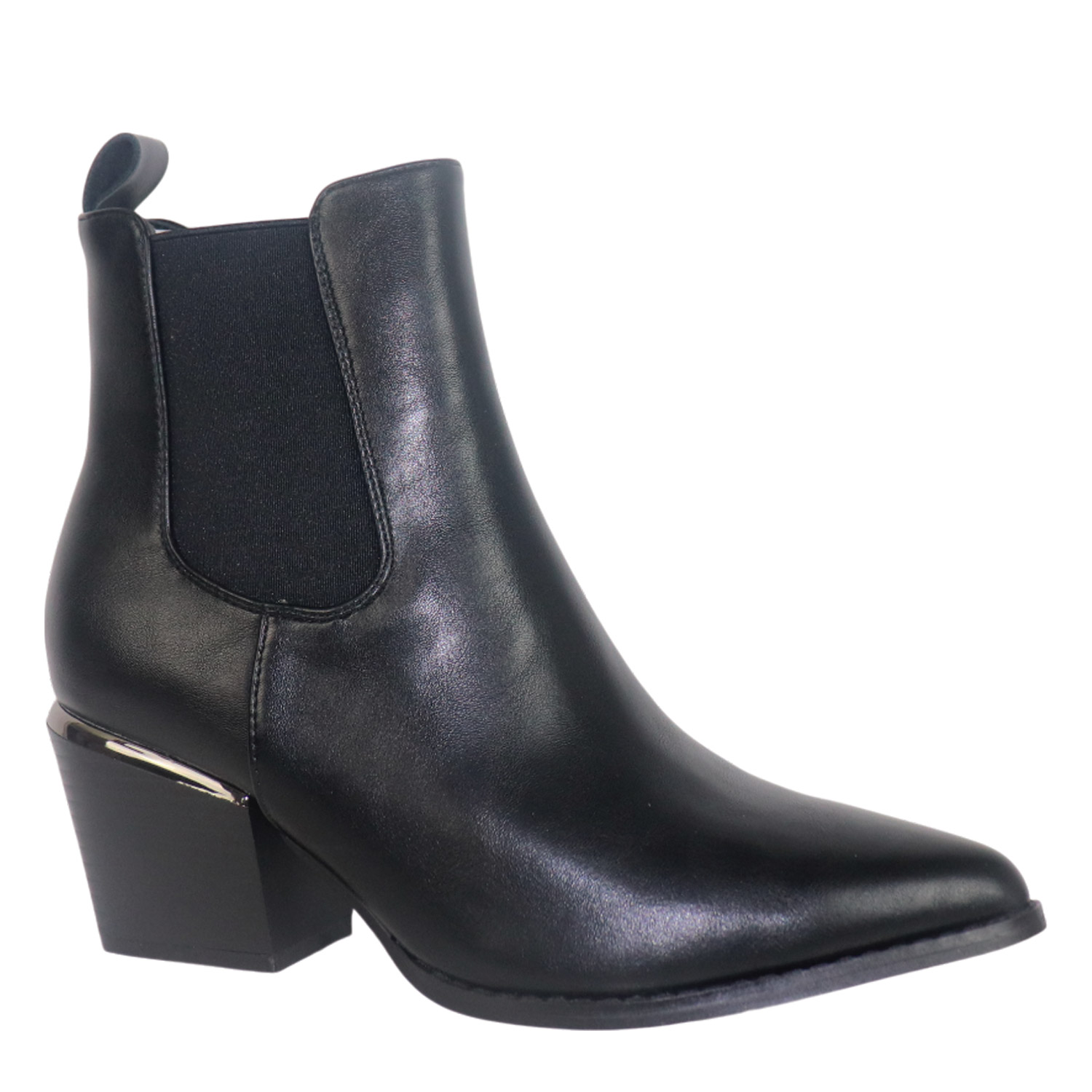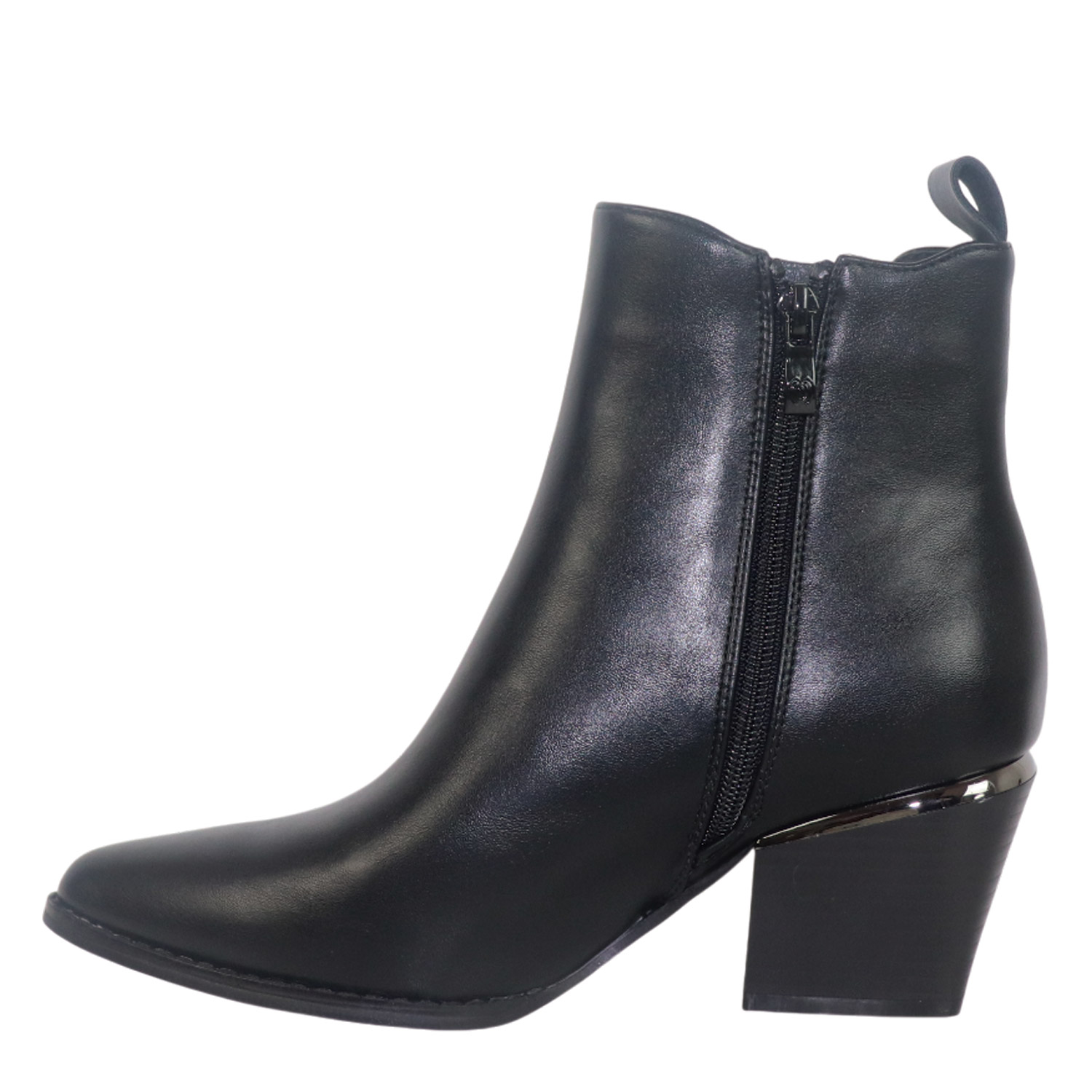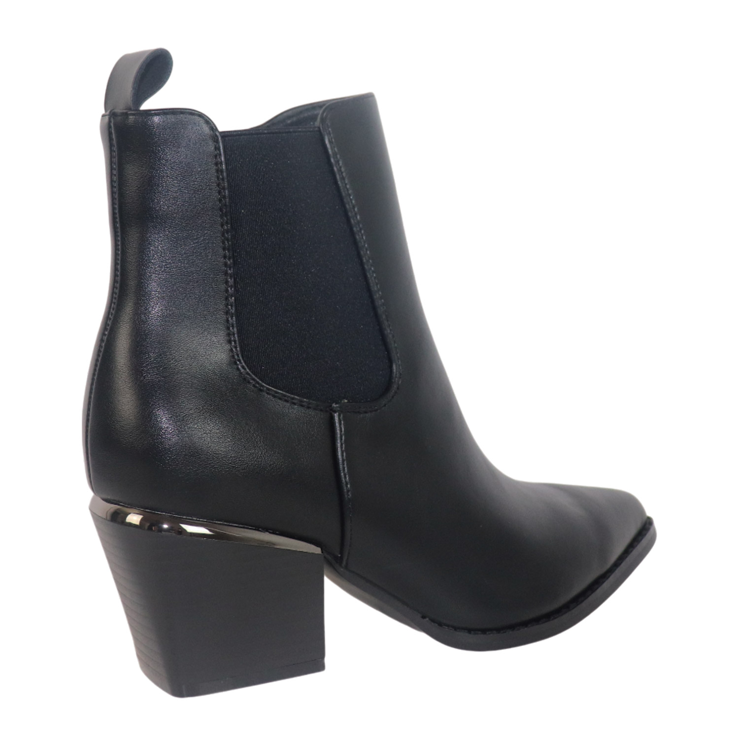 Migato γυναικείο μποτάκι, σε μαύρο χρώμα, κατασκευασμένο από οικολογικό δέρμα. Ύψος τακουνιού 6εκ.