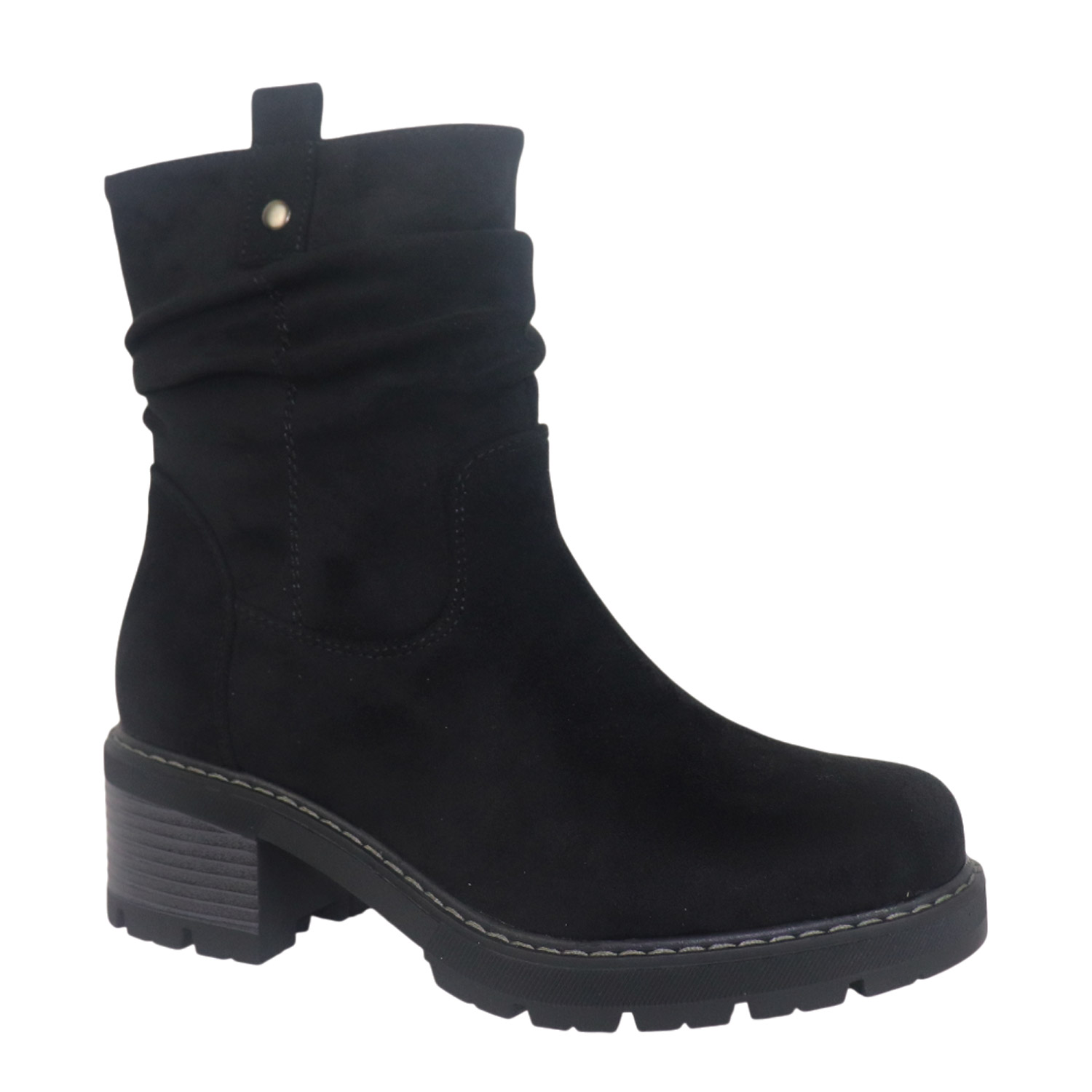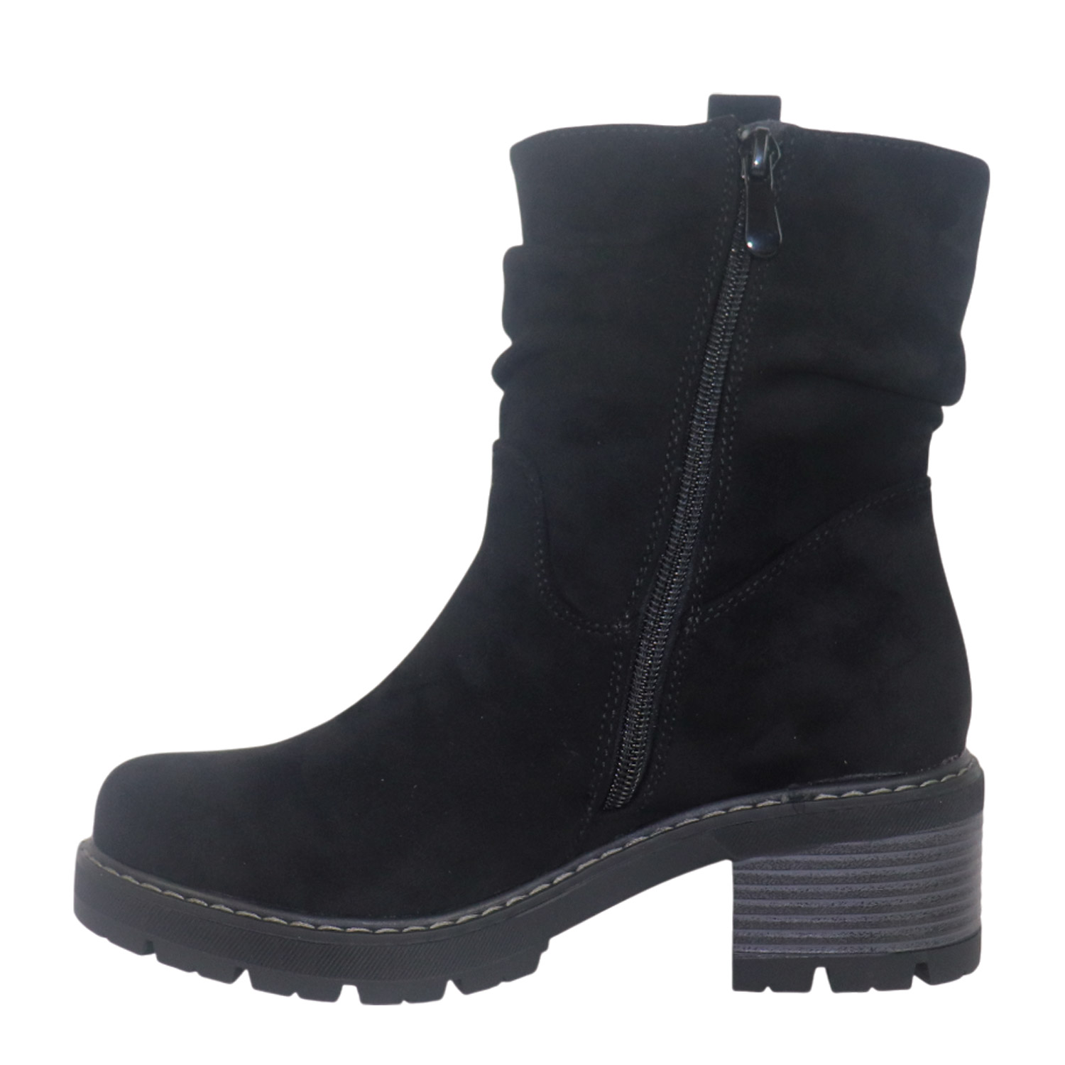 Migato γυναικείο μποτάκι, σε μαύρο χρώμα, κατασκευασμένο από ύφασμα. Ύψος τακουνιού 5εκ.