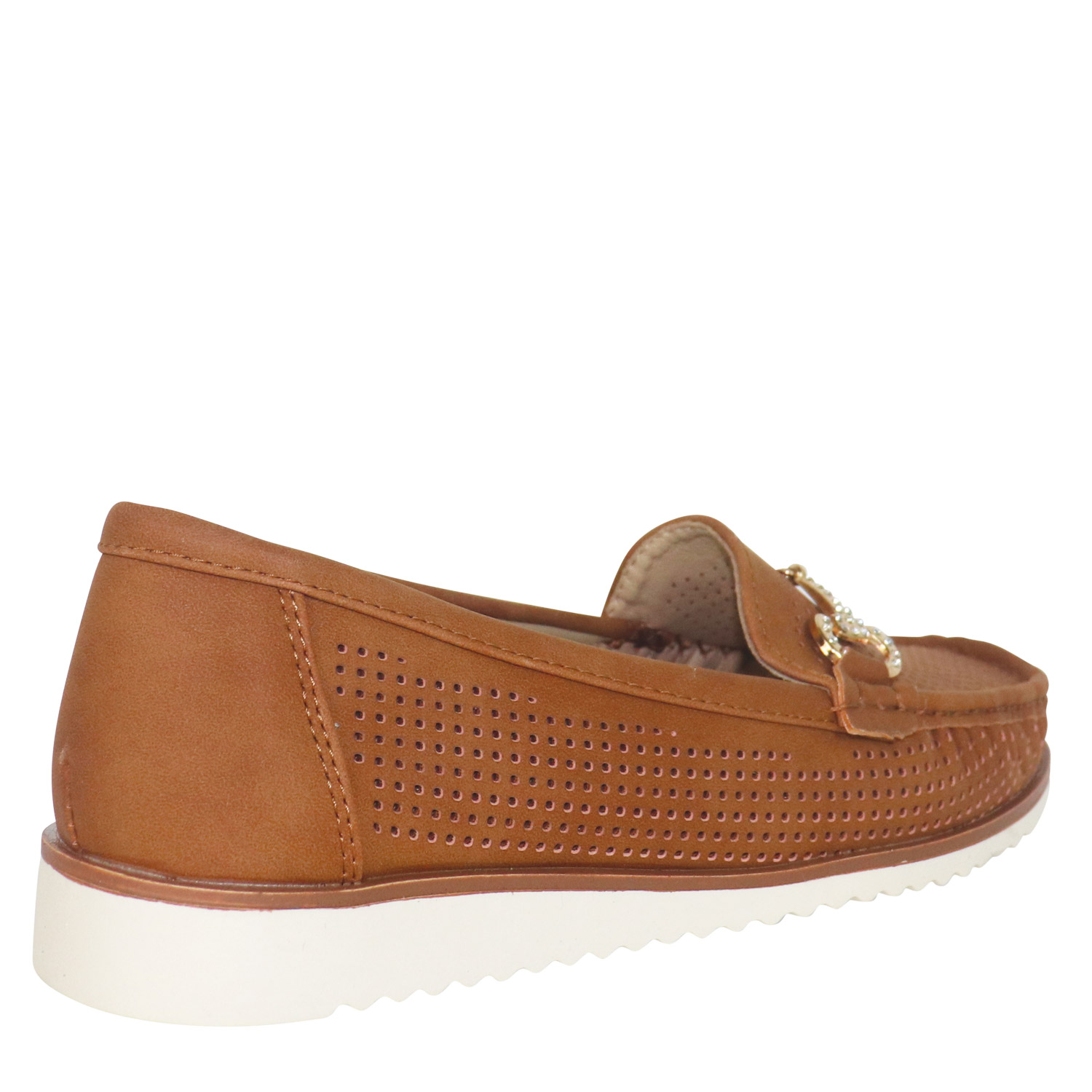 Migato γυναικείο μοκασίνι, σε ταμπά χρώμα, κατασκευασμένο από οικολογικό δέρμα. Ύψος τακουνιού 2εκ.