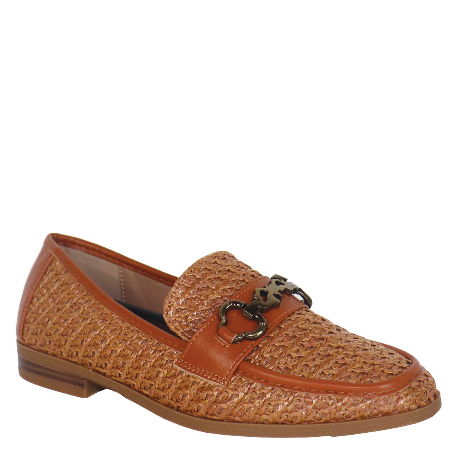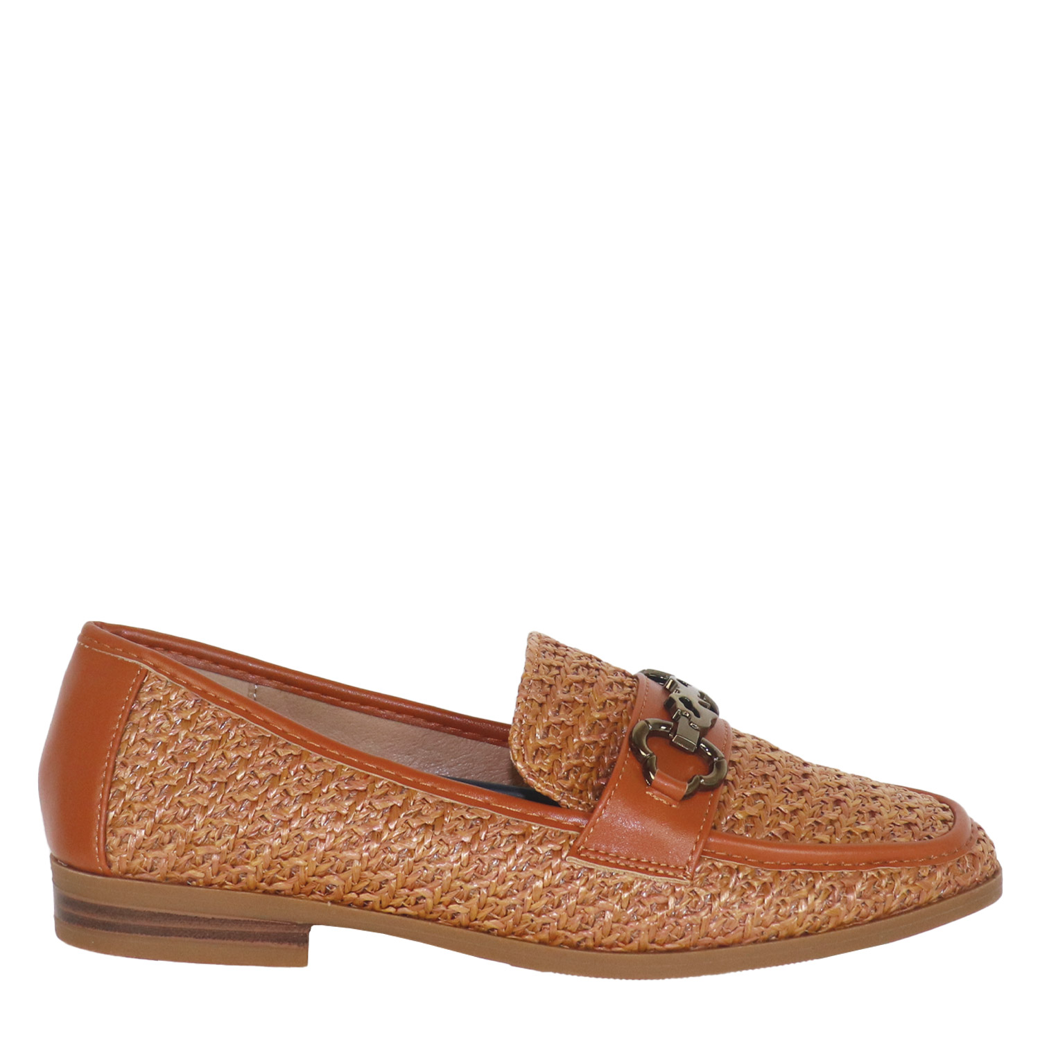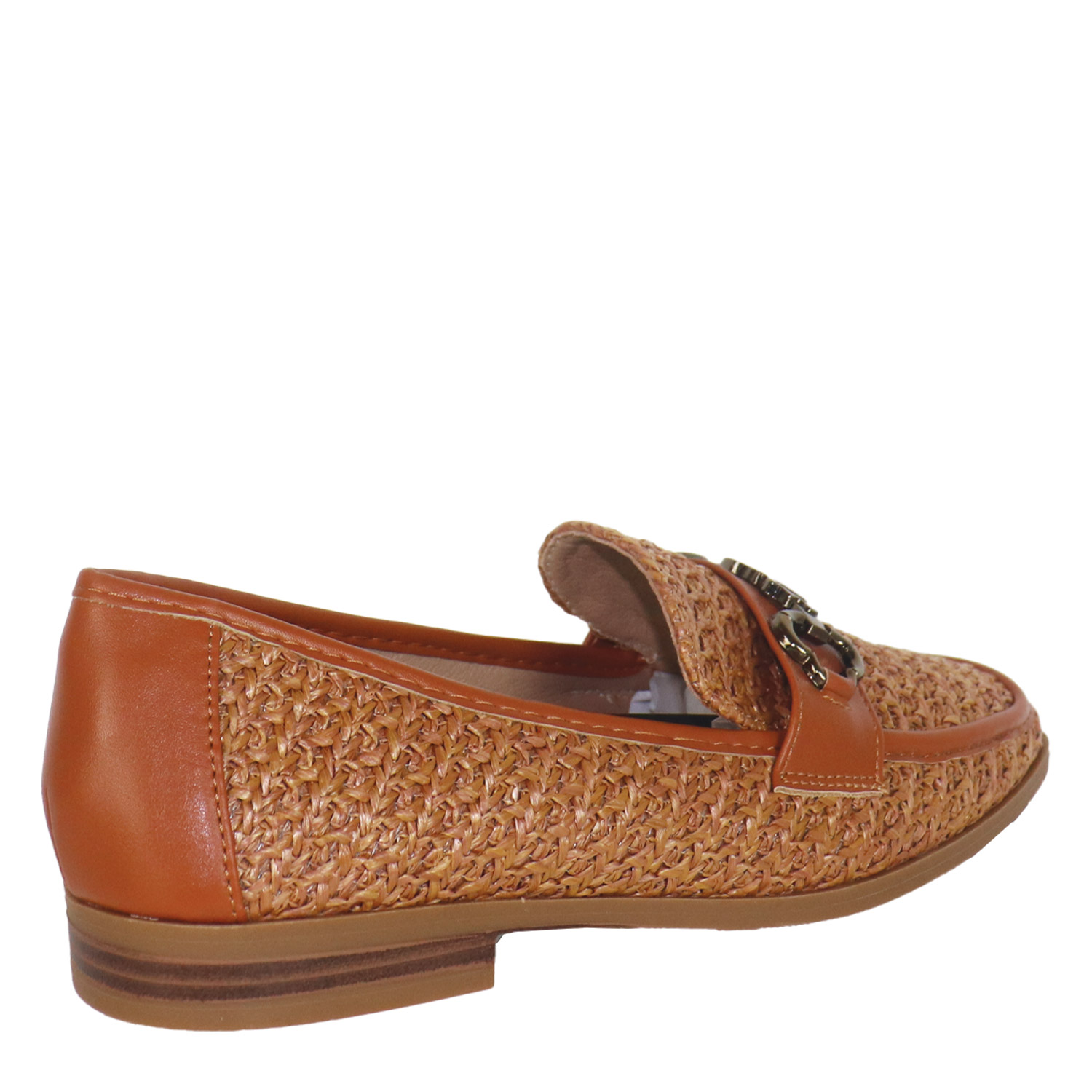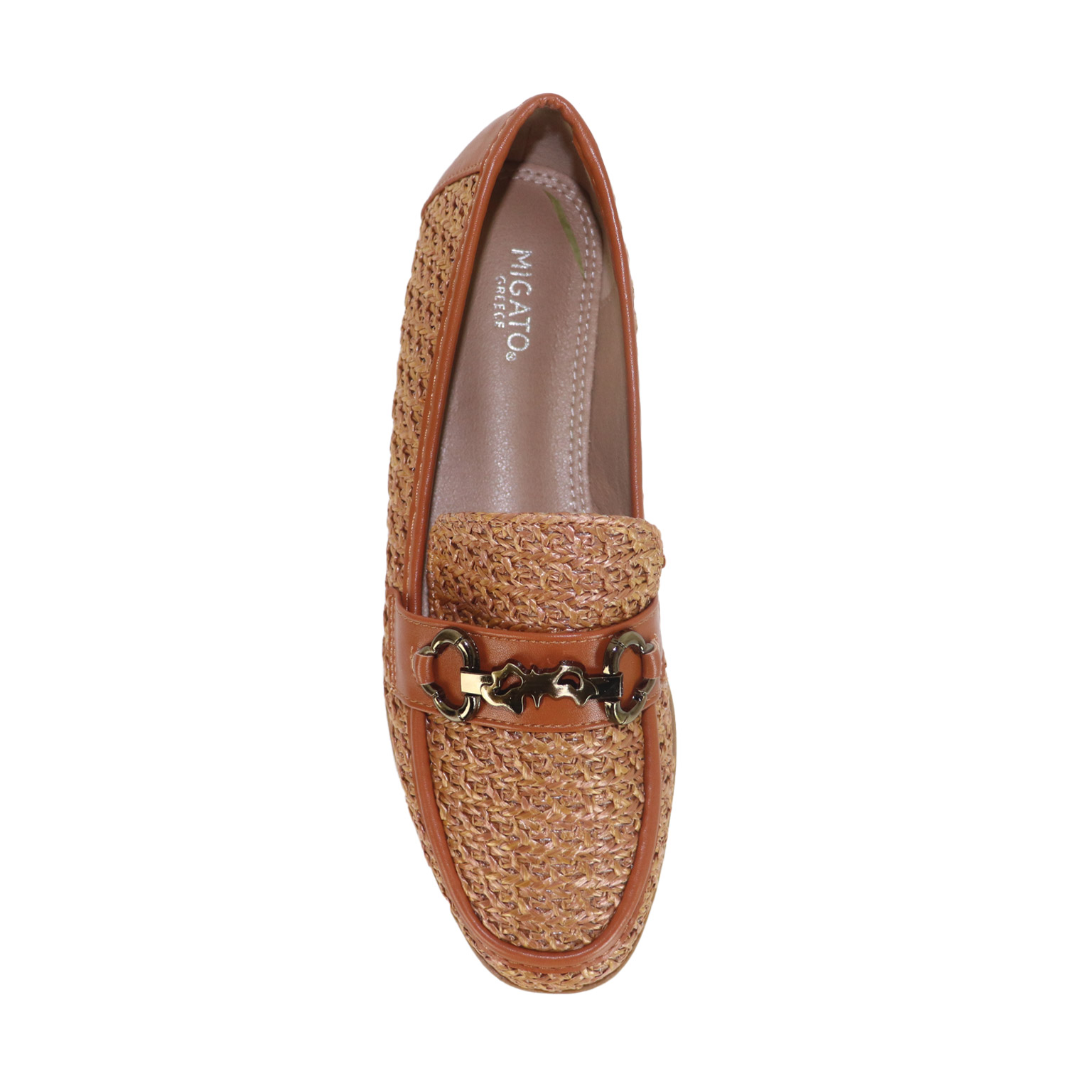 Migato γυναικείο μοκασίνι σε ταμπά χρώμα κατασκευασμένο από ψάθα. Ύψος τακουνιού 2εκ.