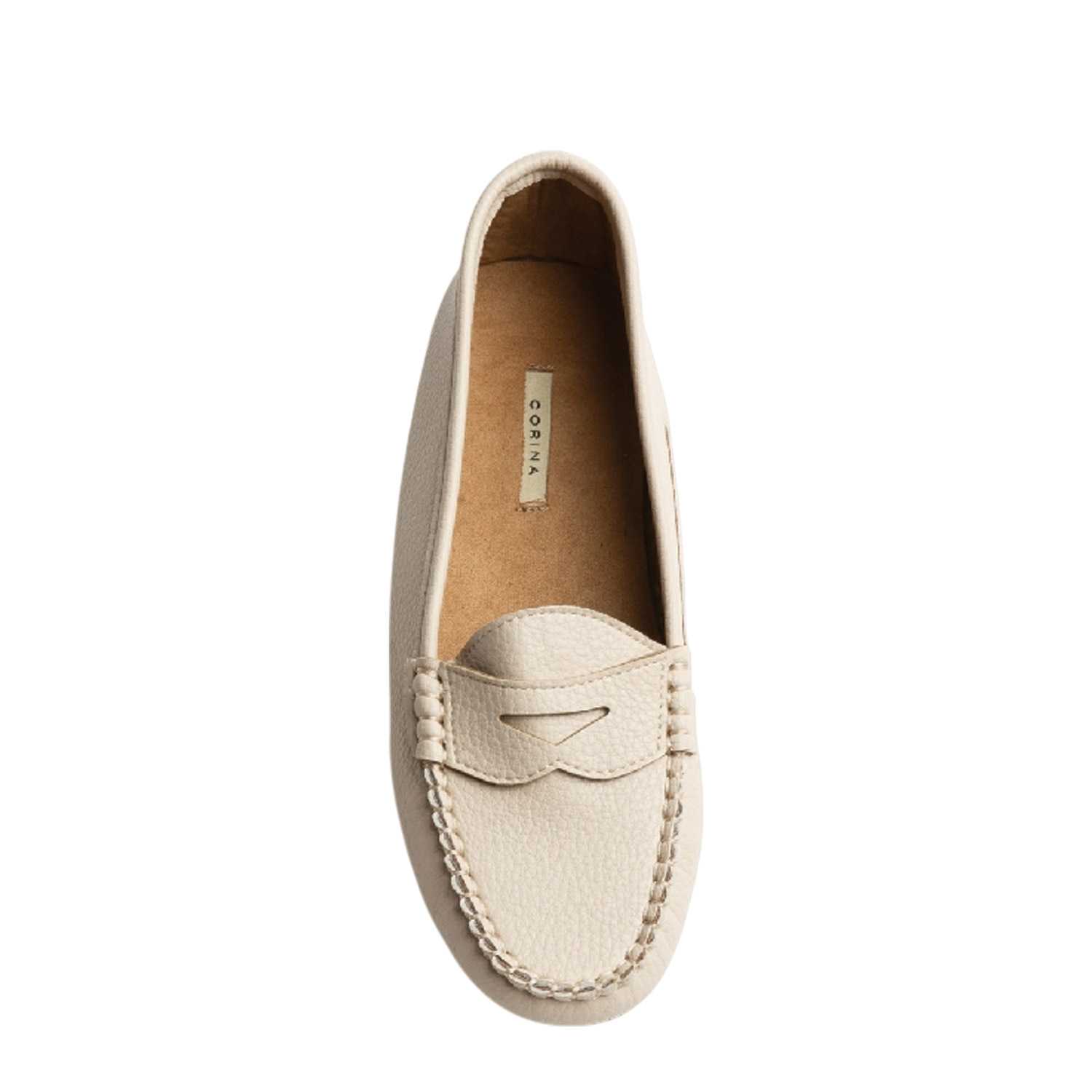 Corina γυναικείο μοκασίνι, σε μπεζ χρώμα, κατασκευασμένο από οικολογικό δέρμα. Ύψος τακουνιού 1,5εκ.