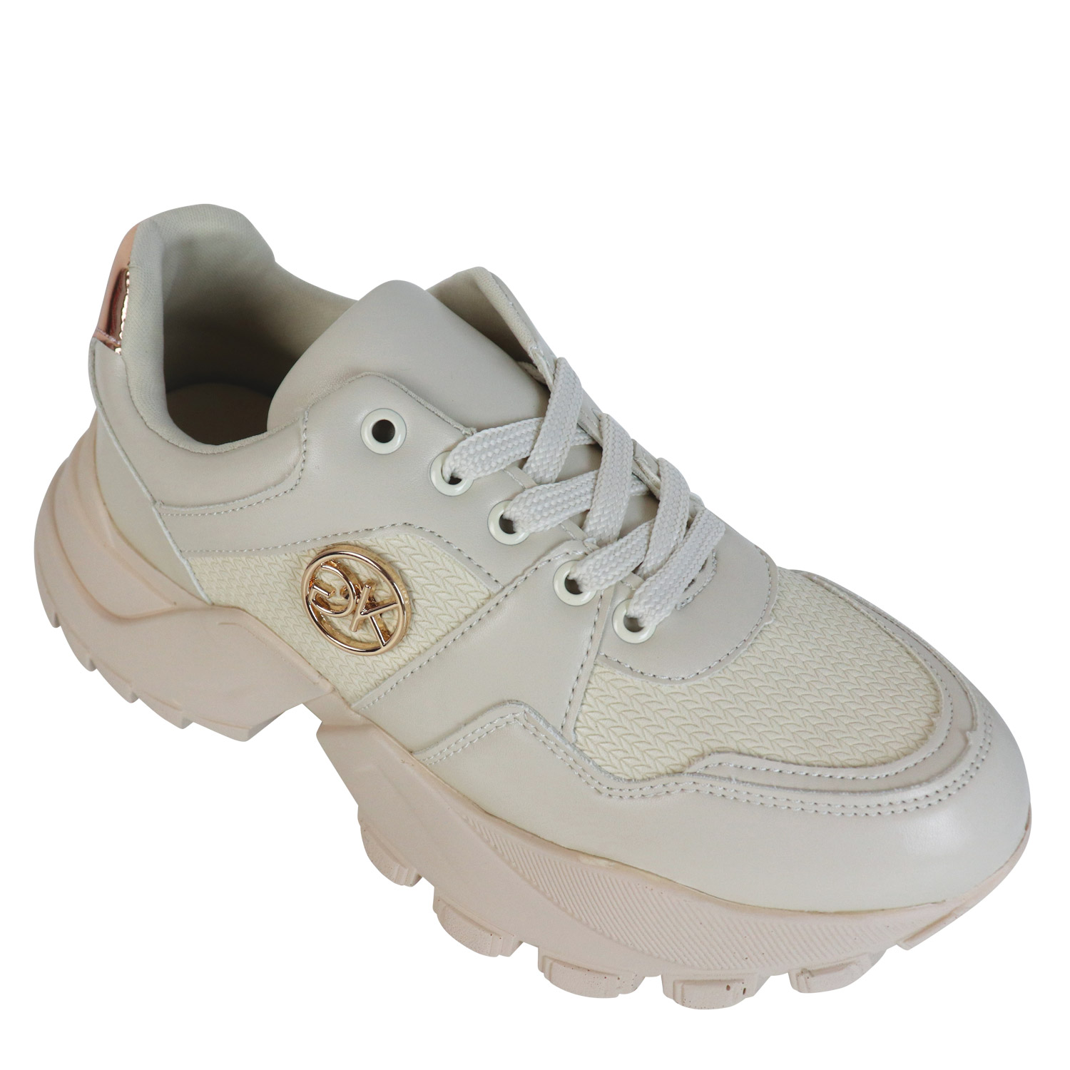 Gianna Kazakou γυναικείο sneaker, σε μπεζ χρώμα, κατασκευασμένο από οικολογικό δέρμα με ανατομικό πατάκι. Ύψος σόλας 5εκ.