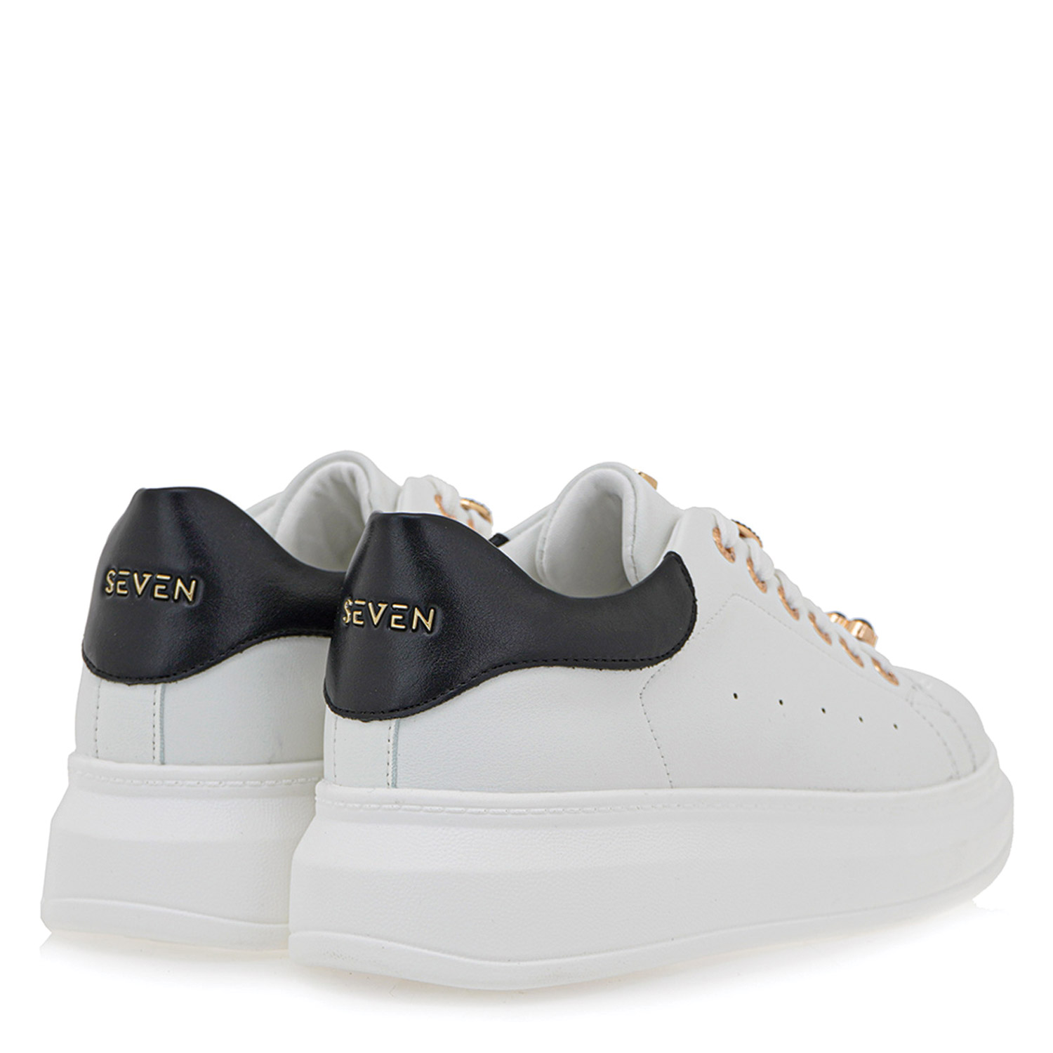 Seven γυναικείο sneaker, σε λευκό χρώμα, κατασκευασμένο από οικολογικό δέρμα. Ύψος σόλας 4εκ.