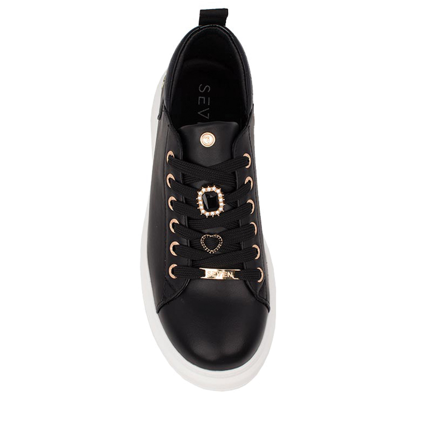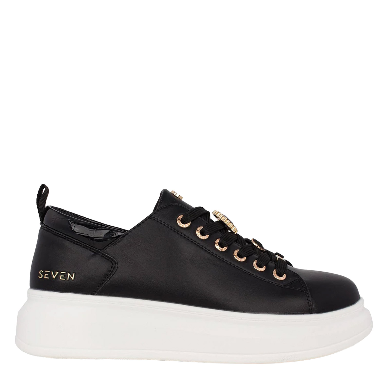 Seven γυναικείο sneaker, σε μαύρο χρώμα, κατασκευασμένο από οικολογικό δέρμα. Ύψος σόλας 4.5εκ.