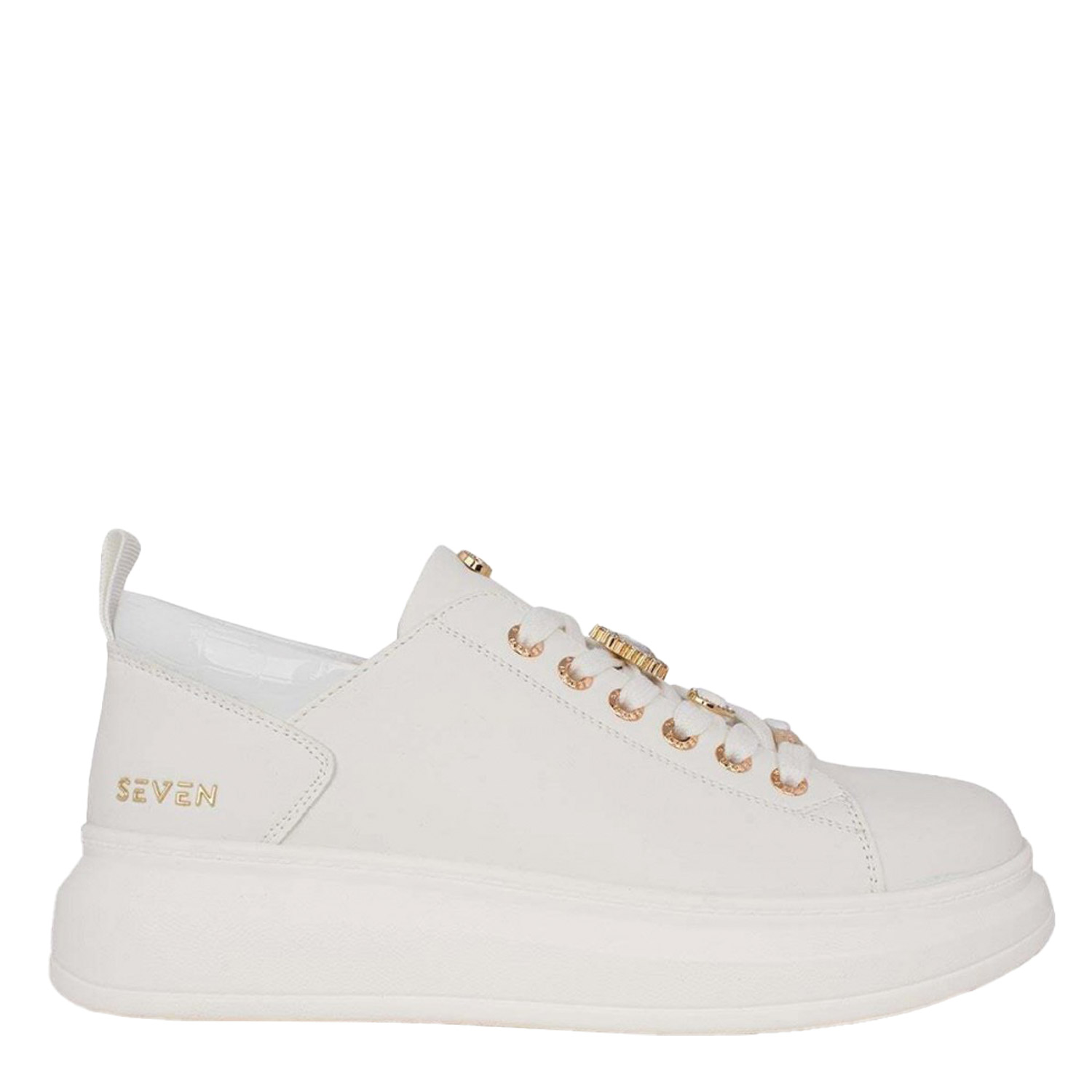 Seven γυναικείο sneaker, σε λευκό χρώμα, κατασκευασμένο από οικολογικό δέρμα. Ύψος σόλας 4.5εκ.