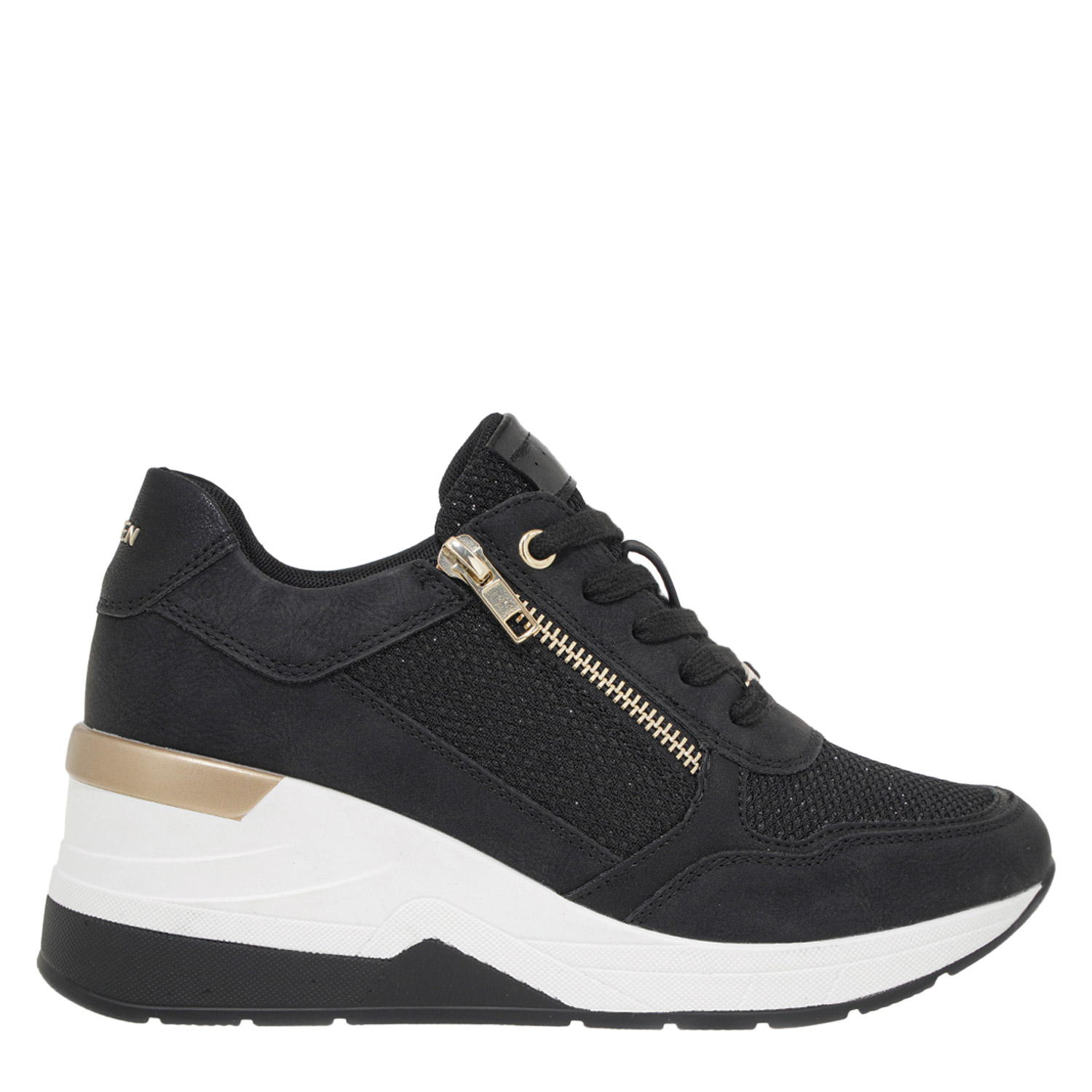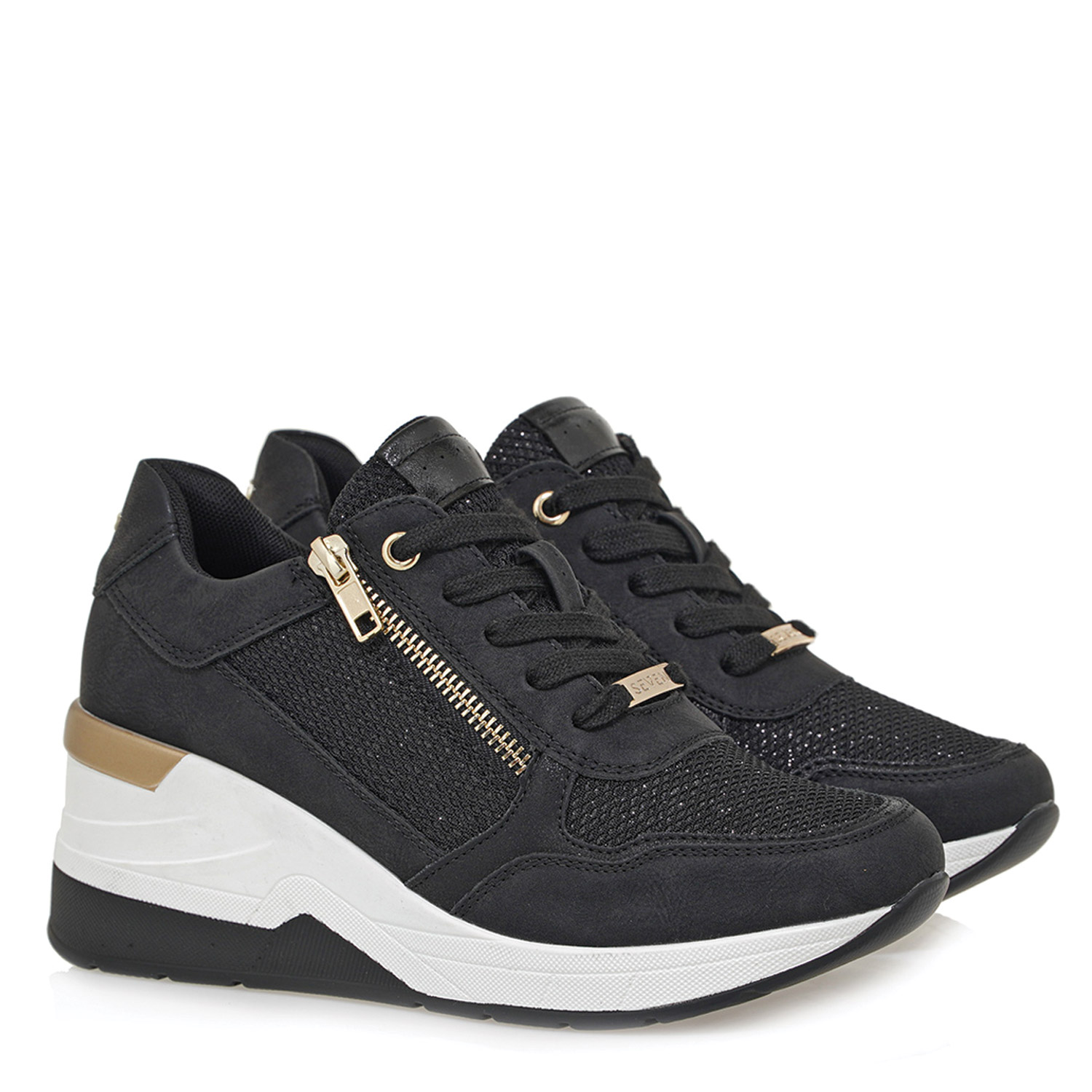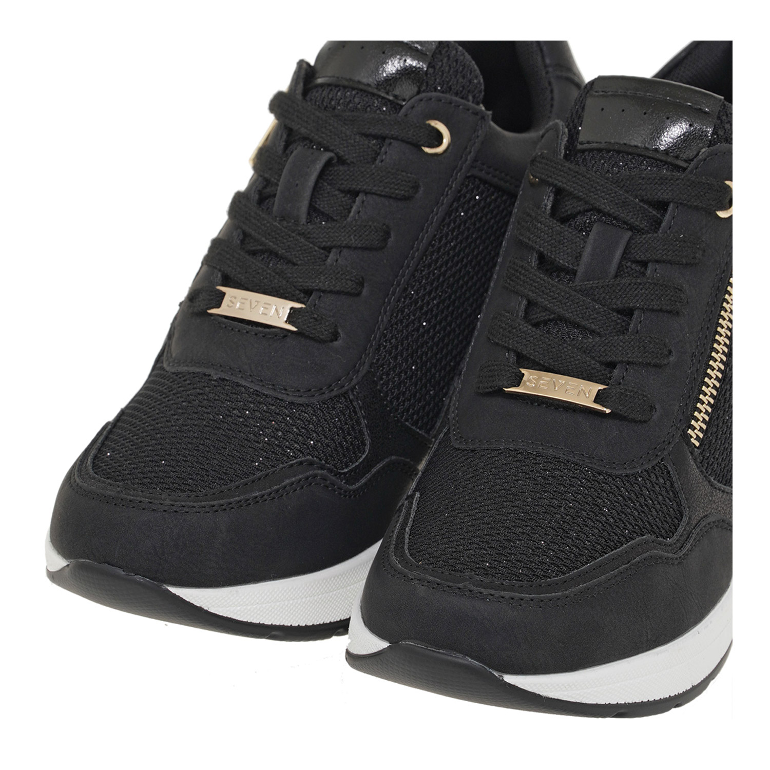 Seven γυναικείο sneaker, σε μαύρο χρώμα, κατασκευασμένο από οικολογικό δέρμα. Ύψος σόλας 6.5εκ.