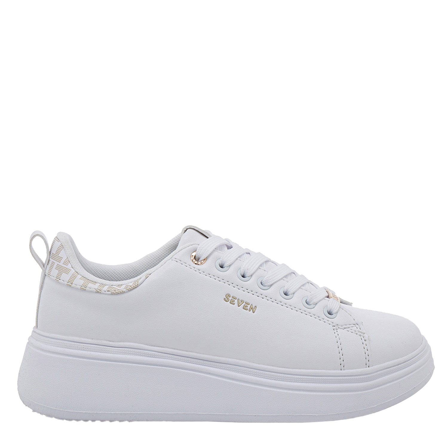 Seven γυναικείο sneaker, σε λευκό χρώμα, κατασκευασμένο από οικολογικό δέρμα. Ύψος σόλας 4εκ.