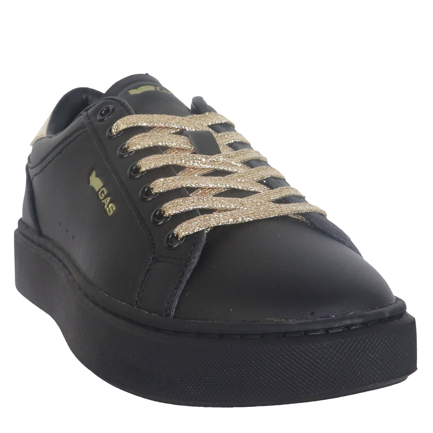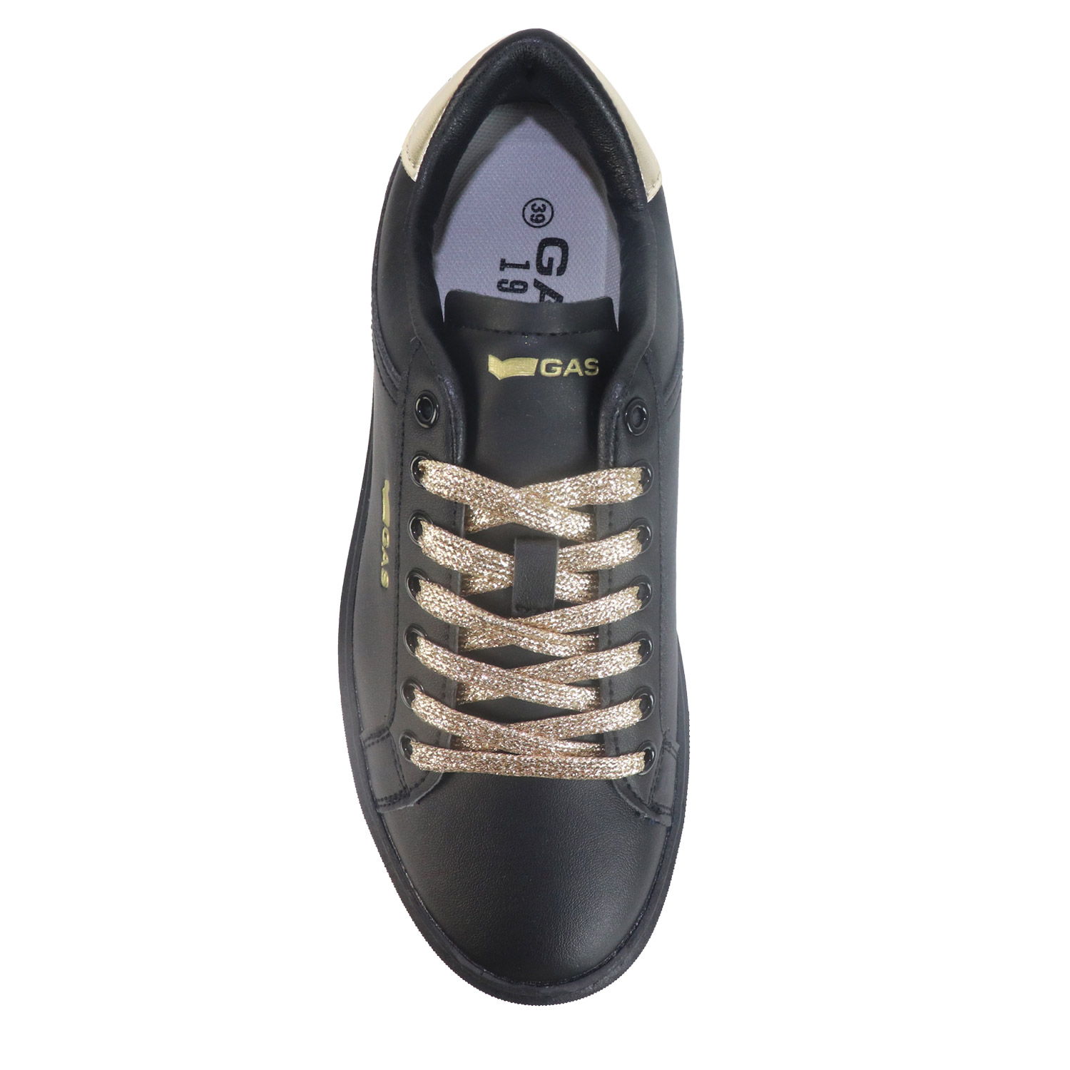 Gas γυναικείο sneaker, σε μαύρο χρώμα, κατασκευασμένο από οικολογικό δέρμα. Ύψος σόλας 3εκ.