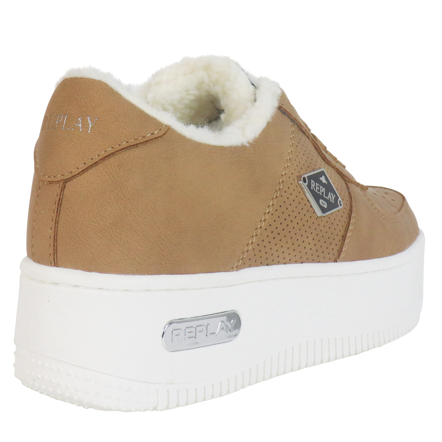 Replay γυναικείο sneaker, σε ταμπά χρώμα, κατασκευασμένο από οικολογικό δέρμα. Ύψος σόλας 5εκ.