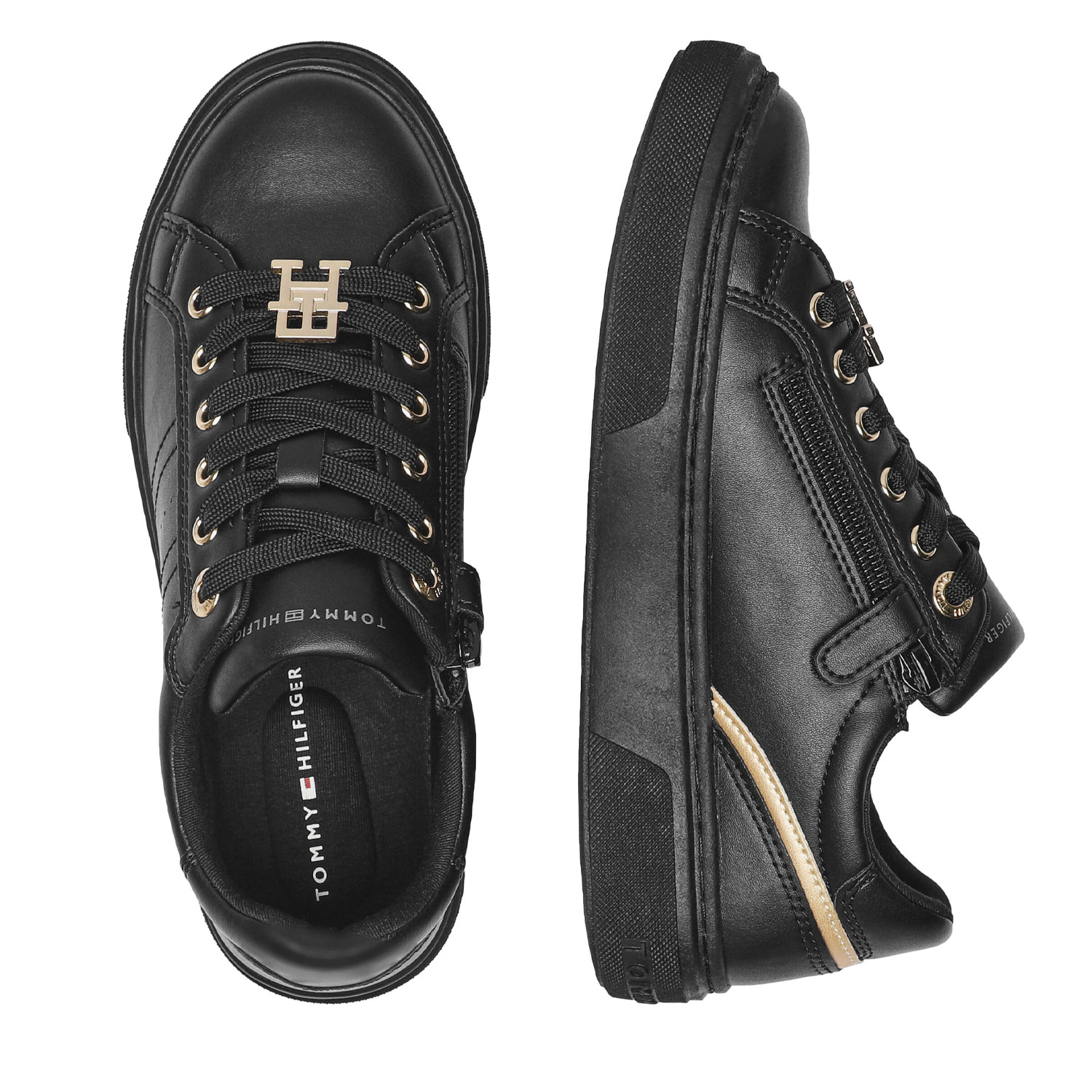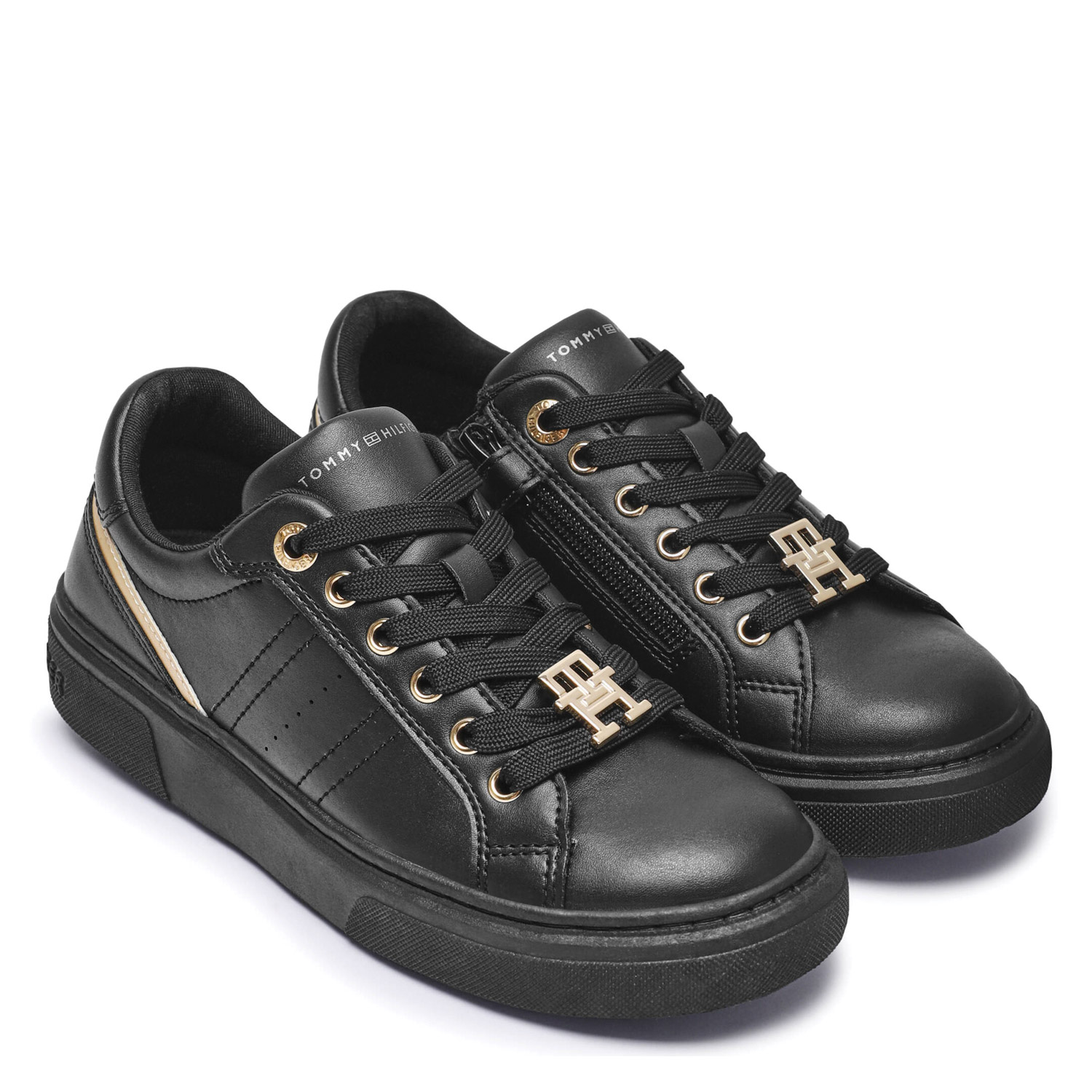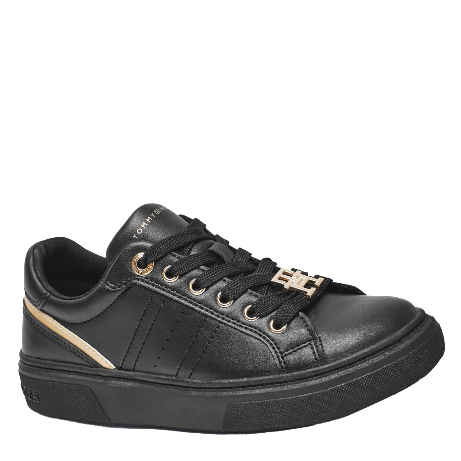 Tommy Hilfiger γυναικείο sneaker, σε μαύρο πλατίνα χρώμα, κατασκευασμένο από οικολογικό δέρμα. Ύψος σόλας 3εκ.