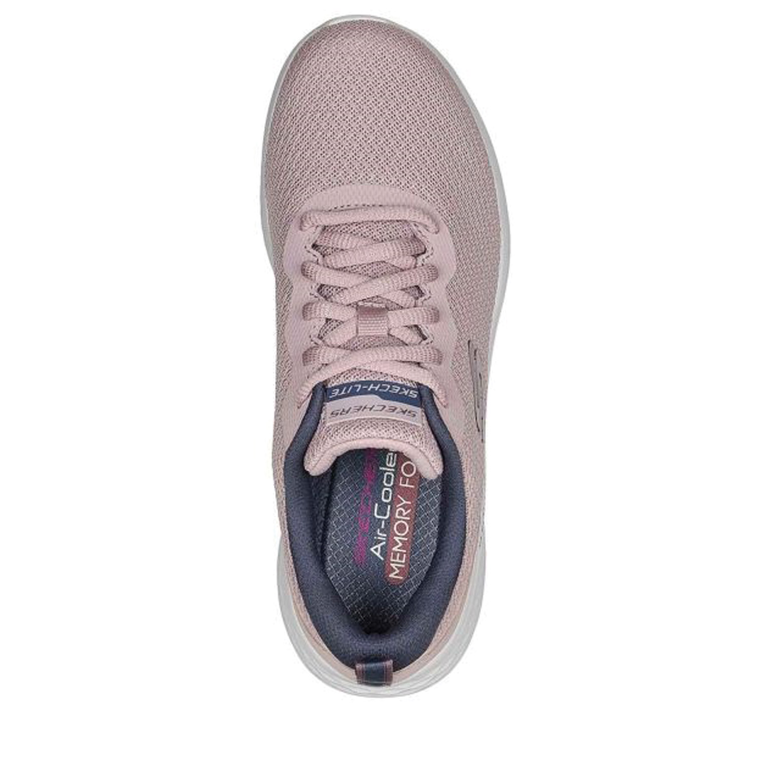 Skechers γυναικείο sneaker, σε ροζ χρώμα, κατασκευασμένο από ύφασμα, με ανατομικό πάτο. Ύψος σόλας 3εκ.