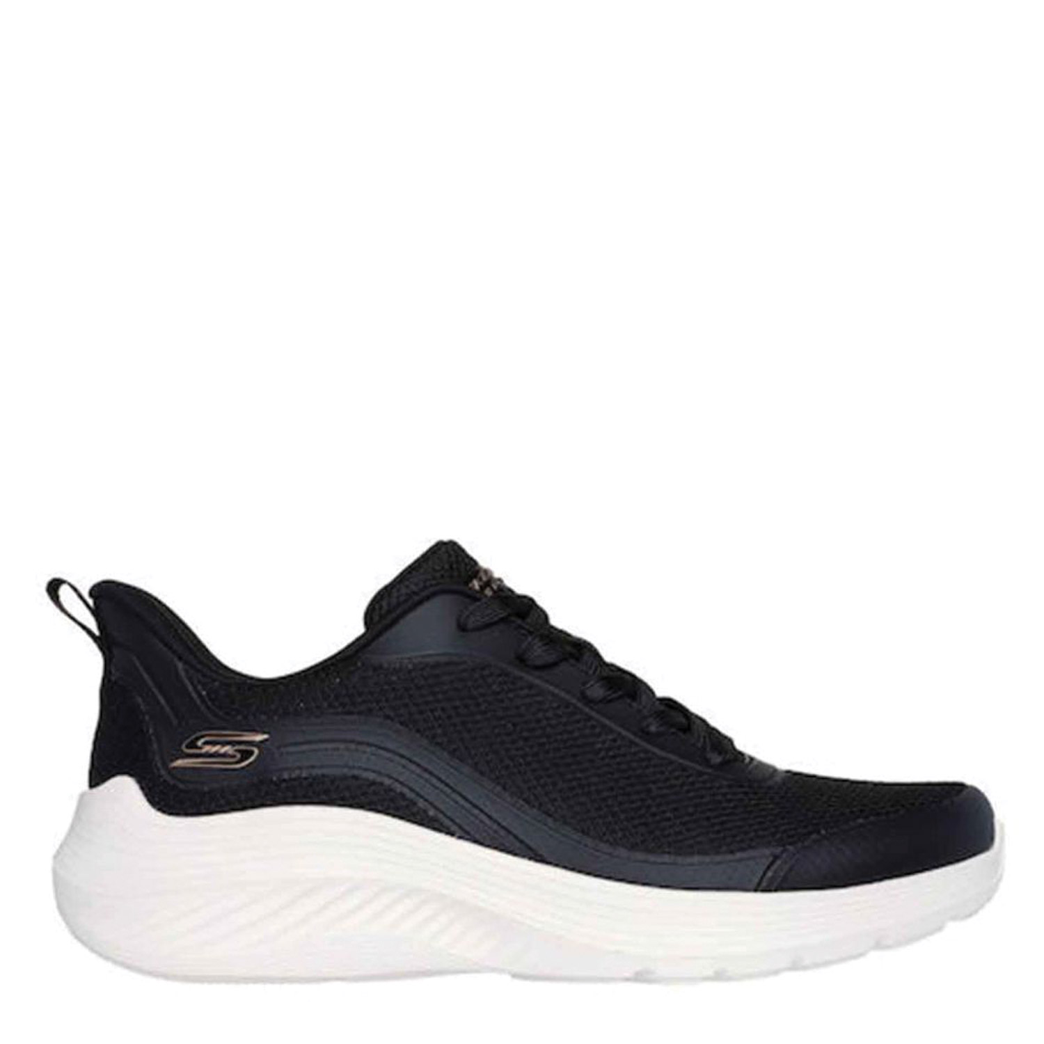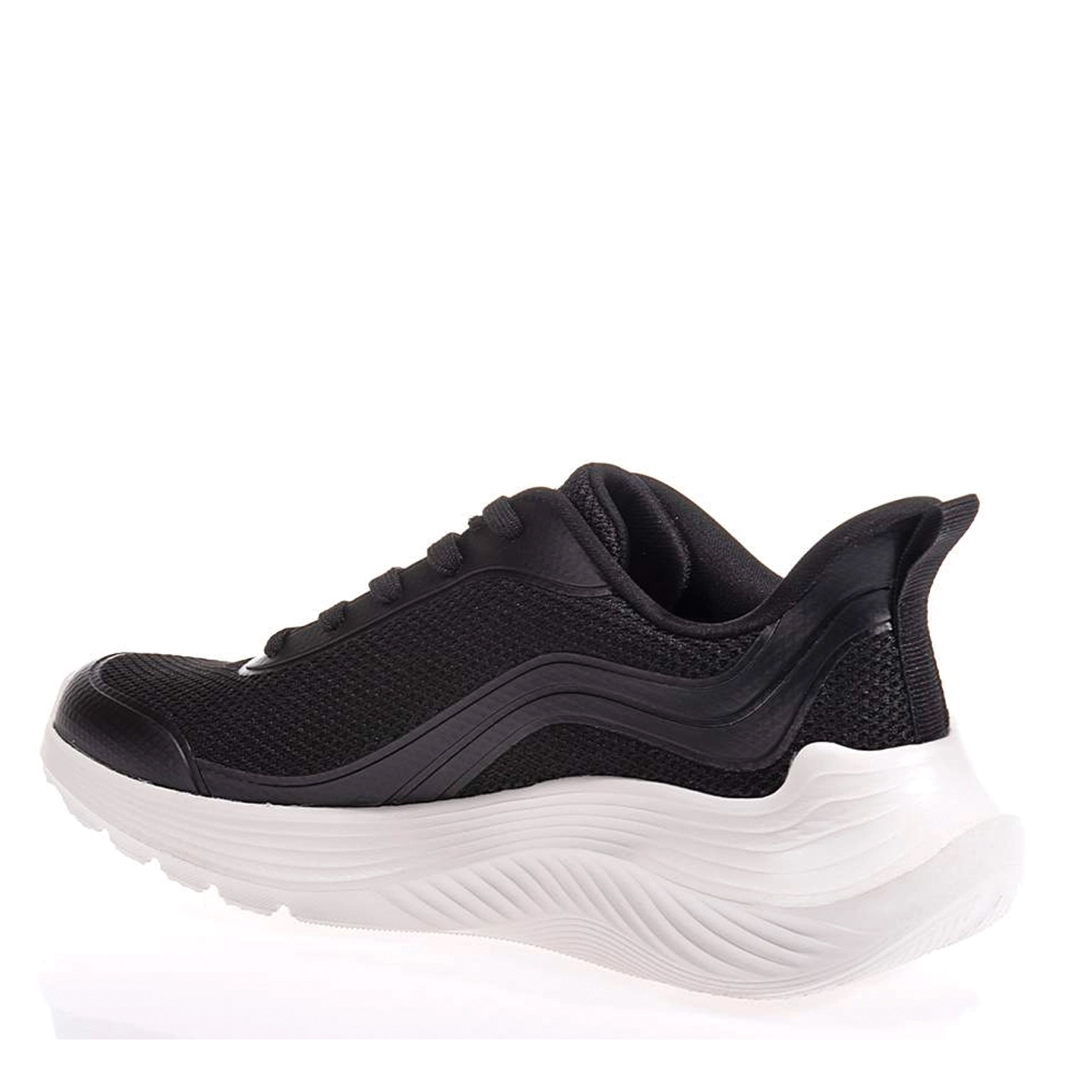 Skechers γυναικείο sneaker, σε λευκό-μαύρο χρώμα, κατασκευασμένο από ύφασμα, με ανατομικό πάτο. Ύψος σόλας 4εκ.